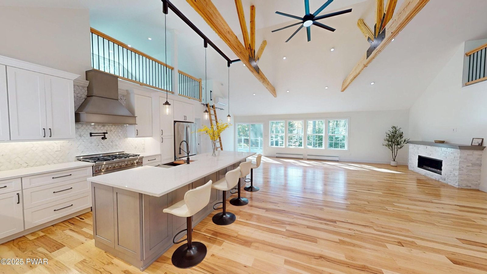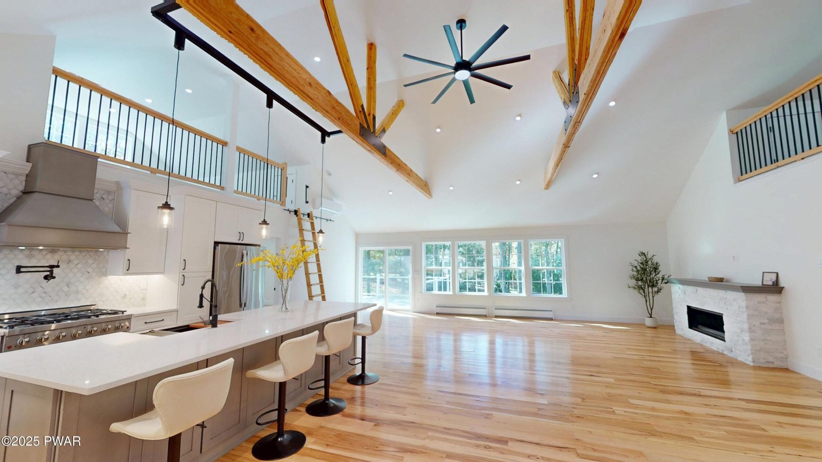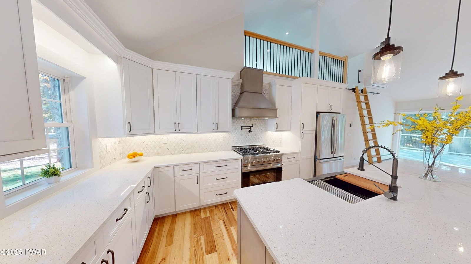 Brand New Custom Built Ranch featuring a fully finished walkout basement with kitchen! This 3 bedroom 3.5 bath home is thoughtfully crafted from foundation to finish; blending modern comfort, energy efficiency, and refined luxury.The main level offers an open-concept layout with vaulted ceilings, abundant with natural light, showcasing custom wood trusses, premium hardwood flooring, an elegant propane fireplace, mini-split unit, and two finished lofts, offering ample organizational storage. The modern chef's kitchen features a grand entertainer's island, eye-catching contemporary countertops, gourmet propane range and oven, stainless-steel appliances, custom cabinetry and more! The luxurious primary suite features a dual custom 10' tiled shower, soaking tub, a double vanity, oversized mirror, tank-less toilet and an adjacent oversized laundry/utility room. The entrance foyer features French doors, custom seating/storage unit, half bath and closet. Two additional bedrooms and a full bath complete the main level.The fully finished basement is adaptively designed with an open concept kitchen/living area with mini-split unit, two bonus rooms, laundry and full bathroom. Private entrance/walkout to thoughtfully designed backyard area.Oversized attached garage features epoxy floor and EV charging station. Exterior highlights include a premium paved driveway, stamped concrete walkway, covered front porch, large deck overlooking the yard and meticulously designed landscaping.Premium finishes and seamless designs are featured throughout this Must See New Construction!Experience every carefully crafted detail by scheduling your private tour in the prestigious amenity-filled Hemlock Farms today!
