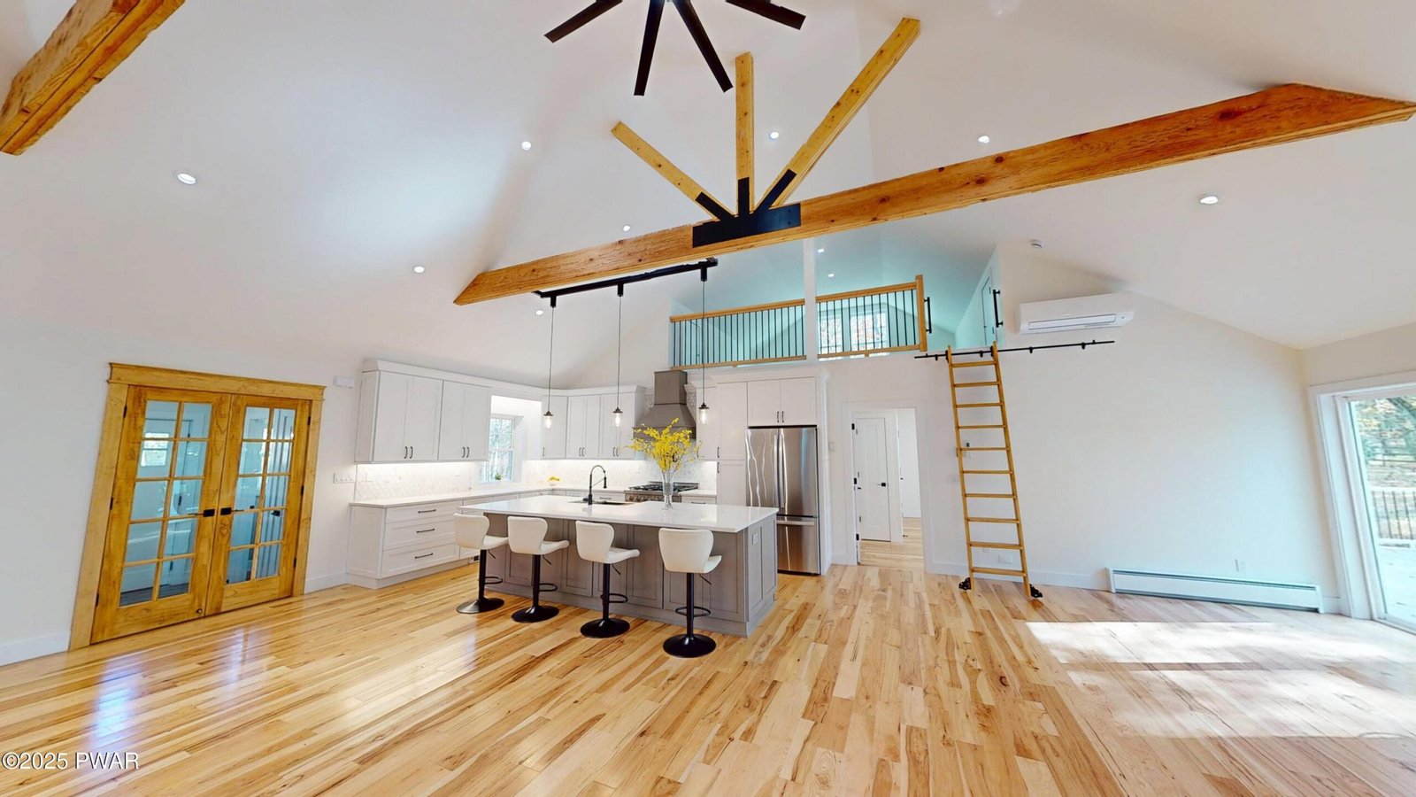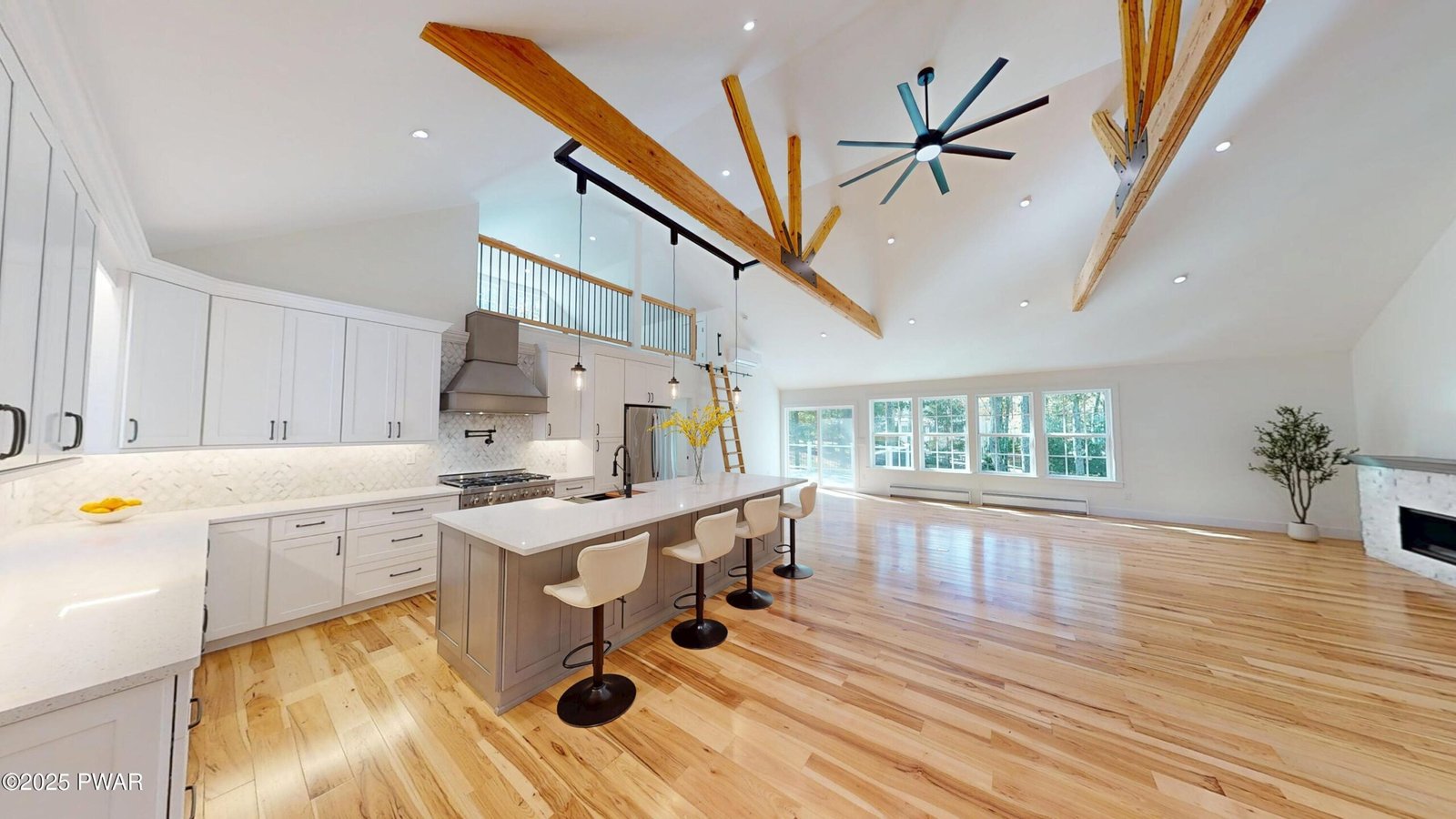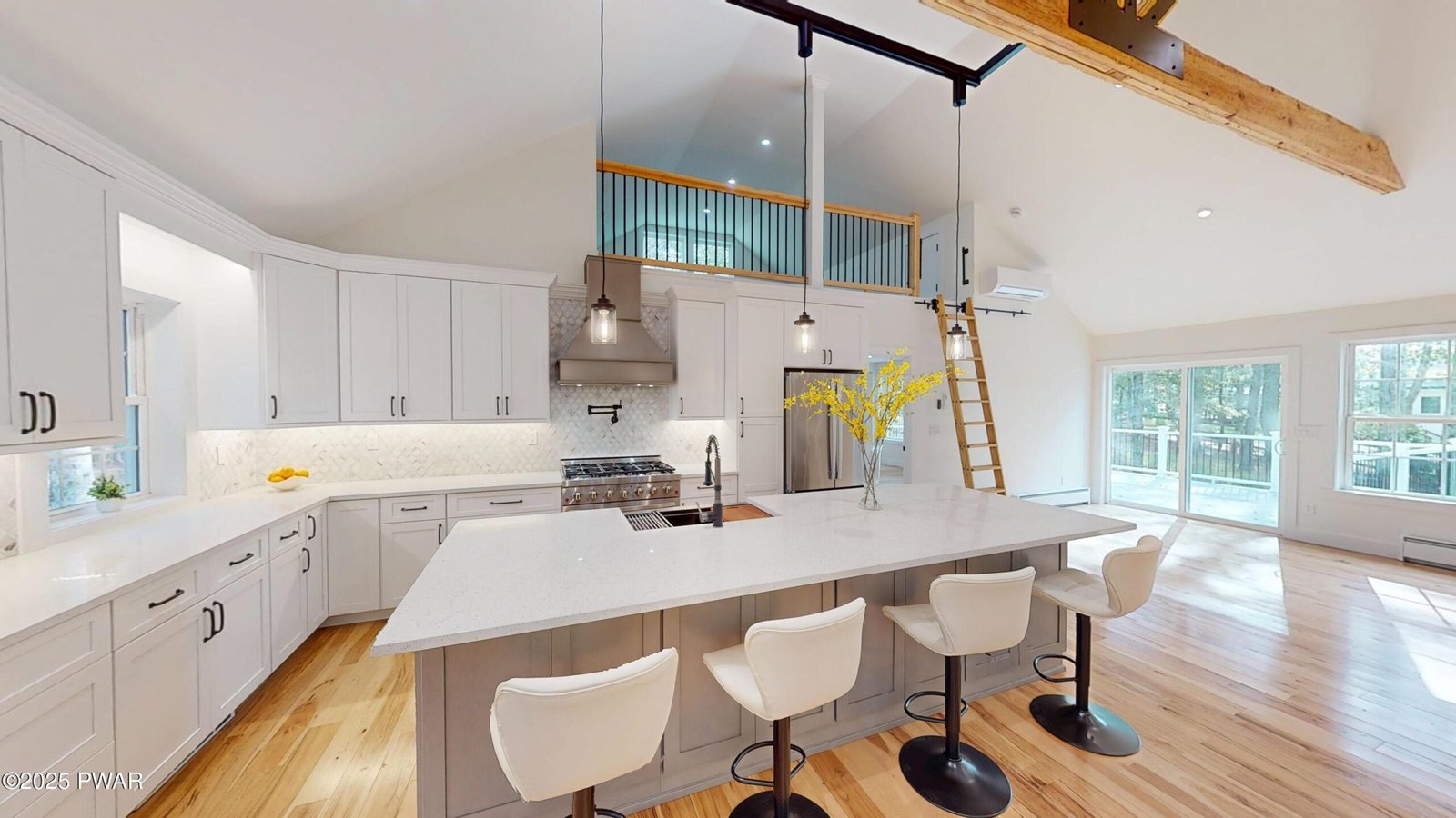 Brand New Custom Built Ranch featuring a fully finished walkout basement with kitchen! This 3 bedroom 3.5 bath home is thoughtfully crafted from foundation to finish; blending modern comfort, energy efficiency, and refined luxury.The main level offers an open-concept layout with vaulted ceilings, abundant with natural light, showcasing custom wood trusses, premium hardwood flooring, an elegant propane fireplace, mini-split unit, and two finished lofts, offering ample organizational storage. The modern chef's kitchen features a grand entertainer's island, eye-catching contemporary countertops, gourmet propane range and oven, stainless-steel appliances, custom cabinetry and more! The luxurious primary suite features a dual custom 10' tiled shower, soaking tub, a double vanity, oversized mirror, tank-less toilet and an adjacent oversized laundry/utility room. The entrance foyer features French doors, custom seating/storage unit, half bath and closet. Two additional bedrooms and a full bath complete the main level.The fully finished basement is adaptively designed with an open concept kitchen/living area with mini-split unit, two bonus rooms, laundry and full bathroom. Private entrance/walkout to thoughtfully designed backyard area.Oversized attached garage features epoxy floor and EV charging station. Exterior highlights include a premium paved driveway, stamped concrete walkway, covered front porch, large deck overlooking the yard and meticulously designed landscaping.Premium finishes and seamless designs are featured throughout this Must See New Construction!Experience every carefully crafted detail by scheduling your private tour in the prestigious amenity-filled Hemlock Farms today!