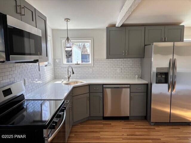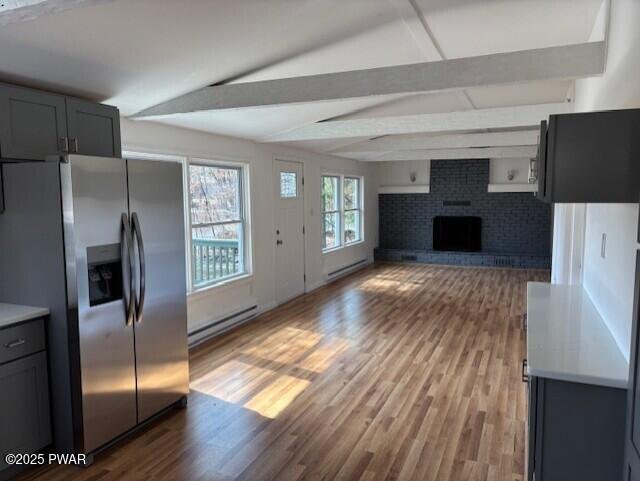 Buyer changed their mind (Back on the market) Seller put on a new roof. Welcome to one level living in this remodeled ranch. New septic, New flooring, New kitchen, New bathroom and New appliances. This 2 bedroom, 1 bathroom homes offers a beautiful brick fireplace, cathedral ceilings, open concept with lots of bright light. The kitchen offers a beautiful quarts counter top with tile backsplash. The oversized shed with electric has multiple opportunities. It can fit a small car/Storage area or Workshop. Come see this home today!!