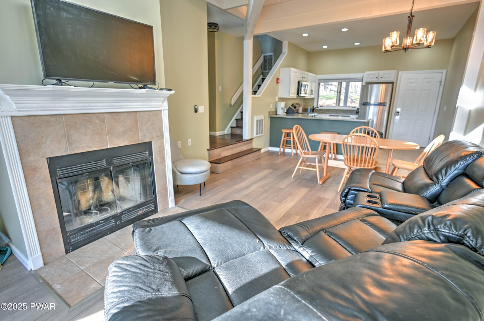 Laurel Hill Townhomes - Unit #102 - Now Available for Rent. Welcome to Tanglwood Lakes living with golf (extra) and lake life right outside your door. This townhome sits between the calm shoreline of Tanglwood Lake and the first and eighteenth holes of Paupack Hills Golf Course--an unbeatable setting & low maintenance! Inside, the home features 2 bedrooms, 2 full baths, an open layout, and a fireplace that anchors the main living space. Recent updates include modern vinyl plank flooring, fresh paint, updated fixtures, and stainless-steel appliances. Central air keeps the home comfortable through every season. Step out onto the deck and take in the peaceful, park-like surroundings along the lakefront.The exterior features new vinyl siding, and the location truly does the rest--walk to the Paupack Hills clubhouse or head to the private Tanglwood Lake dock reserved for townhome owners, ideal for kayaking, canoeing, or simply relaxing by the water.If you're looking for a rental, Unit #102 delivers lake life! Comes fully furnished.
