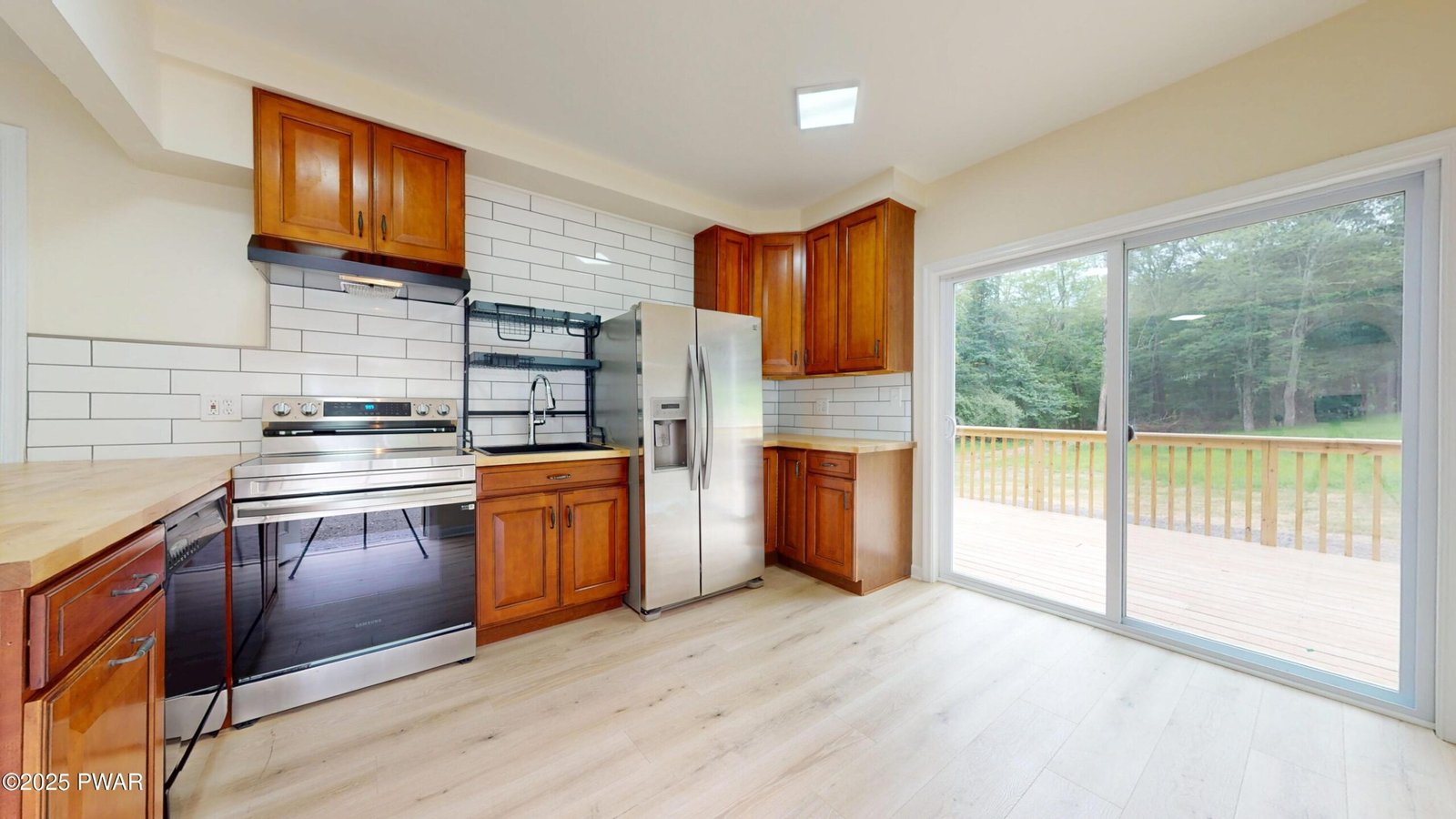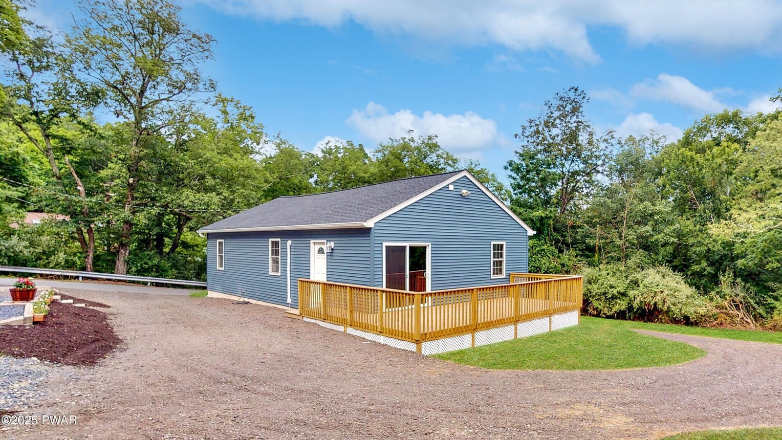 $$$ - INCREDIBLE AIRBNB/STR OPPORTUNITY - $$$ - 3 BRS + BONUS ROOM, & 3 FULL BATHS w/ THIS TOTALLY RENOVATED, FULLY UPDATED & UPGRADED, ONE-LEVEL-LIVING, POCONO COUNTRY-MODERN RANCH HOME w/ BRAND NEW SEPTIC SYSTEM, AND A DETACHED SHE-SHED/ART STUDIO w/ WET BAR & PRIVATE BATHROOM ON A SPRAWLING 1.3-ACRE LOT LOCATED JUST A STONE'S THROW FROM THE DELAWARE RIVER IN MATAMORAS, PA. This meticulously renovated ranch home offers 1,150 sqft of beautifully finished living space ontop of a walkout basement. Featuring 3 spacious bedrooms and 2 full bathrooms, including a large primary suite with a big walk-in closet (with washer/dryer hookup) and a modern private ensuite bath with a glass walk-in shower and his & her sinks. This stunning home boasts high ceilings, luxury vinyl plank flooring, energy-efficient split-unit HVAC, and brand-new finishes throughout. The open-concept layout includes a spacious living room and a gorgeous country-modern eat-in kitchen with custom cabinetry, butcher block countertops, stainless steel appliances, an eat-at breakfast bar, and a bright dining area with sliding glass doors leading to its large wraparound deck overlooking the scenic backyard. The detached she-shed/art studio offers 480 sqft of additional finished space, with an open bonus room and 1 full bath, and is conveniently located just 37 feet door-to-door across the circular driveway that surrounds the main house--offering ample parking and easy access. Like the main home, this charming bonus area has an open floor concept and brand-new everything, including LVP flooring, electric baseboard heating, and window A/C. It also offers its own wet bar, a large multi-use room, and a full bath with a glass door walk-in shower and built-in shelving for linens and storage. The owner is also in the process of putting in a new septic system for the property as well. DV SCHOOL DISTRICT, CLOSE TO THE HISTORIC TOWN OF MILFORD, PA, & MINUTES FROM BRIDGE & I-84 FOR A QUICK, EASY COMMUTE TO NY & NJ