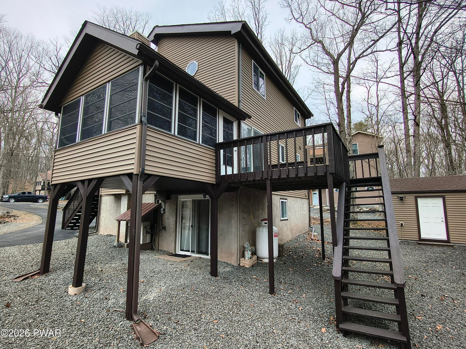 MINT CONDITION MASTHOPE HOME!! This 3 bedroom, 2 bathroom home in Masthope has been recently and tastefully renovated to ''Like New'' condition! Outside improvements include all new windows and doors, new vinyl siding, new gutters w/leaf guards, new exterior doors, new roof, vinyl sided enclosed screen porch with new vinyl windows, new 12'x16'' vinyl sided matching shed / garage and motion sensor camera / lights around the perimeter. When you step inside you will find all new flooring (including luxury vinyl plank), new kitchen with granite countertops and new appliances, new propane fireplace, 3 new split units for heat & A/C and brand new main level bathroom with a large walk-in shower. Step downstairs and you will find a brand new family room with walk out access to the yard, plus a laundry / utility room as well. Set on an almost maintenance free parcel which is backed by a community forever green area and is close to the white sand beach, power boating lake and is also to cross country ski trails and ATV trails. Masthope is an ATV/Golf Cart friendly community that offers skiing / tubing, Restaurant/Lounge, outdoor pools w/ Tiki Bar, fitness center, white sand beach, power boating lake, Delaware River park w/access, horseback riding and more. Plus short-term rentals are allowed.
