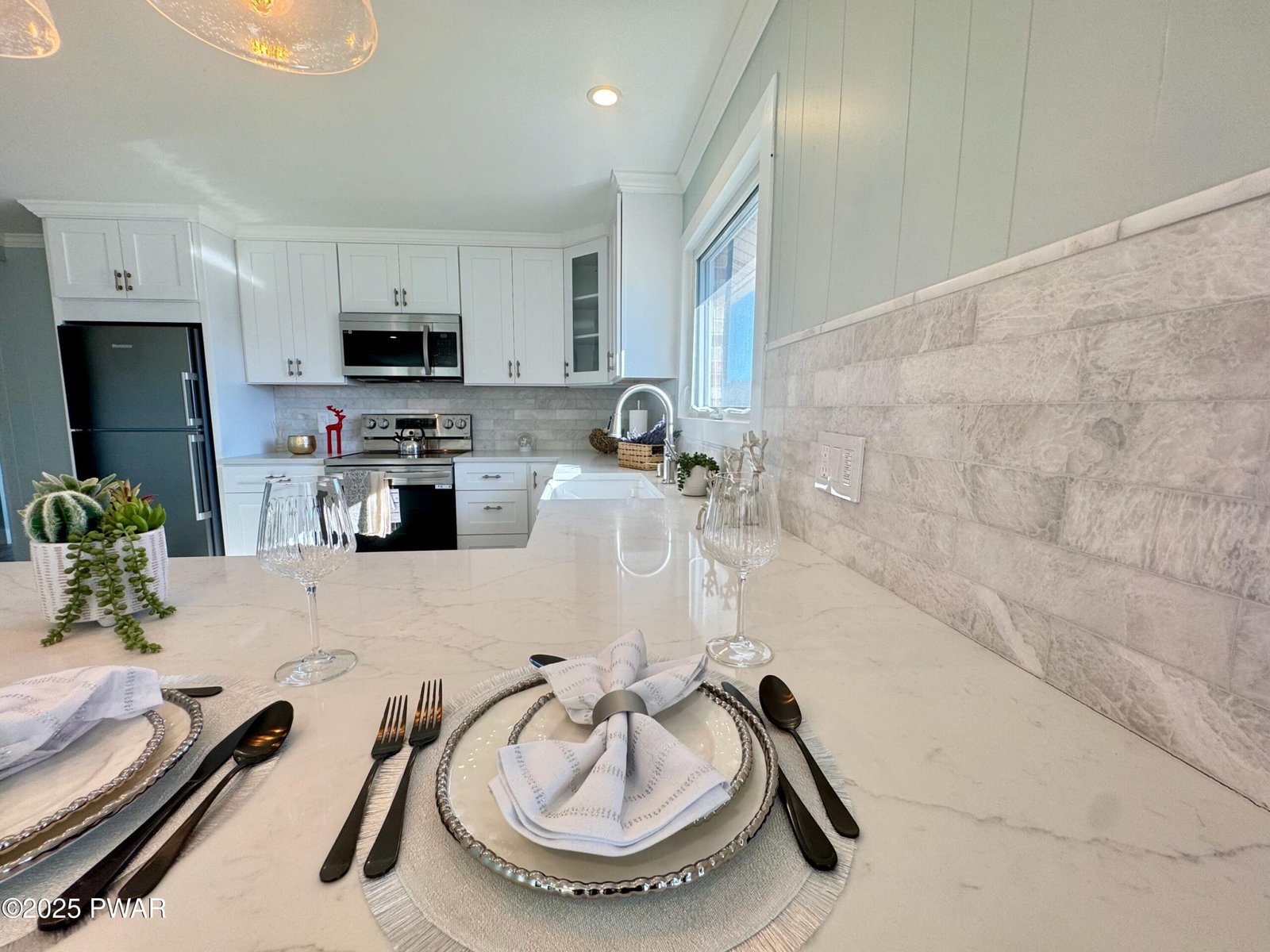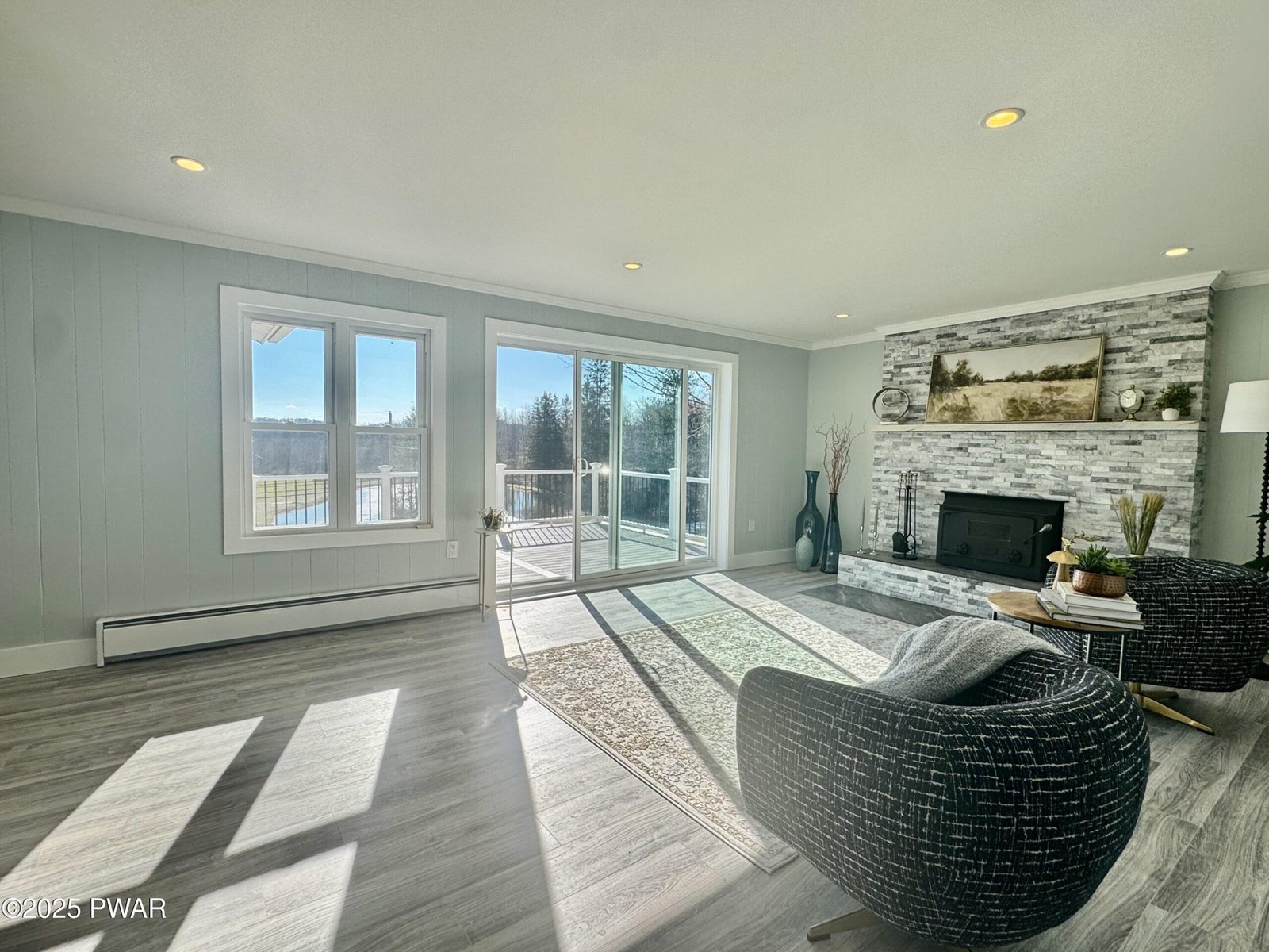 Surrounded by a gentle country landscape, this 4-bedroom, 2-bath ranch with awesome views has been given a top-to-bottom transformation! Sitting on 4 peaceful acres in scenic Damascus Township, it perfectly blends contemporary comfort with a serene rural setting. The home features a custom-built modern kitchen with quartz countertops, a marble backsplash, and sparkling stainless steel appliances--ideal for entertaining. The sprawling living room showcases a wood-burning fireplace, perfect for toasty evenings by the fire, while the bright, sun-filled 4-season family room provides a cheerful space to gather. Both bathrooms have been ultra modernly renovated, and the home now offers new heating with smart thermostats. Additional upgrades include a new roof, new windows, and sliding glass doors that open onto a front deck crafted from durable composite materials--perfect for relaxing outdoors or entertaining. There's nothing left to do but move in and enjoy. Just bring your toothbrush! Ask for the full 3-page list of renovations. Just minutes from the Wild & Scenic Delaware River and the village of Callicoon, NY.