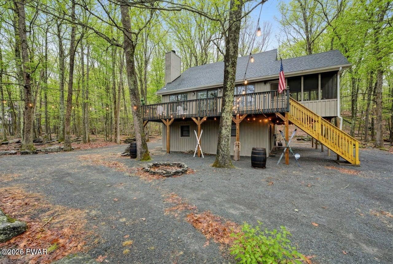 Beautifully maintained contemporary home within walking distance to the lake and beach in the desirable Masthope Mountain Community. Situated on a private oversized 1-acre lot, this property offers plenty of space for outdoor enjoyment with a flat backyard perfect for kids to play, a dedicated fire pit area, and ample parking with a convenient circular driveway.The home has been recently updated with a new roof and gutters, all new bathrooms and fixtures, updated kitchen, new flooring, fresh interior and exterior paint, and professional landscaping. A beautiful brand-new oversized storage shed provides excellent additional space for outdoor equipment and toys.Being sold TURN-KEY, the home features 4 bedrooms, 3 bathrooms, an open floor plan, cozy fireplace, large screened-in room, and spacious open decking--ideal for relaxing or entertaining.Enjoy all the amenities of Masthope Mountain Community including skiing, a motor-boating lake with white sandy beach, two outdoor pools, horseback riding, ATV trails, lodge, fitness center, and much more.