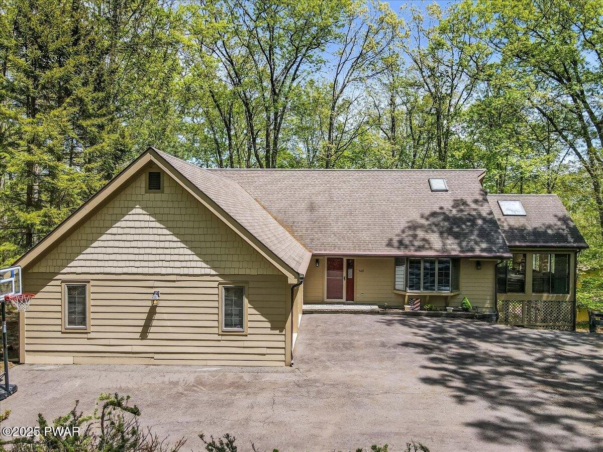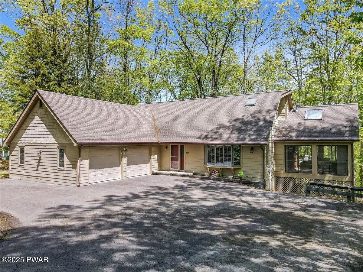 Welcome to 146 Cove Point Circle--Your Furnished Technical Lakefront Haven at Lake Wallenpaupack Tucked in the heart of the highly sought-after Cove Point Club, this inviting home offers everything you need to embrace the lake lifestyle, whether you're looking for a weekend escape or a full-time residence. With approximately 100 feet of lakefront shoreline, you can launch a kayak or simply relax by the water's edge. While docks are not permitted at this location, a boat slip just down the street ensures you're always ready for a day on the water. The main level features a comfortable and spacious layout with hardwood and tile flooring, Anderson windows, and a sunroom perfect for enjoying the views year-round. The primary bedroom suite separate from the main part of the home includes a primary bath with tub/shower combo as well as a walk-in shower. Upstairs offers two bedrooms, a full bath, and two additional bonus rooms ideal for guests, a home office, or hobby space. The partially finished walkout basement includes a spacious game room with pool table, foosball, dart board and shuffleboard, plus a second room ready to be your media space or cozy retreat. Multiple decks and a firepit create the perfect setting for outdoor gatherings, all set against the backdrop of the wooded and private yard. Additional features include fiber cement siding for low maintenance, a 2-car attached garage, paved driveway, and more, plus plenty of room for family and friends. Located in the excellent Wallenpaupack School District and just minutes from town, you'll also be close to local wineries, breweries, restaurants, shopping, and year-round sightseeing and recreation. This is lake living the way it's meant to be--peaceful, scenic, and ready for memories to be made.