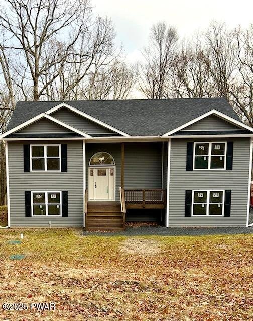 Discover refined modern living in this brand new luxury residence, perfectly situated just minutes from the charming town of Milford and an effortless 90 min drive to NYC. Set on serene, wooded lot in desirable community. Home blends elegant design with the peaceful beauty of the Poconos. Step inside to a light filled, open concept layout adorned with upscale flooring, and clean architectural lines. main living flows seamlessly into a sophisticated kitchen featuring stainless steel appliances, crisp cabinetry, and beautifully designed entertainment space. The home offers three plus bedrooms, two extra rooms that can be used as bedrooms or office space and three tile bathrooms crafted with modern finishes. Lower level provides a chic gathering room ideal for relaxation, or hosting guests, along with access to the over sized garage. Unwind outdoors on expansive rear deck overlooking private yard. efficient mini split heating and cooling ensure year round comfort modern energy performance. Located in premier community with pools, lake, tennis, basketball, security and more. Enjoy low taxes, luxury amenities, and timeless new construction. All moments from shopping, restaurants, boutiques and scenic attractions.