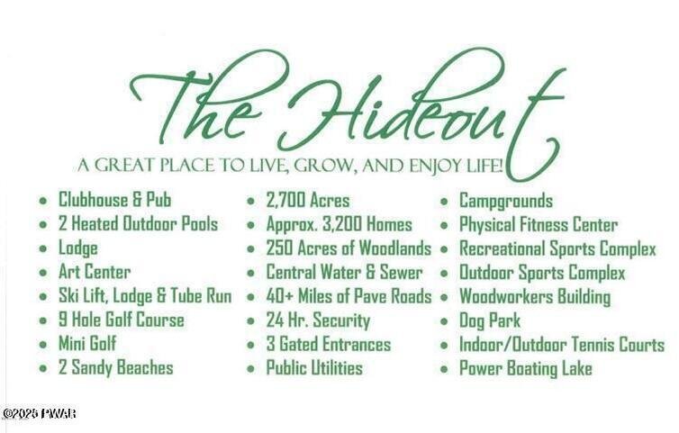 Create your ideal home on this exceptional lot situated within the amenity filled gated community of The Hideout. Nestled on a tranquil road in the south section of the community, this location offers a fantastic opportunity to construct your deal residence. Just a two-hour drive from New York and New Jersey!