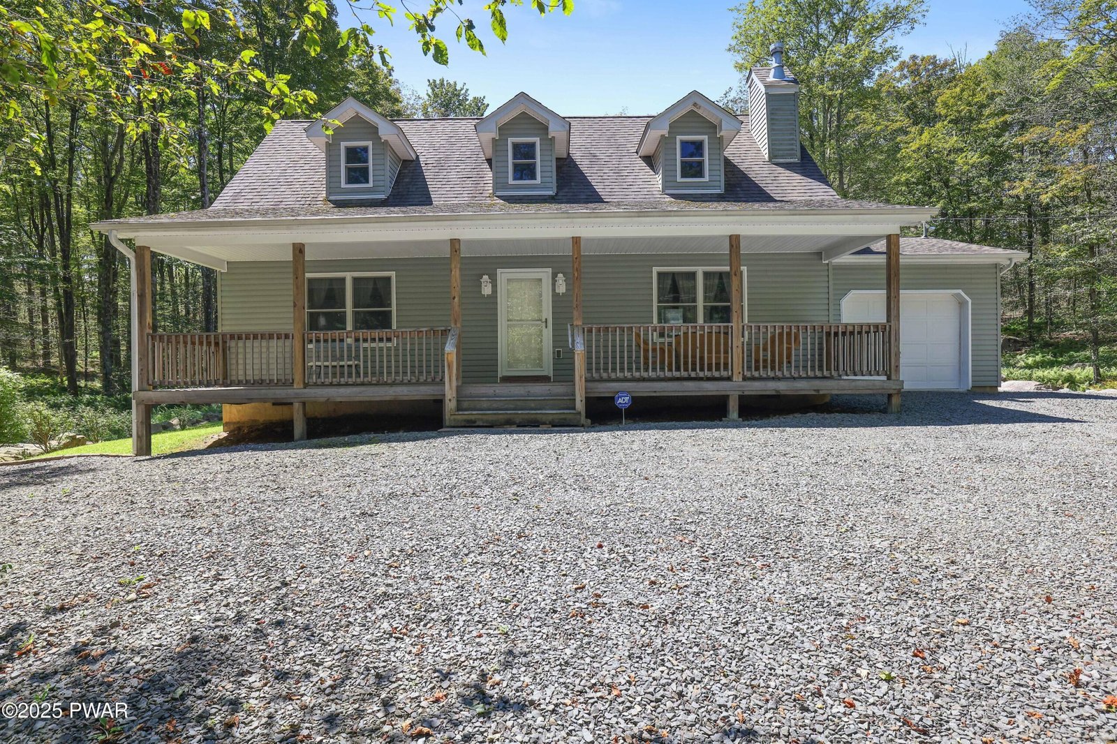 Welcome to this meticulously maintained Cape Cod in Lake in the Clouds, perfectly nestled on a private double lot totaling 1.85 acres. This 3-bedroom, 2.5-bathroom home offers the ideal blend of comfort, privacy, and functionality. The spacious main-level primary suite is designed with aging in place in mind, providing convenience and long-term livability.Enjoy complete seclusion while still taking in seasonal views of the lake. Residents of Lake in the Clouds enjoy access to a host of community amenities, including a private lake for fishing, sandy beach areas, a clubhouse, tennis and basketball courts, and scenic trails. Whether you're seeking relaxation or recreation, this neighborhood has it all.Located in the heart of the Poconos, this property offers a peaceful retreat while still being within easy reach of New York, New Jersey, and Philadelphia making it ideal for both full-time living and a weekend getaway.