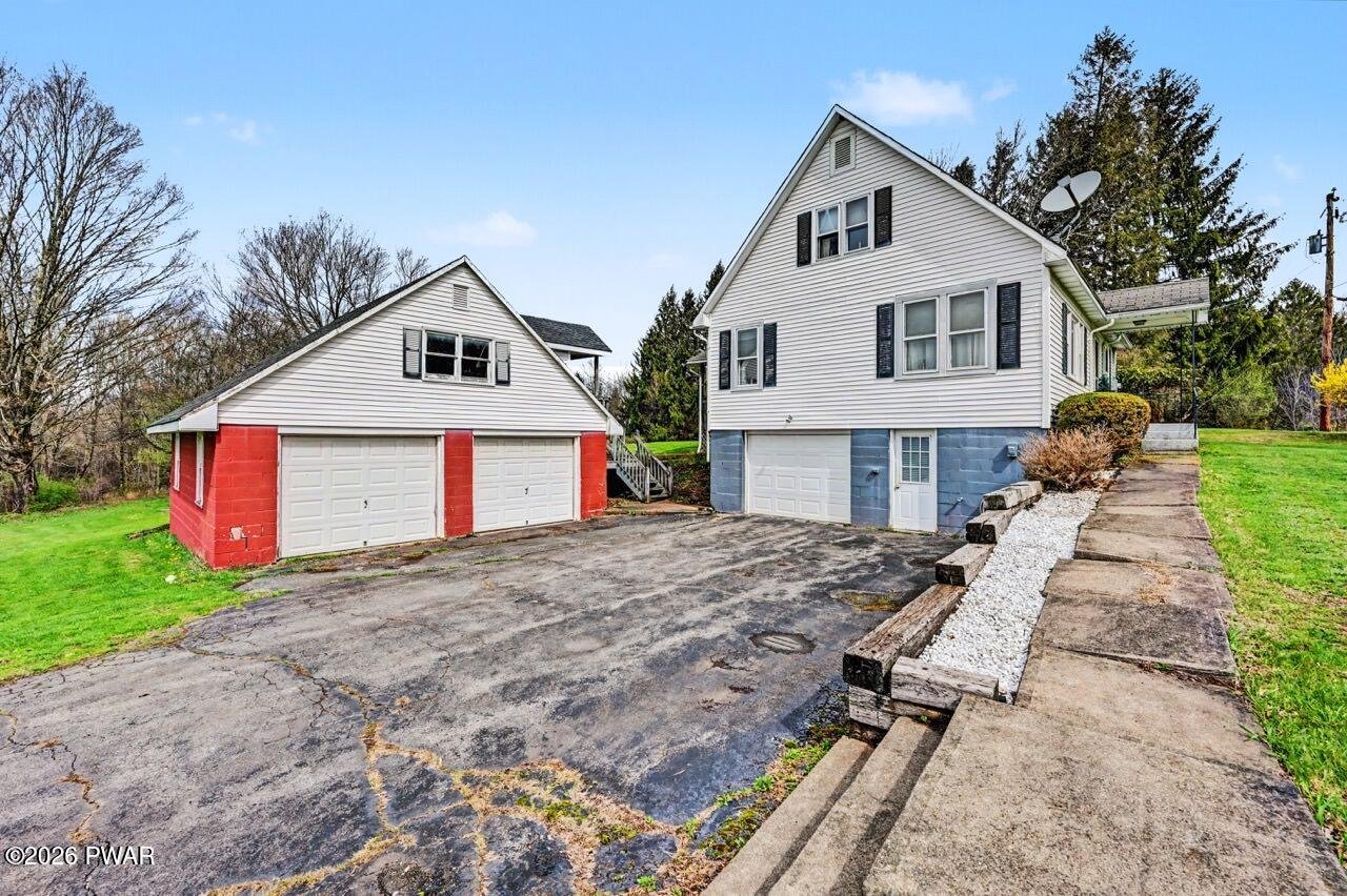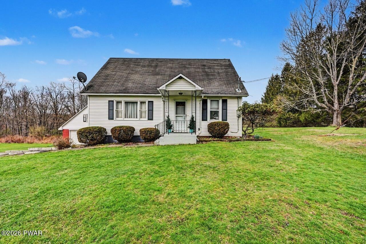 Charming Cape Cod-style home set on 5.43 beautiful, level acres with a little slope offering privacy and space to enjoy the outdoors. This well-maintained property features 3 bedrooms and 1.5 baths, with a functional layout perfect for comfortable everyday living. The home includes a spacious two-car detached garage with additional storage above--ideal for hobbies, equipment, or extra workspace--along with a one-car garage in the basement for added convenience. Enjoy the open, usable land perfect for gardening, recreation, or simply relaxing in a peaceful setting. A wonderful opportunity to own a versatile property with plenty of room to grow!
