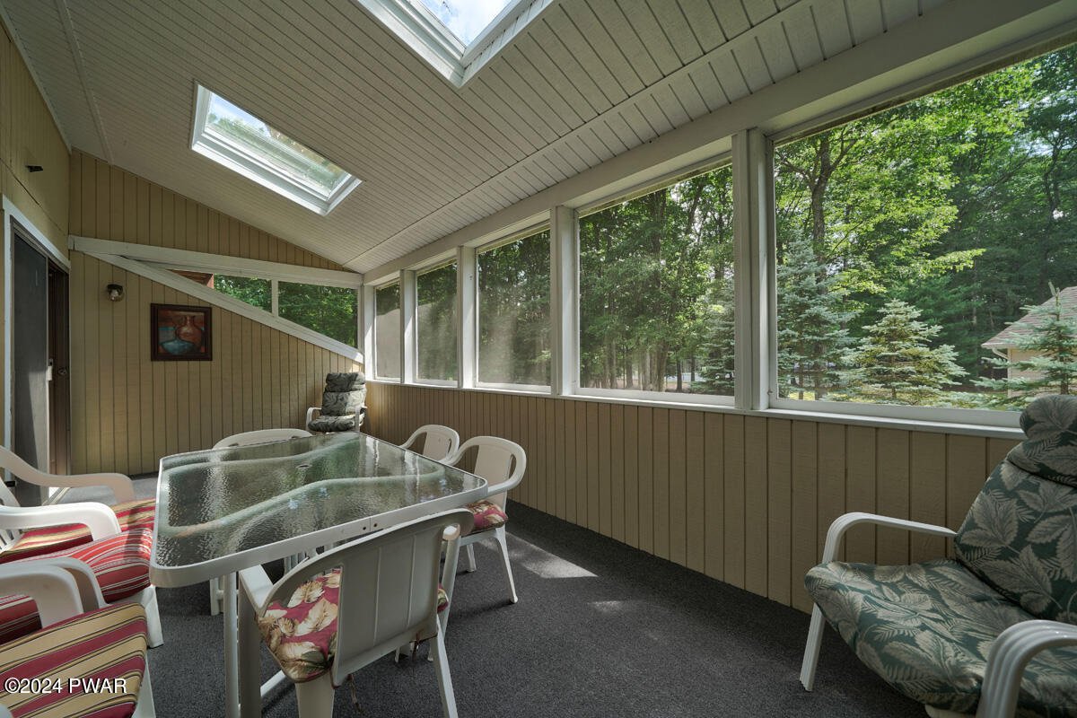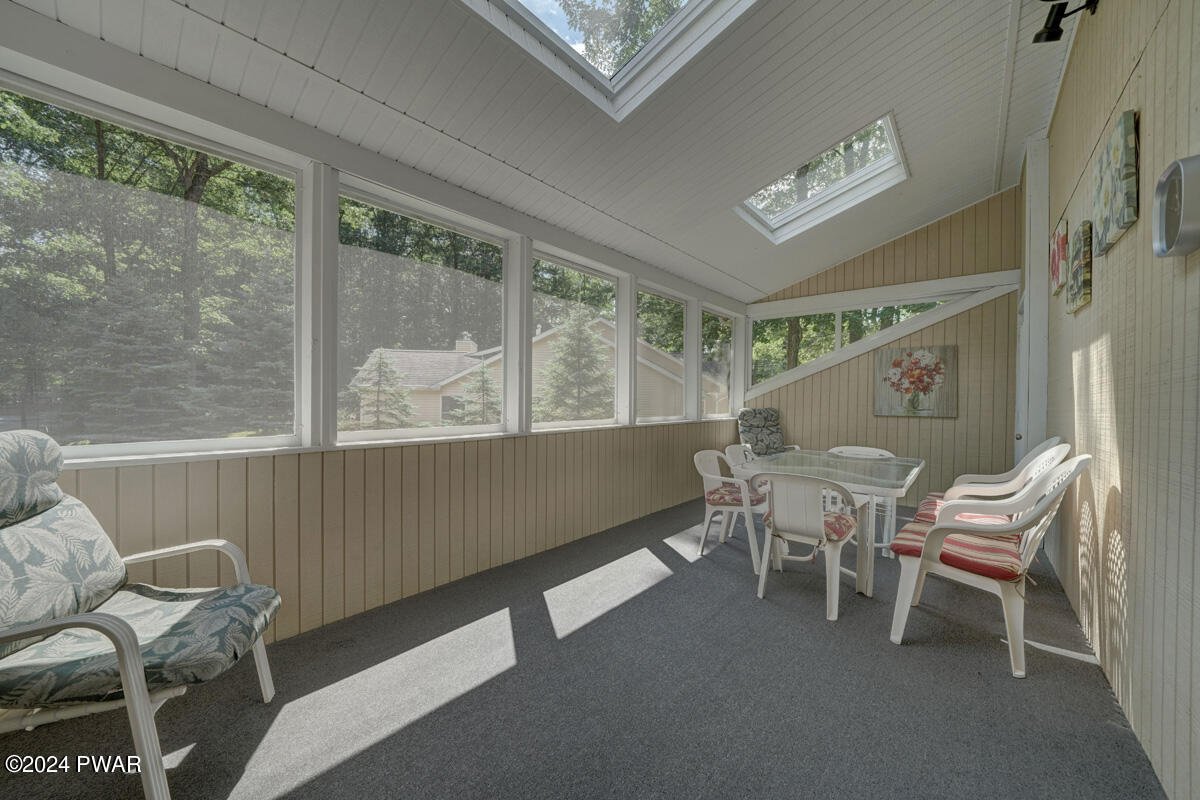 Prime Tanglwood Lakes Location - Steps from Golf, Tennis, and Lake WallenpaupackThis spacious contemporary home offers 4 bedrooms, 2.5 baths, and a bright, open layout with soaring ceilings. The living room features a cozy fireplace, while the sunroom provides serene views of the nearby tennis courts. A generous loft adds versatile living space, and wrap-around decks on every level create ideal areas for outdoor relaxation and entertaining.The home also includes an attached oversized 2-car garage with high ceilings--perfect for boat storage--a paved driveway, and a fully finished walk-out lower level complete with a family room and game area. Just a short walk to the golf course, tennis courts, and the Lake Wallenpaupack beach and boatslip area, this property is the perfect blend of comfort, space, and location.