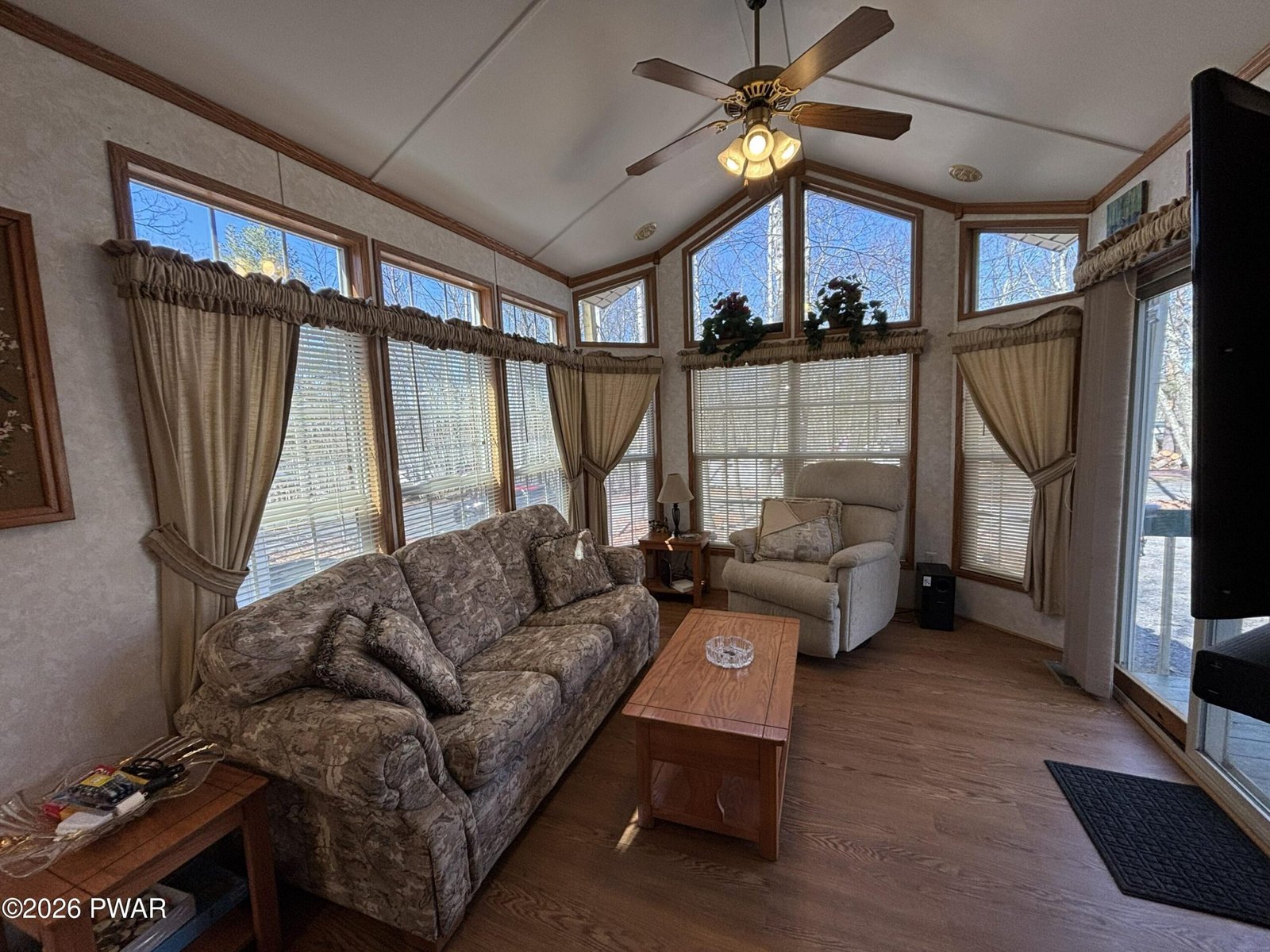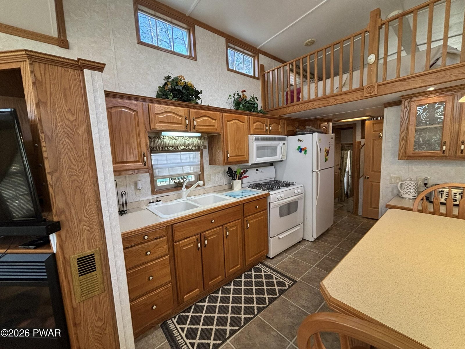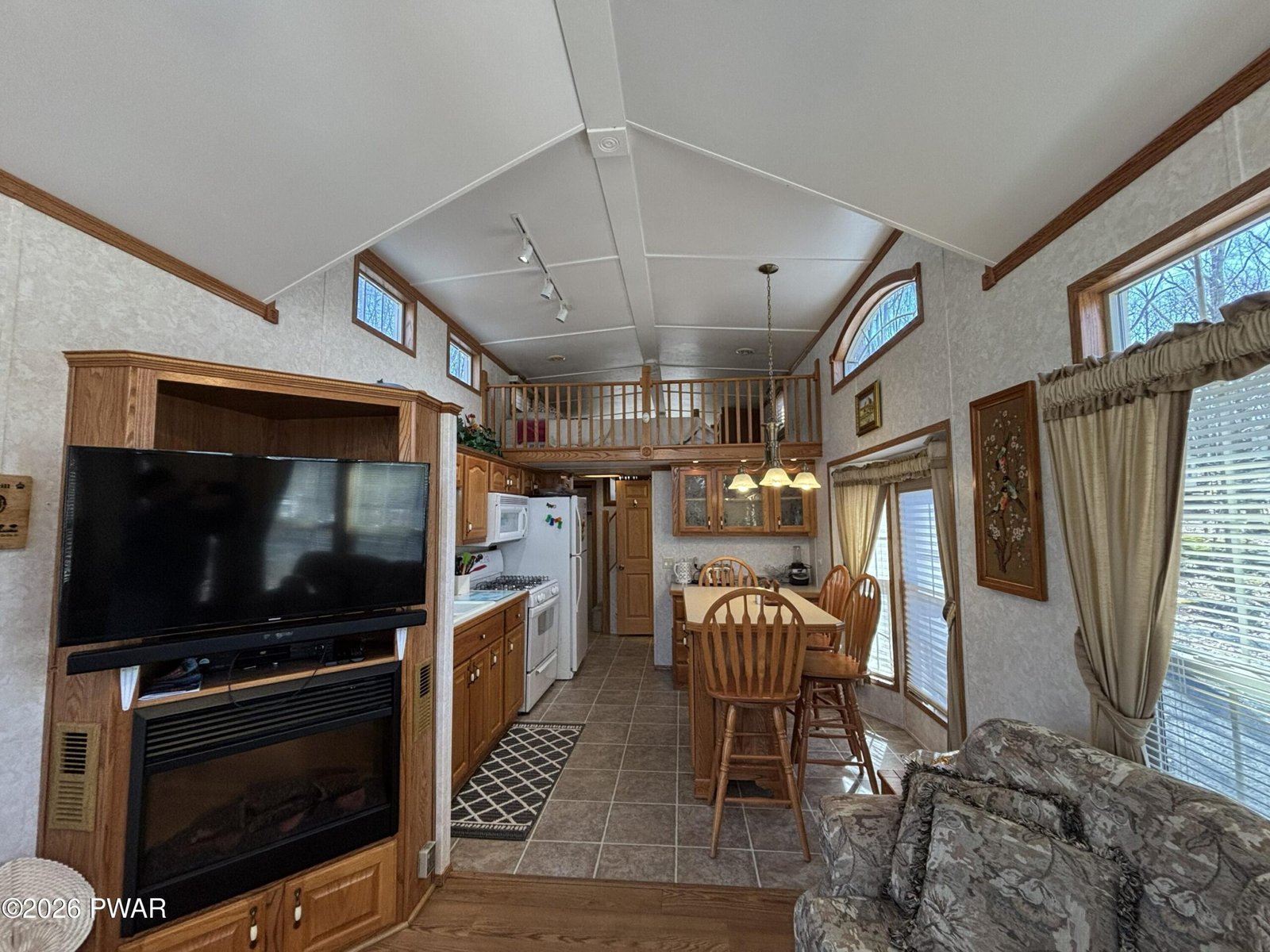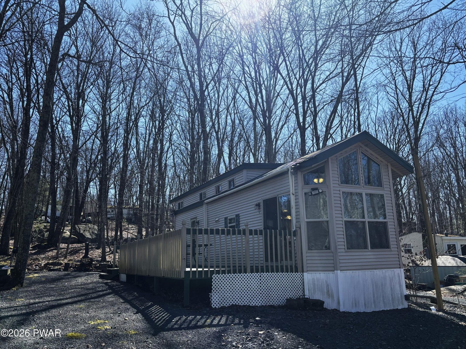 Welcome to this beautifully maintained 2007 Fairmont Country Manor park model, featuring a desirable second-story loft and located in a vibrant, amenity-rich community. Enjoy access to a wide range of features including a clubhouse, fitness center, basketball and pickleball courts, game and party rooms, pool, recreation center, and more--all utilities included in the HOA (water, electric, sewer, and garbage).This charming home offers a warm and inviting living space complete with a fireplace, comfortable seating area, and a well-appointed kitchen with a center island, full-size appliances, and built-in dining cabinetry. All cabinets and closets are built with residential hardwood. The primary bedroom includes a queen-sized bed and more generous storage.Upstairs, the spacious loft provides additional sleeping areas, premium berber carpet, entertainment space, and extra storage--perfect for hosting guests. Outside, enjoy the oversized deck accessed by a sliding glass door, ideal for relaxing or entertaining. The property also features metal raised rib roofing, vinyl siding, Thompson windows, a firepit, shed, and outdoor sink.Situated on a flat lot, just a short walk from the clubhouse, this property is perfect as a peaceful getaway or a remote-work retreat. Don't miss this opportunity to own a move-in ready vacation home in a fantastic community!Just a short drive to Shohola Falls and Lake Wallenpaupack.