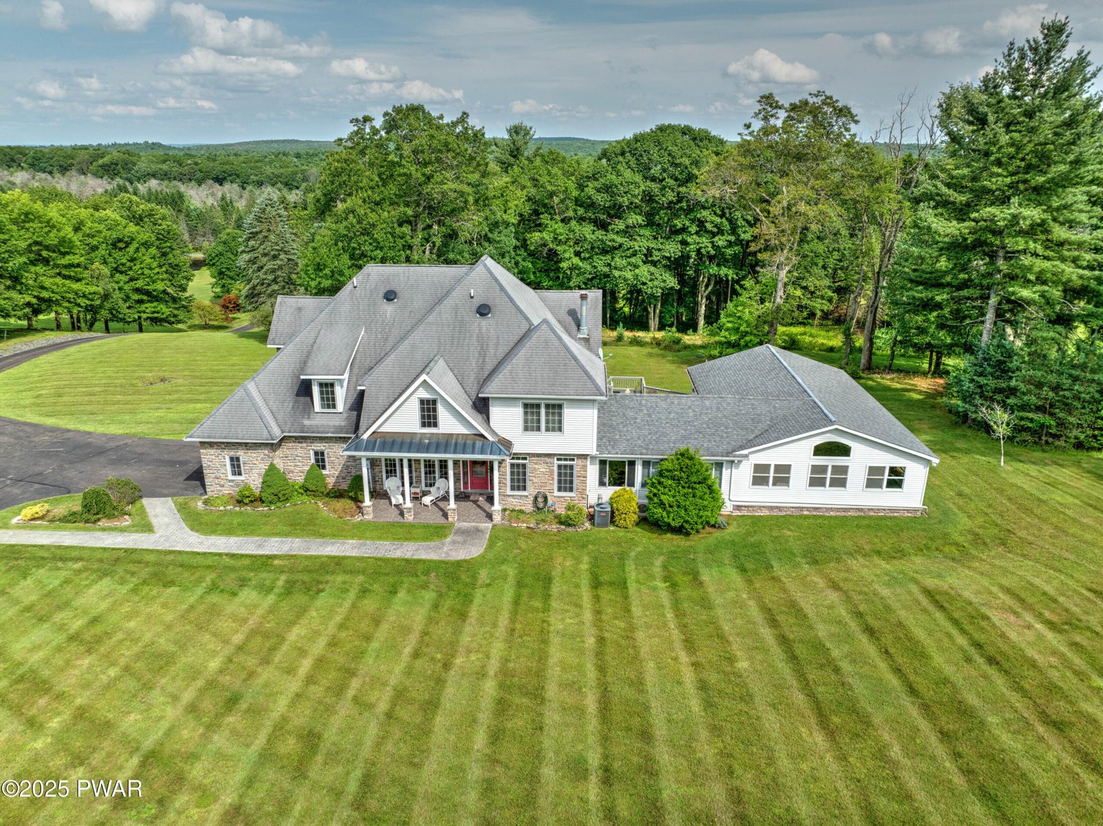 Winter, Reimagined: A Private Indoor Pool & Spa Retreat in the MountainsPerched atop 11+ breathtaking acres, this majestic stone estate is far more than a summer retreat--it is a private, year-round wellness sanctuary designed to be lived in and enjoyed through every season. From the moment you ascend the winding driveway, panoramic mountain views, rolling lawns, and two tranquil ponds create an immediate sense of calm and arrival.Inside, cathedral ceilings soar above a dramatic stone fireplace, while walls of glass flood the home with natural light and frame the surrounding landscape like living artwork. The open kitchen inspires both everyday living and entertaining, seamlessly connecting comfort, beauty, and function. A dedicated meditation room offers a peaceful space for reflection and renewal.What truly sets this home apart is its indoor pool and spa experience--transforming winter months into a luxurious wellness retreat. While any home can be enjoyed in summer, this estate shines year-round, offering the rare ability to swim, exercise, and unwind in a spa-like setting regardless of the season. A private gym further enhances the lifestyle, making health and relaxation effortless and intentional.Summers unfold poolside, on the expansive deck, or amidst whispering trees with morning coffee and evening gatherings. Winters bring a storybook atmosphere--warm, serene, and restorative--where snow-dusted views are enjoyed from the comfort of stone walls and glowing firelight. Spring awakens the land with daffodils and blooming apple, peach, and pear trees, while wildlife, including soaring eagles, adds to the estate's natural beauty.A second living quarters provides flexibility for guests or multi-generational living. Designed for both quiet moments and grand celebrations, this extraordinary property is a rare offering--a timeless retreat where luxury, wellness, and nature converge in every season.