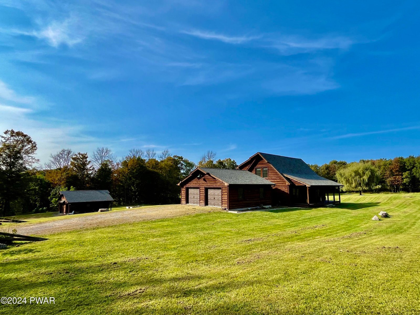 WELCOME TO THIS STUNNING 13+ ACRE RUSTIC COUNTRY RETREAT THAT HAS IT ALL! This property is perfect for those seeking both space and adventure. The spacious open floor plan features 4 bedrooms, 2 1/2 bathrooms and includes a beautiful loft area where the Primary suite is located, complete with a full bath room and a walk-in closet, overlooking the gorgeous Kitchen, dining and living areas below. The kitchen is a chef's paradise, boasting stainless steel appliances, granite countertops and plenty of space to create culinary masterpieces. The fully finished walkout basement with a game room provides even more space for relaxation and entertainment. Property comes complete with an awesome large steel building, impressive garage/workshop which is perfect for the hobbyist or professional alike. With ample space, it's ideal for projects, storage, and all your tools. Whether you're a car enthusiast, a craftsman, or just need extra room for your gear, this versatile space is equipped to handle it all in style and comfort. Outside enjoy the serene privacy of lush green grass, the sportsman's range , majestic willow trees, charming gazebo to unwind or just head over to the awesome fire pit for evenings under the stars. The property also boasts a huge two-car attached garage! Located is in a prime area for outdoor enthusiasts, the property is close to Elk Mt. ski area, numerous State Lakes and Lands. Close to Honesdale & Forest city for shopping. The O & W Trail provides access to walking, biking, ATV, (Side-by-Side's) and snowmobile trails right from your yard. This is the ultimate country getaway--look no further, your dream home awaits!