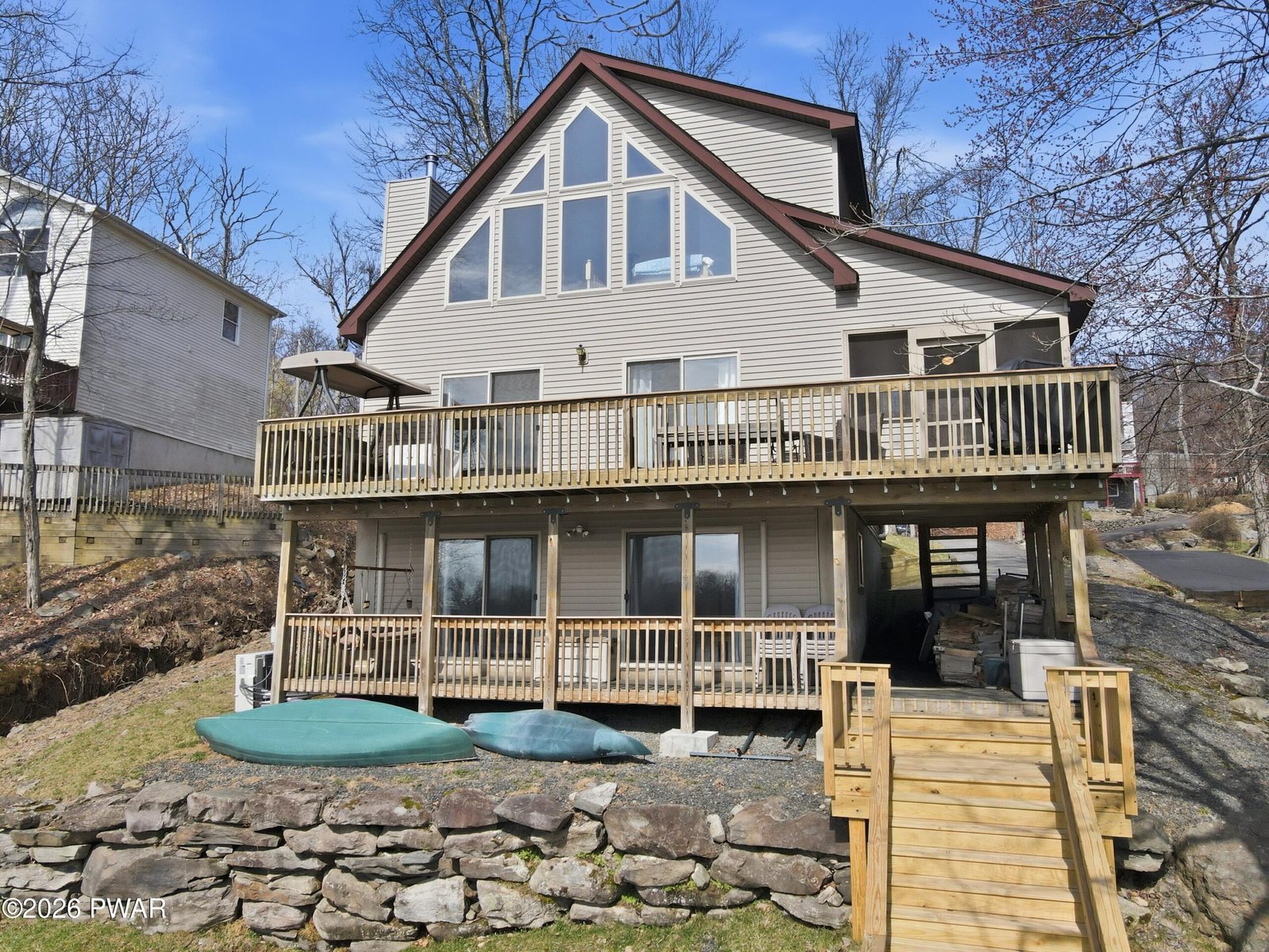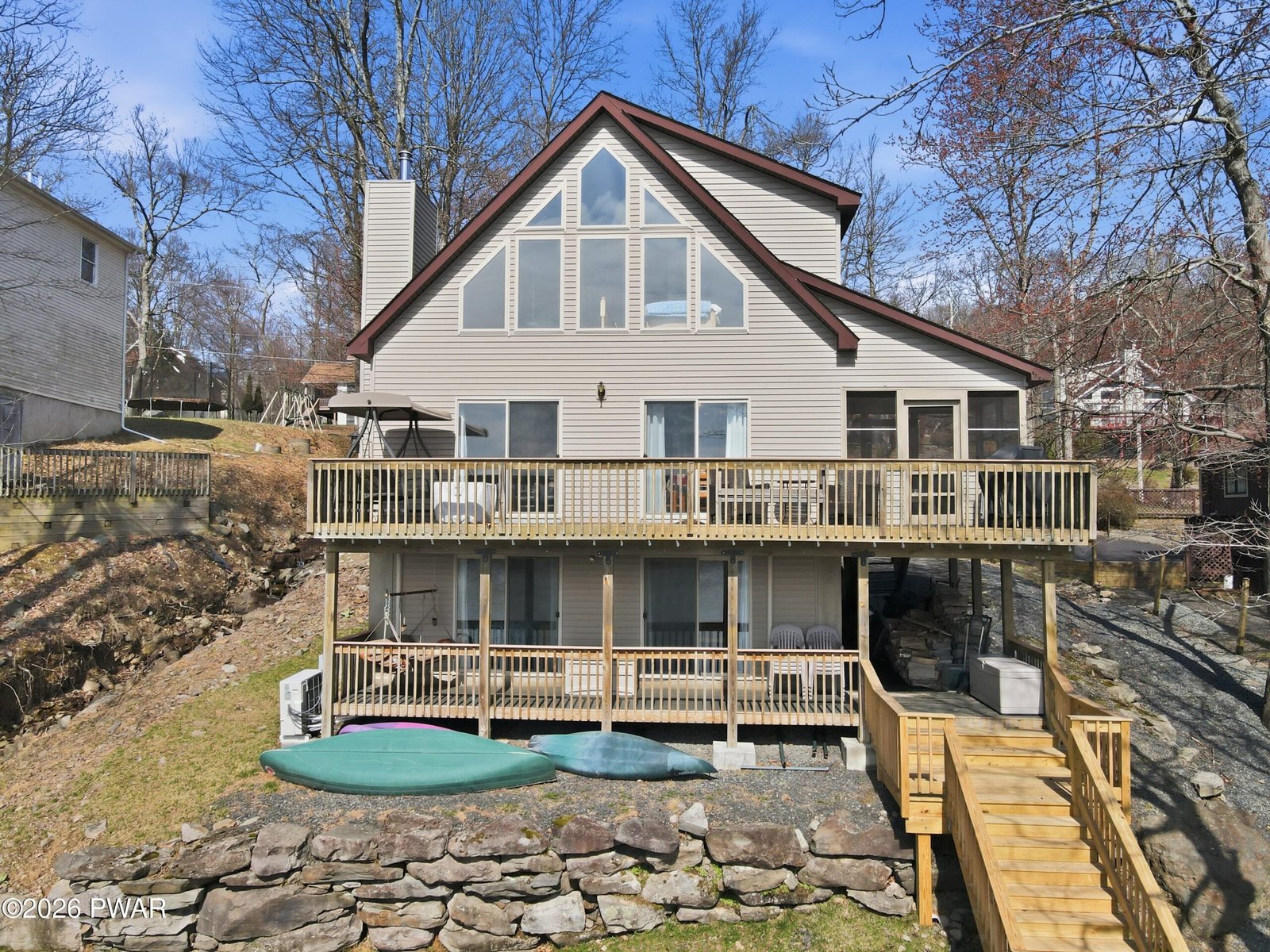 Exquisite Panoramic Lakefront views of a spectacular Mountain Lake from this exceptional, incredibly well maintained Lakefront Chalet. A truly beautiful home boasting 4 Bedroom, 2 full Baths, A Spacious Lakeview open Living room with tall Vaulted Ceilings Attractive wood burning fireplace, eat in Kitchen with great countertops and cabinetry and wide lakefront views. Boasts Dining/Living areas with lots of lakeview glass. Living and Dining areas feature lakeview glass doors that open to wonderful lakeview decks and a really lovely screened porch. Lower level with Den continues the vibe with lots of lakeview glass opening from a spacious Family room and 4th Bedroom to another lakeview deck. Beautiful new Stairways make access to the lake and the terrific lakefront dock super simple. You can literally see this magnificent lake from virtually every room.