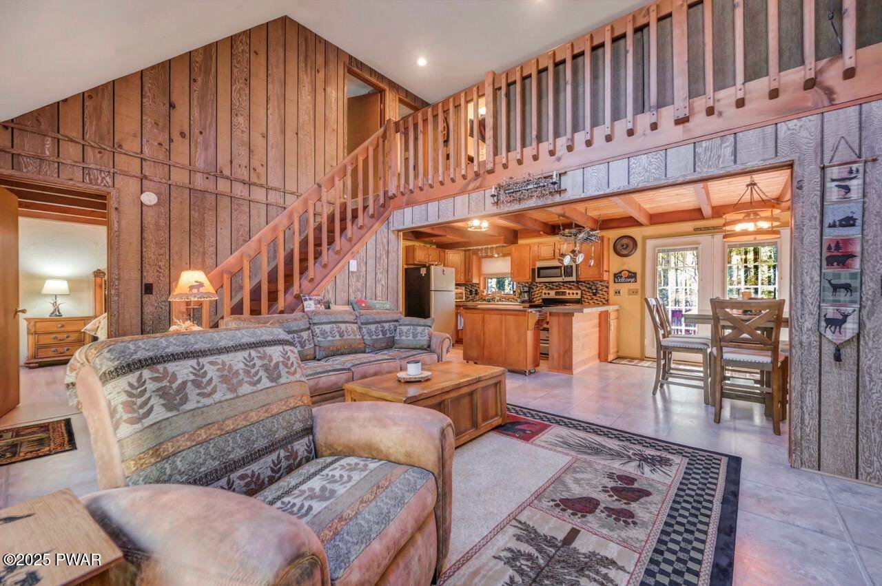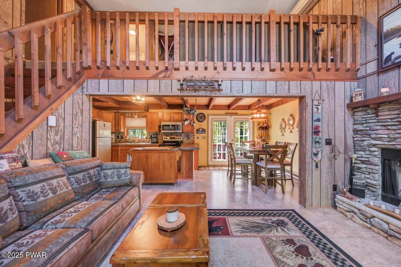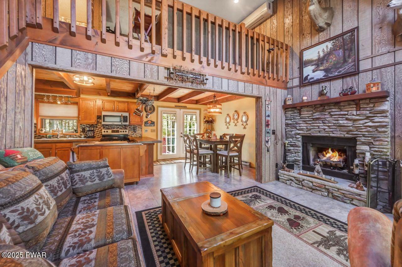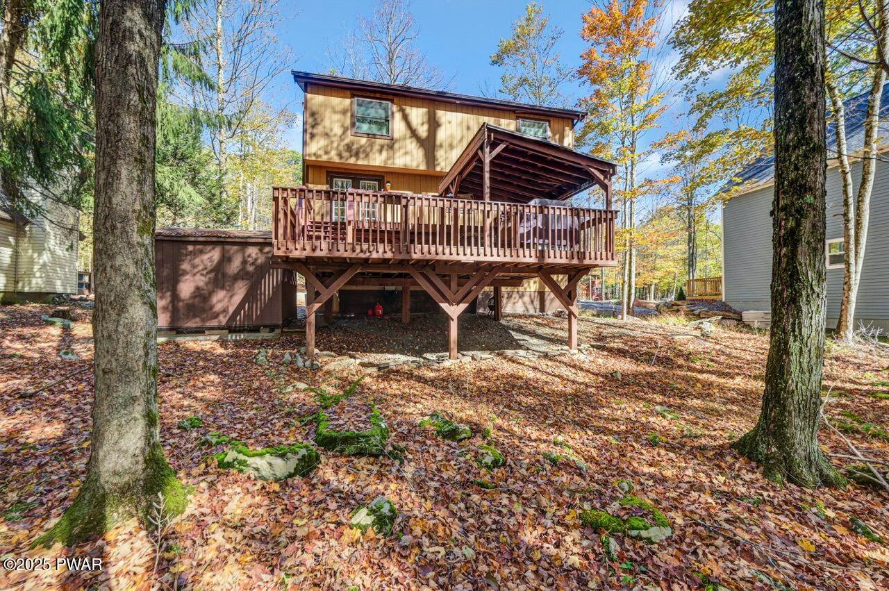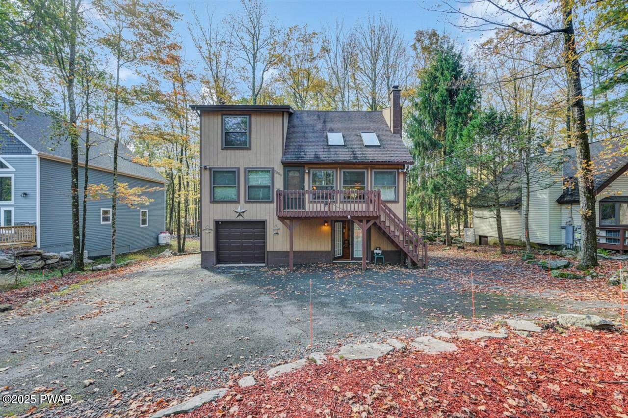 Beautifully Maintained Home Near the Golf Course in The Hideout!This charming home is ideally located near the golf course, clubhouse, and indoor recreation center in The Hideout--a premier four-season, amenity-filled community in the Northern Poconos, just two hours from the NY, NJ, and Philadelphia areas.Arrive by way of a paved circular driveway and take in the natural beauty of the surrounding woods from the inviting front deck or the expansive rear deck--perfect for relaxing or entertaining. Inside, the main level features an open floor plan with a stunning stone propane fireplace and large windows that fill the space with natural light. The spacious kitchen and dining area flow seamlessly into the living room, creating a warm and welcoming atmosphere.The primary bedroom is conveniently located on the main level and includes a large full bathroom that also connects to the hallway for added convenience. Upstairs, you'll find a beautiful open loft overlooking the living area, along with two additional bedrooms and another full bathroom--ideal for family or guests.The finished lower level is designed for fun and functionality, featuring a recreation room with a custom bar and a great vibe for entertaining, plus a laundry area and half bathroom. A garage adds even more convenience for storage or parking.This home has been lovingly maintained and cared for throughout. Most furnishings are negotiable, making this the perfect opportunity to move right in and start enjoying all that The Hideout has to offer--golfing, boating, beaches, skiing, indoor sports, fitness center, dining, and so much more!