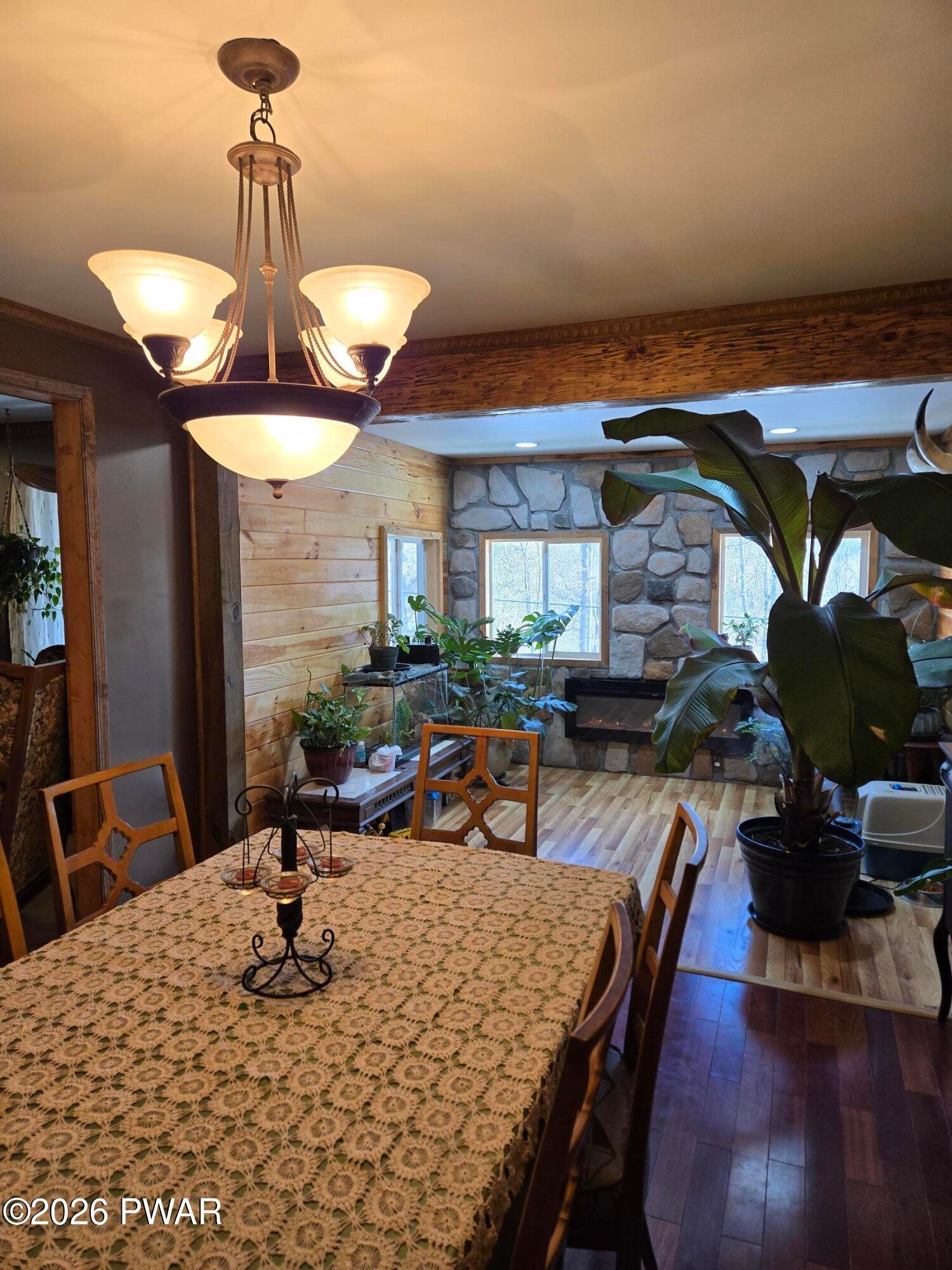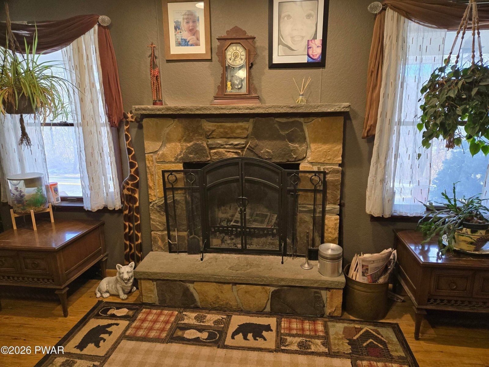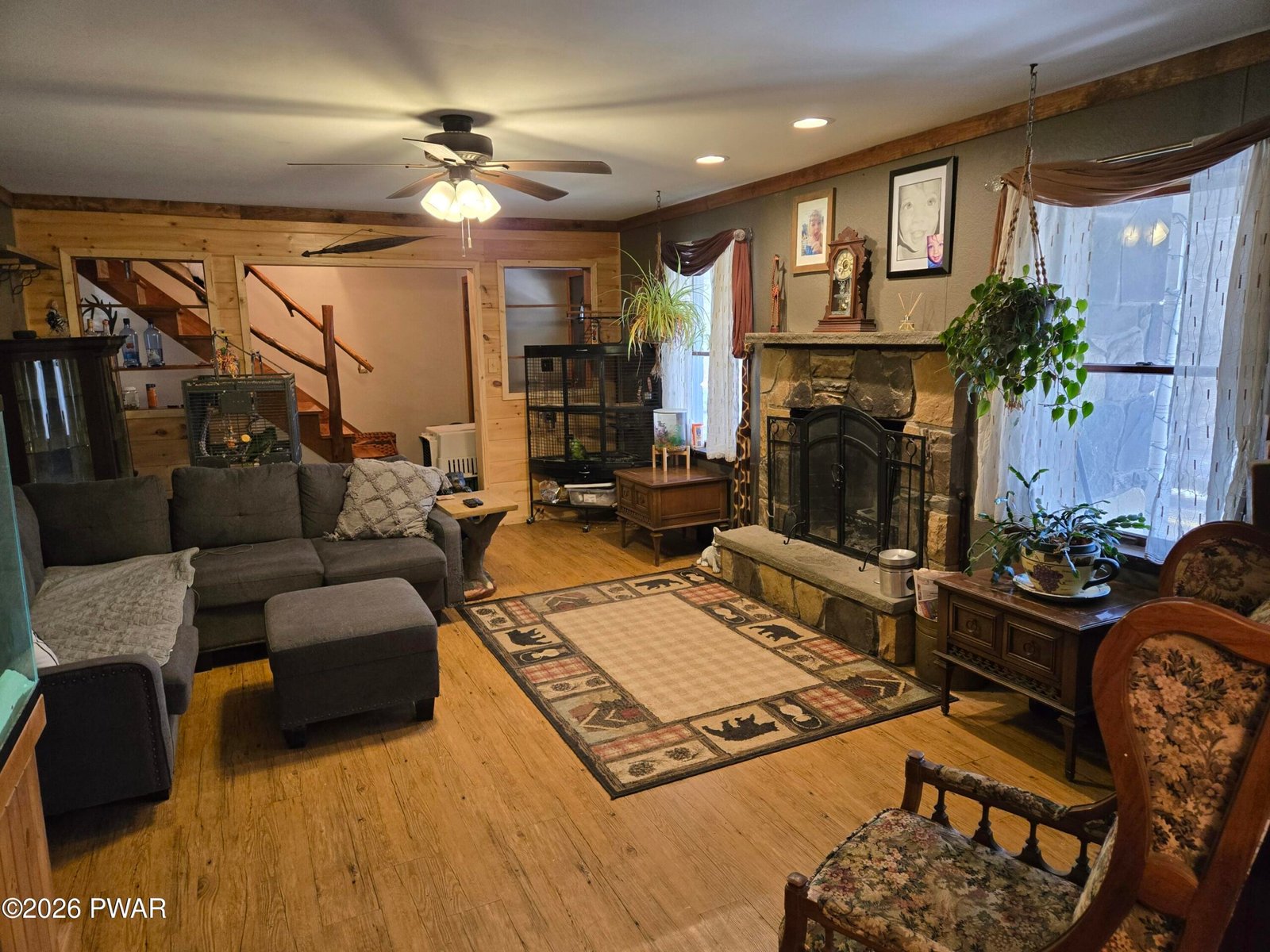 COUNTRY HOME OFFERING 3,300 SQ. FT. OF LIVING AREA ON 2 ACRES. Featuring 5 bedrooms, 3 bathrooms over 3 levels, offering multi family member use. Primary on suite on Main Level. Large open Kitchen area with woodstove, cozy breakfast area. Living room with stone fireplace, formal dining room, plant room with electric fireplace. Mud room, laundry & bath off attached oversized 2 car garage - workshop. 2nd level offers full bath, 3 bedrooms & bonus room.Finished lower level has large family den, Stone Fireplace, 5th bedroom, office & 2nd laundry area with pantry.Outside offers 2 acres of useable yard, 5 outbuildings for storage and animals. Chickens will stay if you want! Deck overlooking private back yard, which has pool, garden areas, greenhouse, koi pond, many perennial flowers and shrubs, room for family activities. Convenient to Honesdale, Elk Mt, trails & Prompton State Park with 300-acre Lake.