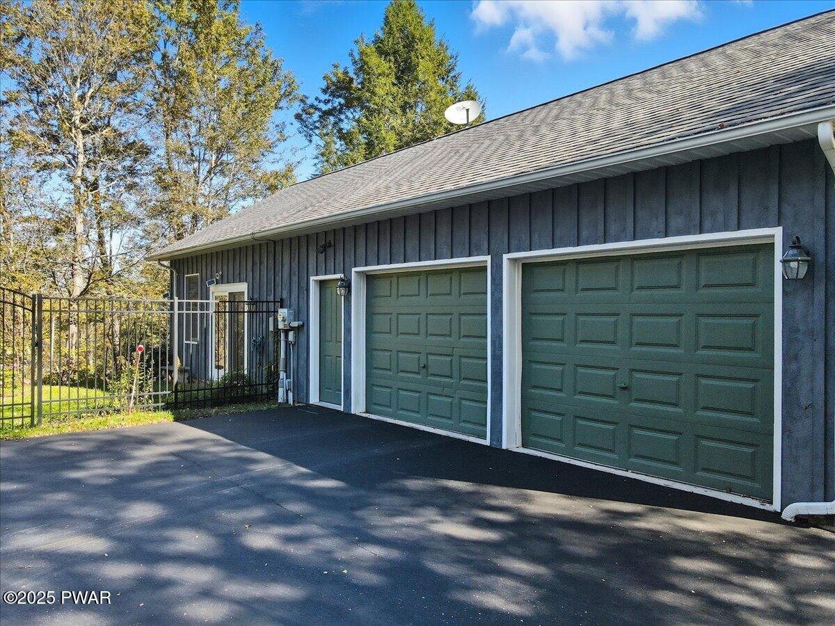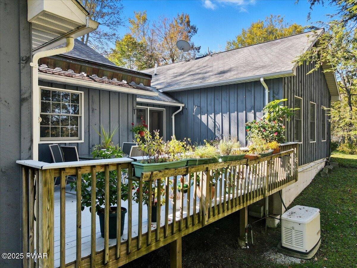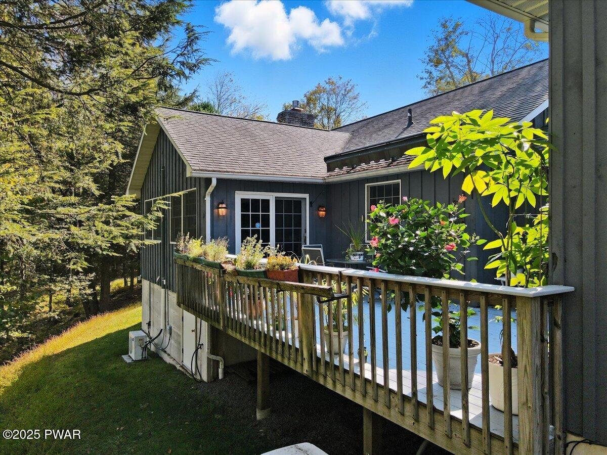 ELEGANT RANCH - BEACH LAKE AREAExperience refined comfort and timeless design in this beautifully appointed single-family residence situated in the highly desirable Beach Lake area. This thoughtfully crafted home offers sophisticated one-level living, combining luxurious details with effortless functionality. Step inside to discover two spacious bedrooms plus a versatile third bedroom or private office, ideal for modern lifestyles. The primary suite provides a private retreat with generous proportions and elegant finishes. A gracious living room with cathedral ceiling, highlighted by a stunning fireplace, welcomes you with warmth and style, while a very large family room offers additional space for entertaining, relaxation, or gatherings with loved ones. In season, the multiple gardens are stunning, featuring edible berries and fruit trees. Enjoy seamless indoor-outdoor living with a large back deck perfect for entertaining or peaceful mornings overlooking the gardens. A remote-controlled retractable awning provides shade and comfort. Enjoy the outdoors in any weather. The master bathroom shower features body jets that enhance blood circulation and muscle relaxation. Throughout the home, in-floor radiant heat delivers quiet comfort underfoot, and a whole-house generator ensures peace of mind in every season. The attached 2-car garage provides convenient access and extra storage, complemented by a separate large shed/workshop--perfect for hobbies, creative projects, or even a potential guest house. The house was built by renowned metal sculptor Raymond Rocklin, one of the founders of the abstract expressionism movement, this home carries an artistic legacy. The spacious shed once stored his creations when they weren't exhibited at the Museum of Modern Art (MoMA) in Manhattan and other prestigious galleries. Nestled in a tranquil, well-established neighborhood surrounded by natural beauty, this residence offers the perfect blend of luxury, comfort, and location.