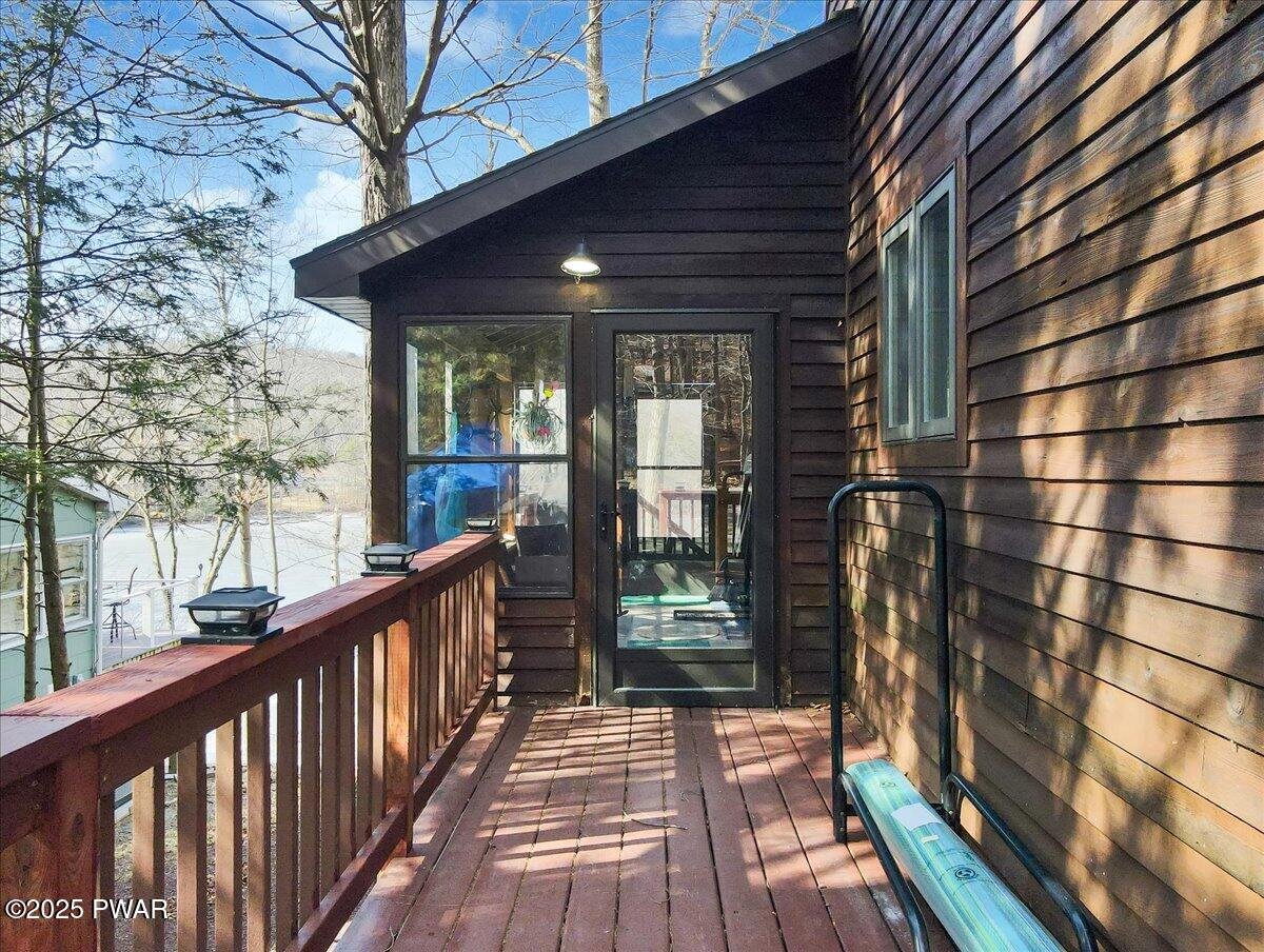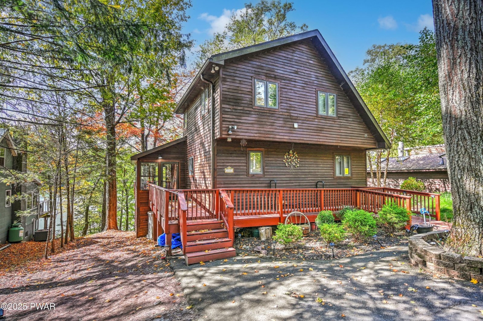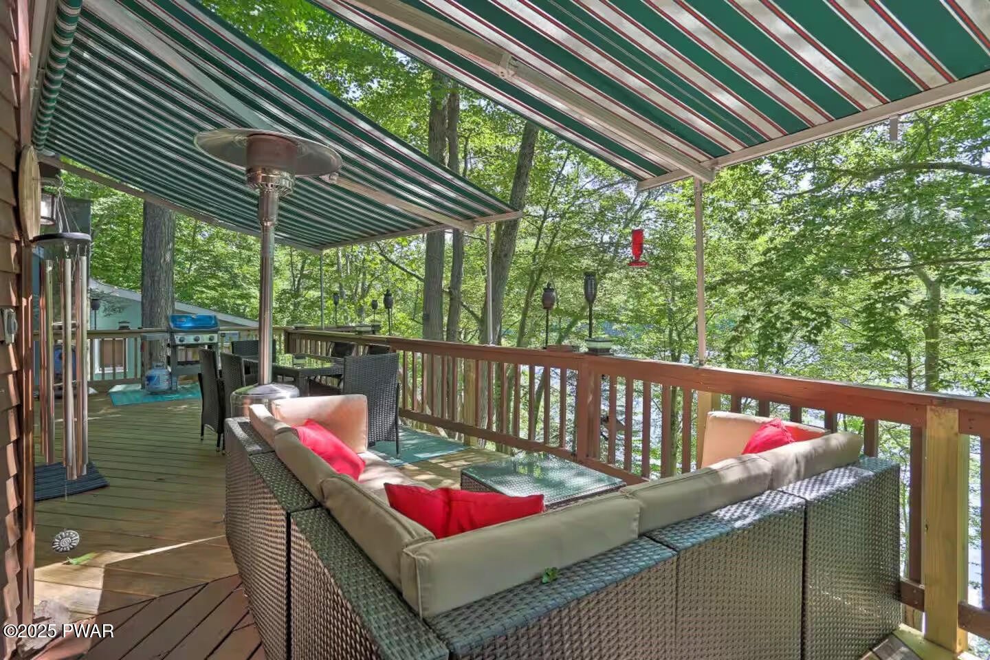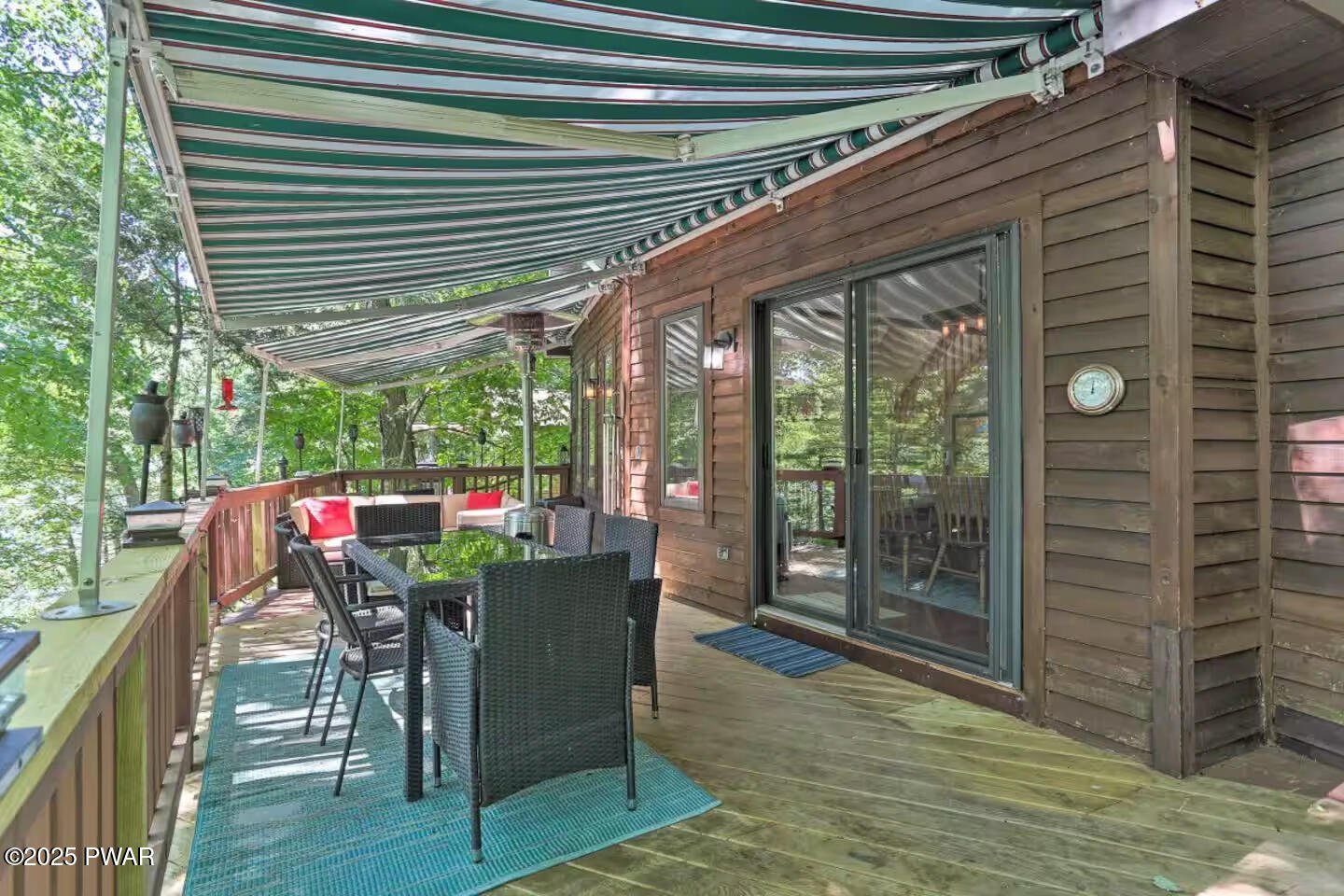 STR Investment Opportunity! Lake Wallenpaupack Lakefront 3 Bedroom, 2 bath Chalet in Hemlock Point with beautiful views of the lake & amazing sunsets! The outdoors are meant for entertaining - three tier deck w/awnings, gas grill, outdoor dining table, Adirondack chairs, outdoor living room, heater, & amazing lake views; the middle-level deck features hammocks & a sitting area; the lower-level deck has an outdoor living room set & gas fire pit; head to the private dock and enjoy the boating, fishing, swimming and more! There is a swim ladder, as you can swim off the dock where the water is quite deep. The inside features an open floor plan w/vaulted ceiling, hardwood floors, a wood burning fireplace & a wall of windows overlooking the lake, dining area, large kitchen, living room & sunroom. The primary bedroom is located on the main level w/a full bath. Head to the upper-level w/ T&G ceilings, a loft, two bedrooms & a full bath. Entertain in the lower-level in the newly renovated family room & Rec room. There is also an additional sleeping space. Walk out to the deck & enjoy relaxing in the hammock or head to the lake. Turnkey w/ new furniture & furnishings included. Plenty of parking for guests in the flat, paved driveway. Current short-term rental - 2025has been VERY booked with rentals.