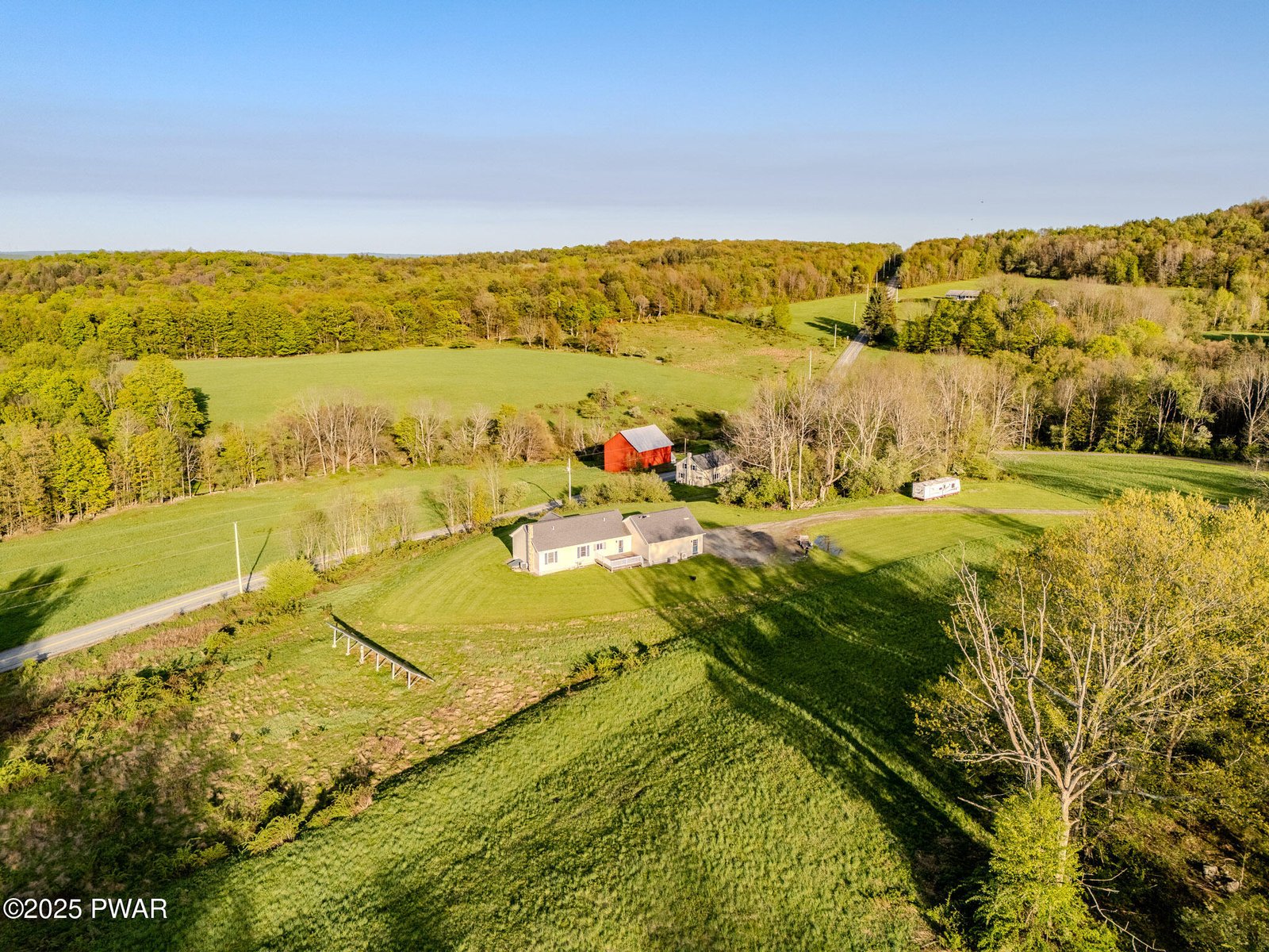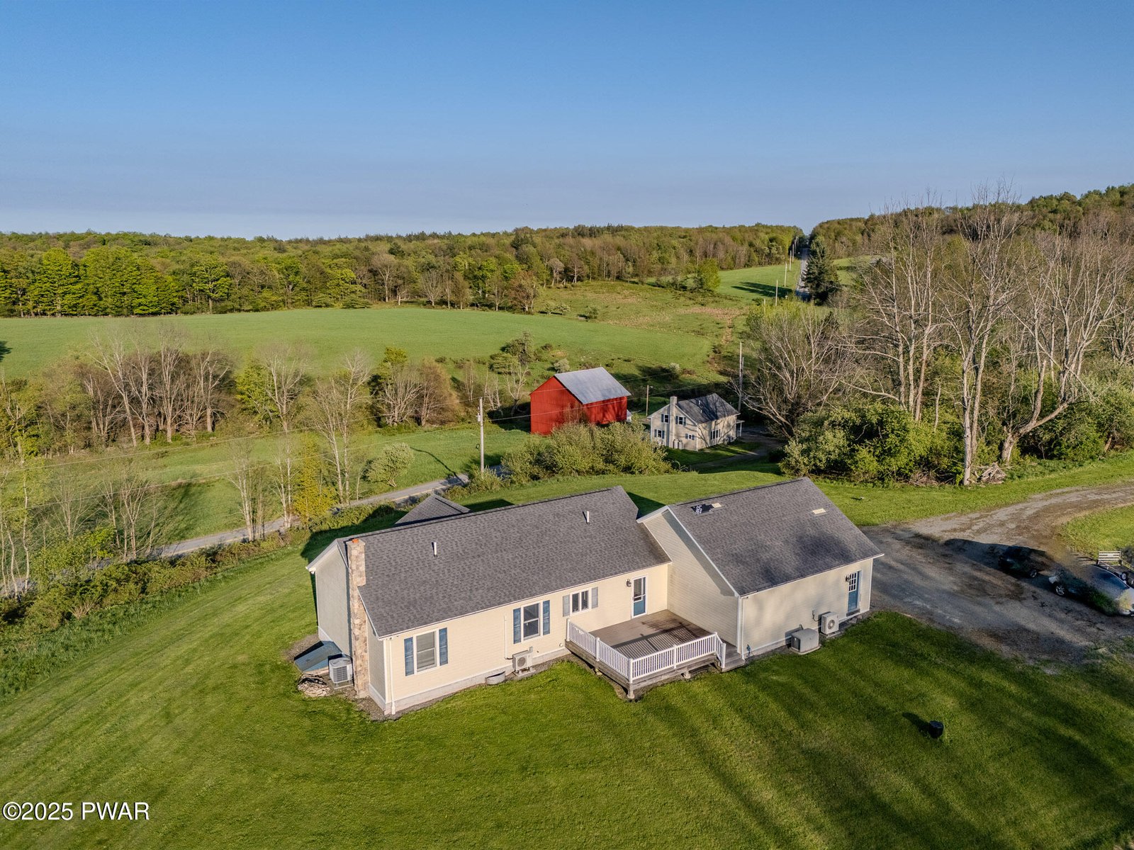 NATURE LOVERS ESTATE - 100 ACRES - STREAM - VIEWS - 2 HOUSES - BARN-Perfect scenic location and long private drive leads to this one of a kind country estate. Experience this magnificent property with breathtaking mountain views from the like-new 3 bedroom, 3 bath ranch home with a large gourmet kitchen, living room and four-season room. This meticulously maintained home boasts 2 inviting porches great for entertaining and a large partially finished basement with a wood stove, full bathroom and maximum storage space.. Not a detail has been missed - all with a large 2-car garage, concrete siding, solar panels, a generator and RV hook-ups. The main house overlooks a modern 3 bedroom 2 bath farmhouse with charming touches, along with a beautiful renovated traditional red barn. Enjoy the blend of open fields and wooded areas and stream running through the land. This special and unique property includes acreage on both sides of the road and all the privacy you can imagine. The long lane leads to the top peak of the property and includes a well and electric for future building dreams. Close to Elk mountain and all nestled on a very special 100-acre natural wildlife habitat with stream, hiking and a blend of rolling fields and mature woodlands. Must see to truly feel how incredible this property is!