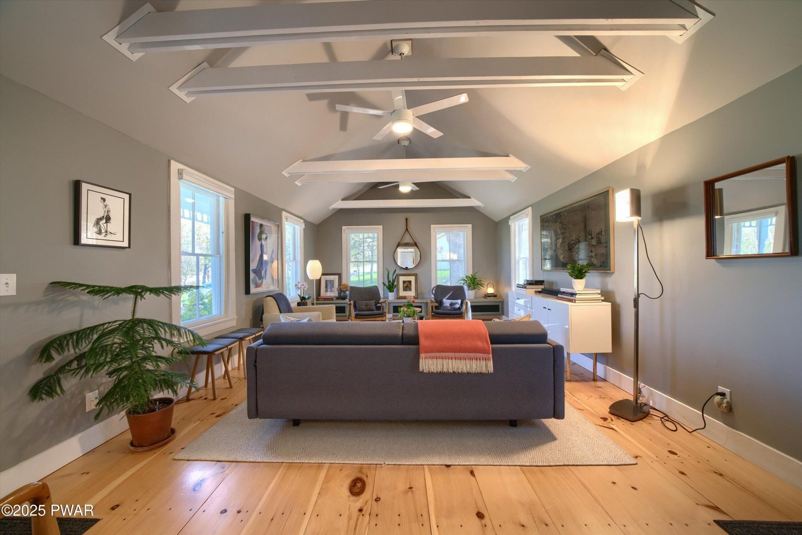 Architect-Renovated Farmhouse Retreat with Bonus Lot - 208 Milanville Rd, Damascus, PAA timeless country classic, completely reimagined, a beautifully restored farmhouse infused with thoughtful modern updates by two visionary architects. Located on a quiet tree-lined half-acre and sold with an additional 2.68-acre parcel across the street, this 3.18-acre package offers the perfect blend of charm, efficiency, and outdoor enjoyment just five minutes from Narrowsburg and the Delaware River.Every inch of this home has been transformed for comfort and sustainability. Inside, the soaring cathedral-beamed living room invites you in with warmth and character. Renovations include a new roof, new porch framing and foundations, and full wood siding replacement with R13 insulation in the walls and R38 in the attic. The chef's kitchen features stainless steel Bosch appliances, concrete countertops, and clean, contemporary finishes. A new 200-amp electrical panel, updated plumbing, and new septic tank offer peace of mind for years to come.The home's layout includes one spacious bedroom, a full bath, and a cozy sitting area or office that could easily be converted into a second bedroom. Step out onto the tiered back deck, where a restored studio/workshop/guest space rests on a new foundation and footer of concrete and cinder block in spring 2021 ideal for creative pursuits, guests, or a home office.Outdoors, enjoy the fire pit, stone walls, and a peaceful wooded setting. Two sheds that have been restored, reinforced and new metal roofs. Across the road, the additional lot includes its own well, septic, electric, and a scenic beaver pond, expanding your options for building or recreation.Located just 2.5 hours from NYC and minutes from the river town of Narrowsburg, this home is a gateway to kayaking, hiking, skiing, and all the beauty of the Upper Delaware corridor. Low taxes and high appeal--this is your Catskills s