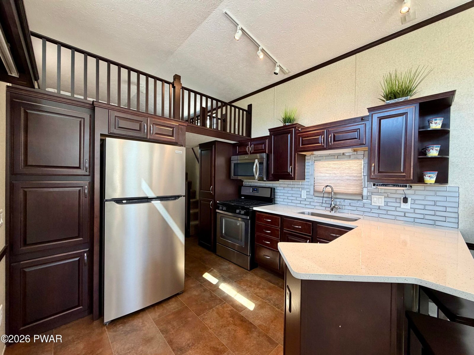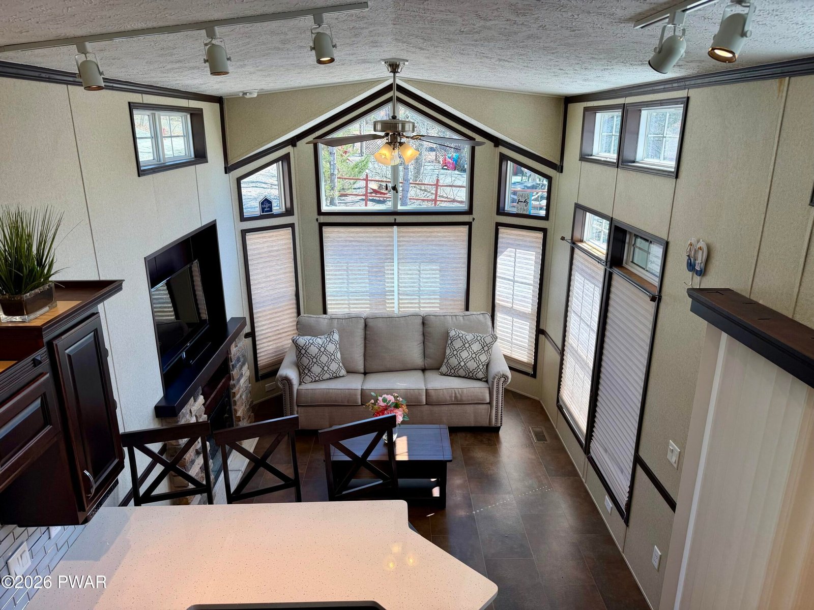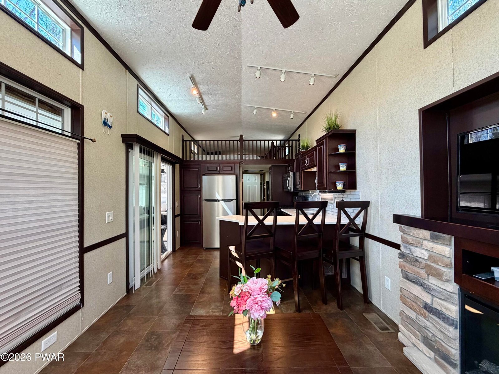 STUNNING, HOME AWAY FROM HOME. 700 sq ft like new park model situated on a flat corner lot in an amenity-filled community. This cozy getaway features 2 fireplaces, a well-appointed kitchen with a wrap around island, full-size stainless steel appliances, custom cabinetry and granite countertops, primary bedroom, full size bathroom, cozy living room and a spacious loft for extra sleeping space. In addition, the newly added 300 sq ft. fully enclosed living area creates a homey yet spacious feel, while the corner lot offers extra outdoor space which includes a shed, large firepit and gazebo. A great opportunity for comfortable, affordable living or a relaxing retreat with plenty of community perks. Trails End offers sparkling pools, clubhouse, weekend bar service, game room, fitness room, baseball field, shuffleboard and much more. Yearly dues include water, electric, sewer and refuse. Come see this today!!! You won't be disappointed. Pride in ownership without a doubt.