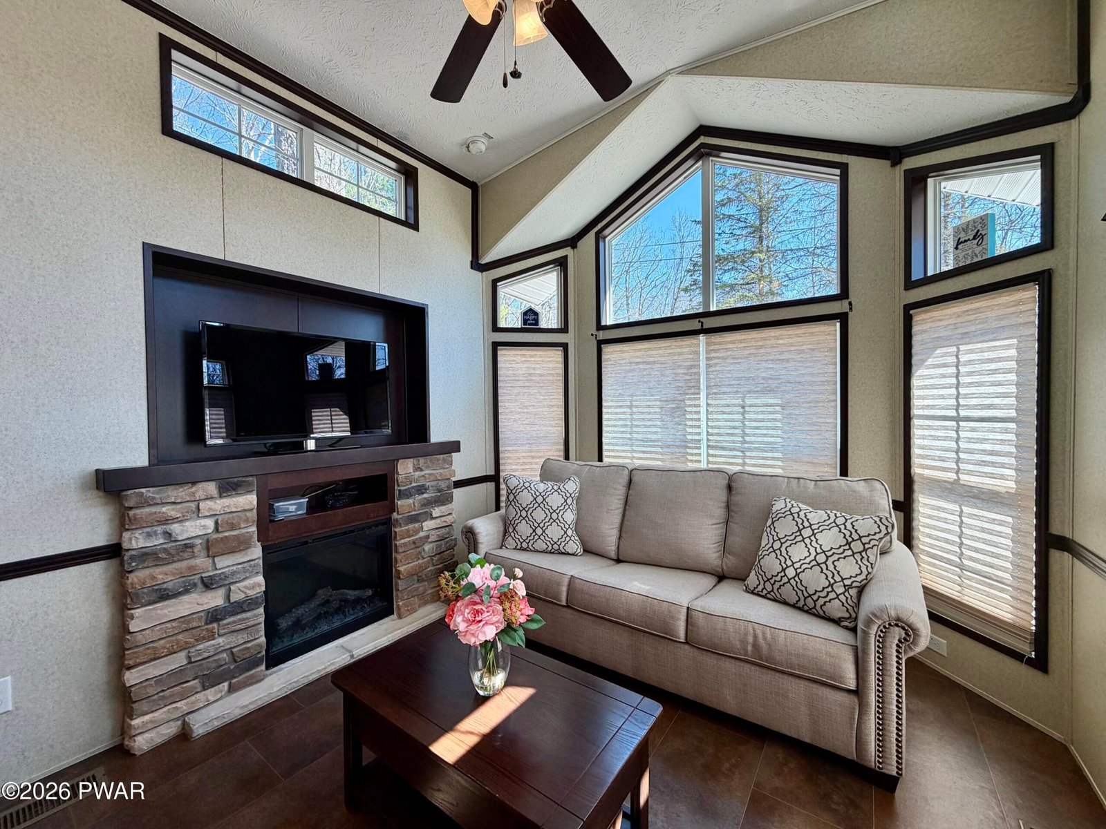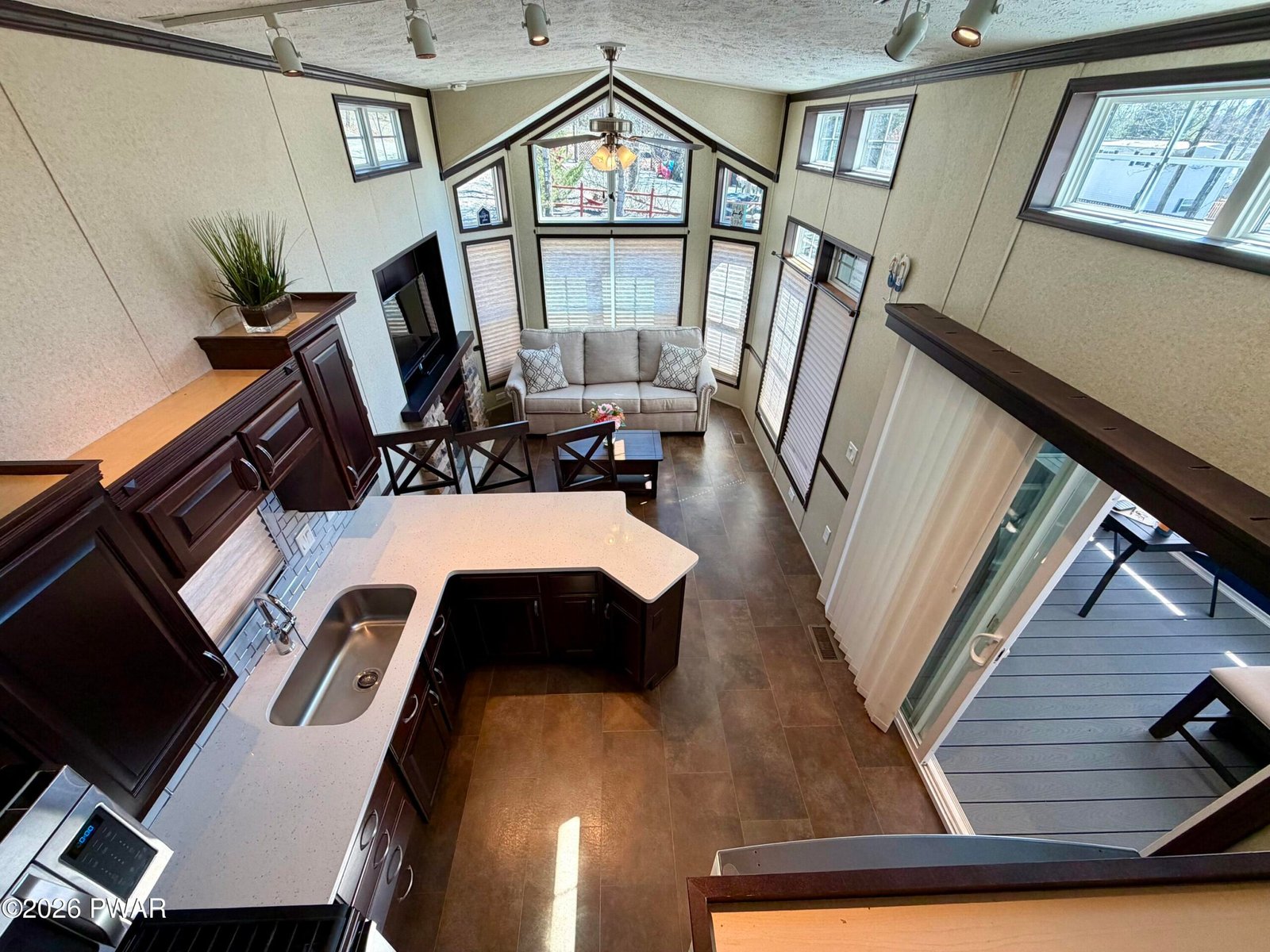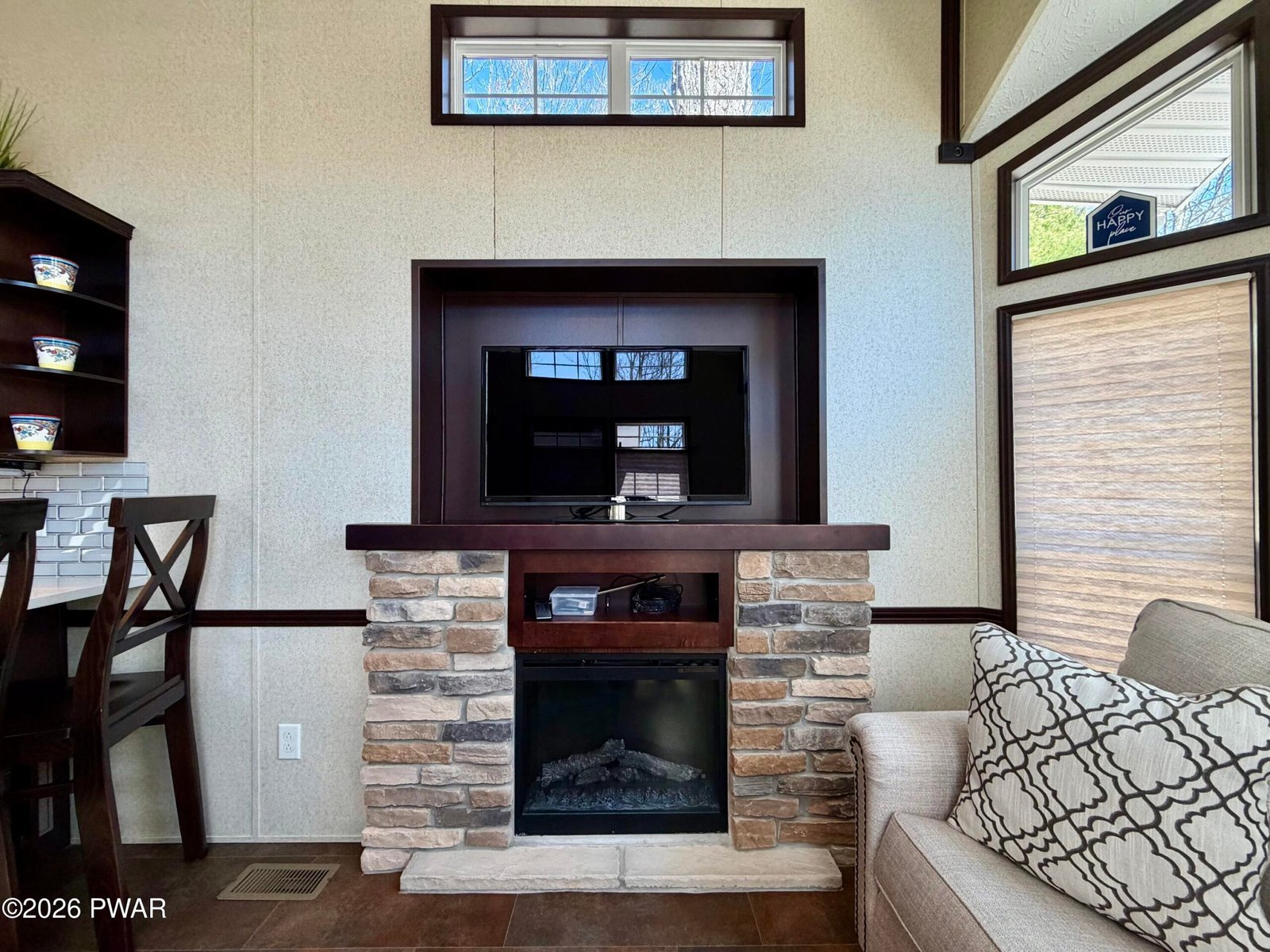 STUNNING, HOME AWAY FROM HOME. 700 sq ft like new park model situated on a flat corner lot in an amenity-filled community. This cozy getaway features 2 fireplaces, a well-appointed kitchen with a wrap around island, full-size stainless steel appliances, custom cabinetry and granite countertops, primary bedroom, full size bathroom, cozy living room and a spacious loft for extra sleeping space. In addition, the newly added 300 sq ft. fully enclosed living area creates a homey yet spacious feel, while the corner lot offers extra outdoor space which includes a shed, large firepit and gazebo. A great opportunity for comfortable, affordable living or a relaxing retreat with plenty of community perks. Trails End offers sparkling pools, clubhouse, weekend bar service, game room, fitness room, baseball field, shuffleboard and much more. Yearly dues include water, electric, sewer and refuse. Come see this today!!! You won't be disappointed. Pride in ownership without a doubt.