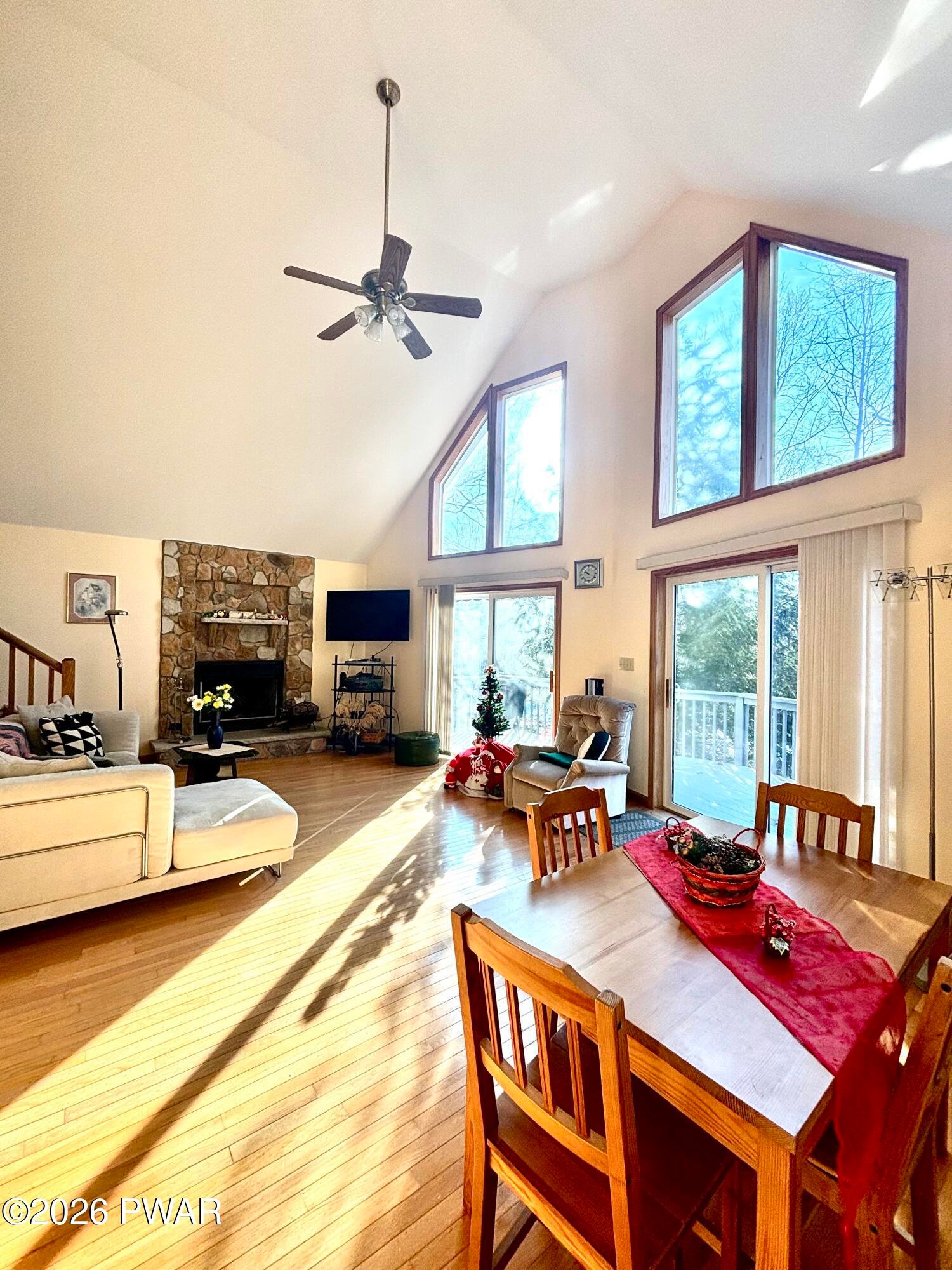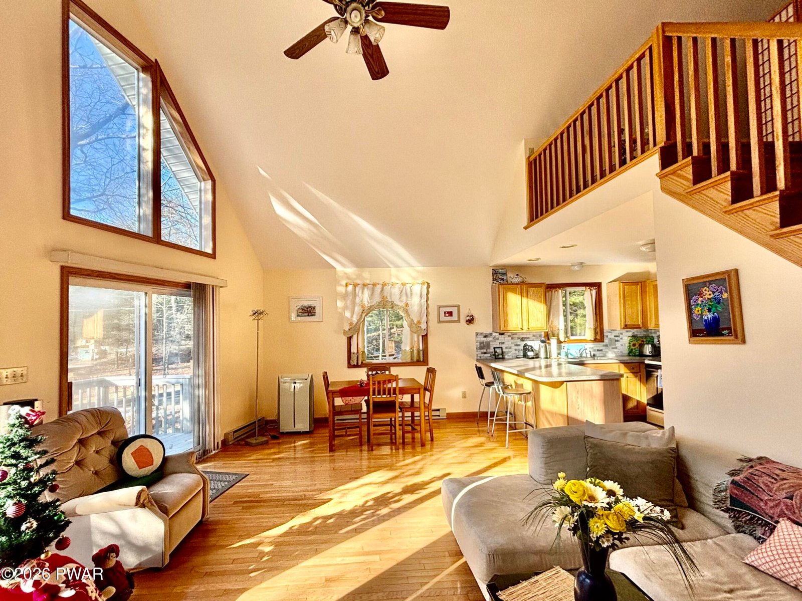 Meticulously maintained chalet-style home awaits its new owners. Located in a well-maintained, amenity community, residents enjoy access to an outdoor pool, seven lakes, tennis courts, playgrounds, a dog park, and 24/7 gated security--plus much more. Conveniently situated in the tri-state area of NY, NJ, and PA, this community is considered one of the fastest-growing neighborhoods in Pennsylvania.This cozy home offers 3 bedrooms, 2 full bathrooms, and a spacious loft that can be used as an additional bedroom, library, art studio, or game room. The lower level features a private sauna, perfect for relaxing during the cold winter months. A fully finished basement provides ample space to accommodate large gatherings, guests, and family celebrations.Enjoy the beauty of nature with surrounding forest views and serene lakes just minutes away. A short walk brings you directly to the lake, making this home ideal for both relaxation and recreation.