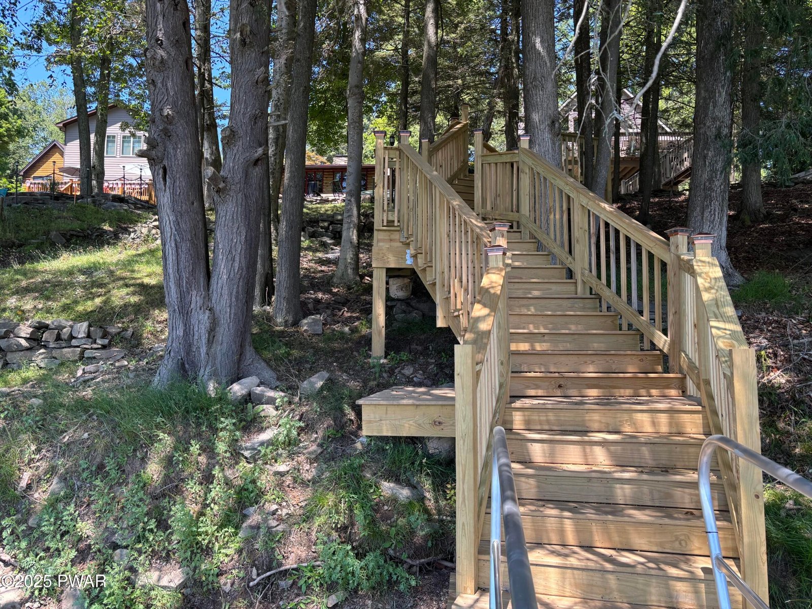 Beautiful lake front cottage with 50' of lake frontage on Lake Wallenpaupack. Stunning stone fireplace and wood work throughout. Shared paved driveway with garage and plenty of parking. House has three bedrooms, two bathrooms and a sleeping loft. Finished basement bedroom with a full bathroom for your guests. Brand new steps leading to the lake and your private boat dock. Short term rentals are currently allowed