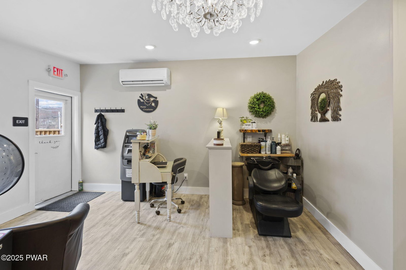 INCREDIBLE MIXED USE INVESTMENT PROPERTY IN THE HEART OF HONESDALE! This immaculate two-family home with a busy full-service salon is perfectly situated on Route 6 in the Honesdale Borough, offering prime visibility and exceptional income potential. The immaculate salon space is setup for multiple stylists/technicians and plenty of parking with an ADA accessible entrance. This is ideal for the growing salon owner to make the space their own or an investor who would like the current owner to stay as their tenant. Salon space could also make a great office or additional living space! Lots of options for this beautiful space! The first-floor apartment features gorgeous original hardwood flooring, a spacious side living room, a large eat-in kitchen with vinyl flooring, a full bathroom, one bedroom, and a charming covered front porch--perfect for relaxing or greeting guests. The second-floor apartment mirrors the layout with similar finishes and condition, offering another spacious two-bedroom unit with a full kitchen, living area, and bath. Both units are beautifully maintained and currently occupied. Additional features include a full concrete basement with laundry area, two separate electric meters, and plenty of off-street parking. Whether you're looking to operate your own business, live in one unit and rent the others, or add a strong investment property to your portfolio, this versatile property is a rare find in a high-demand location. Don't miss out on this exceptional opportunity right in the heart of Honesdale!