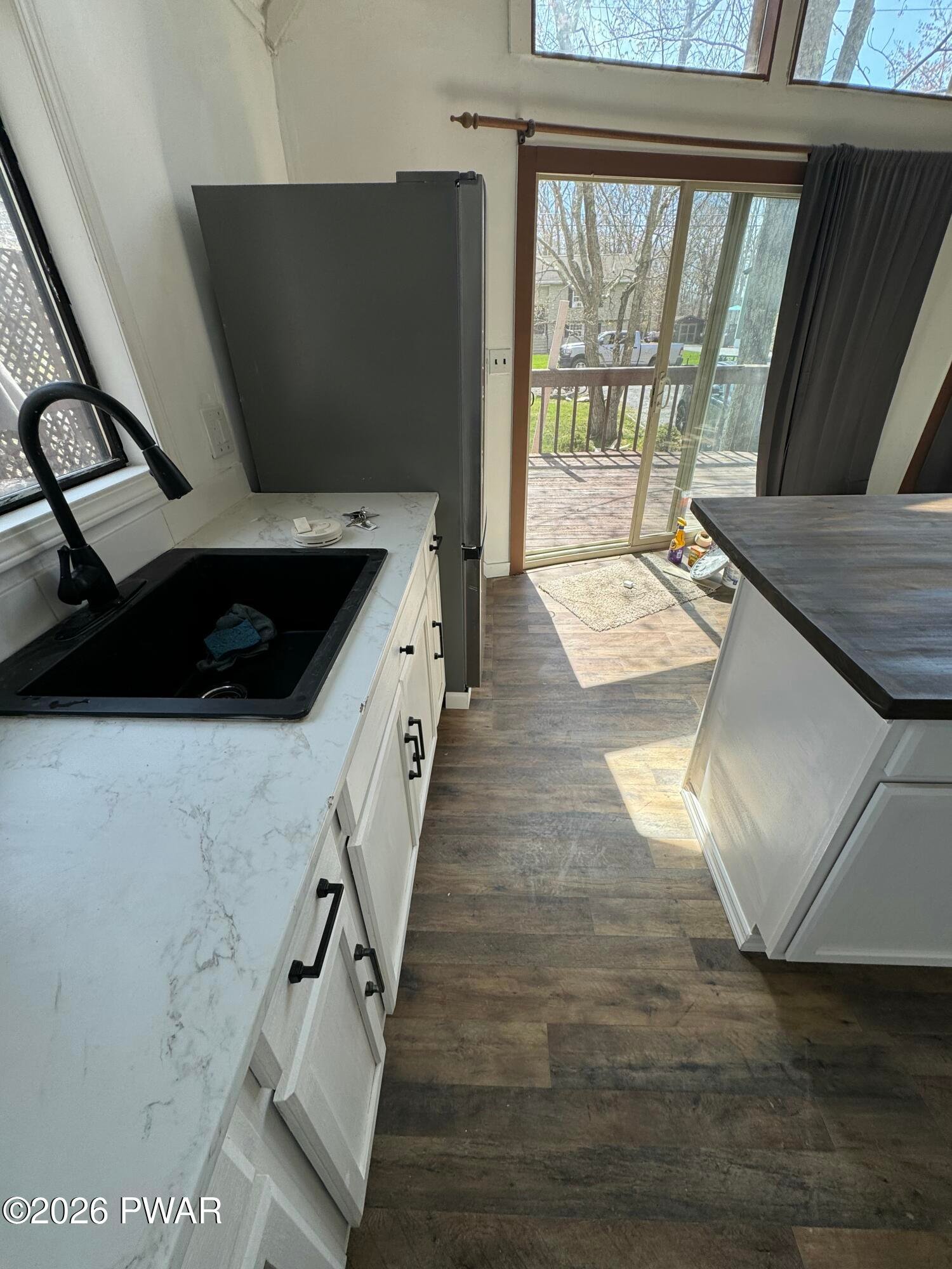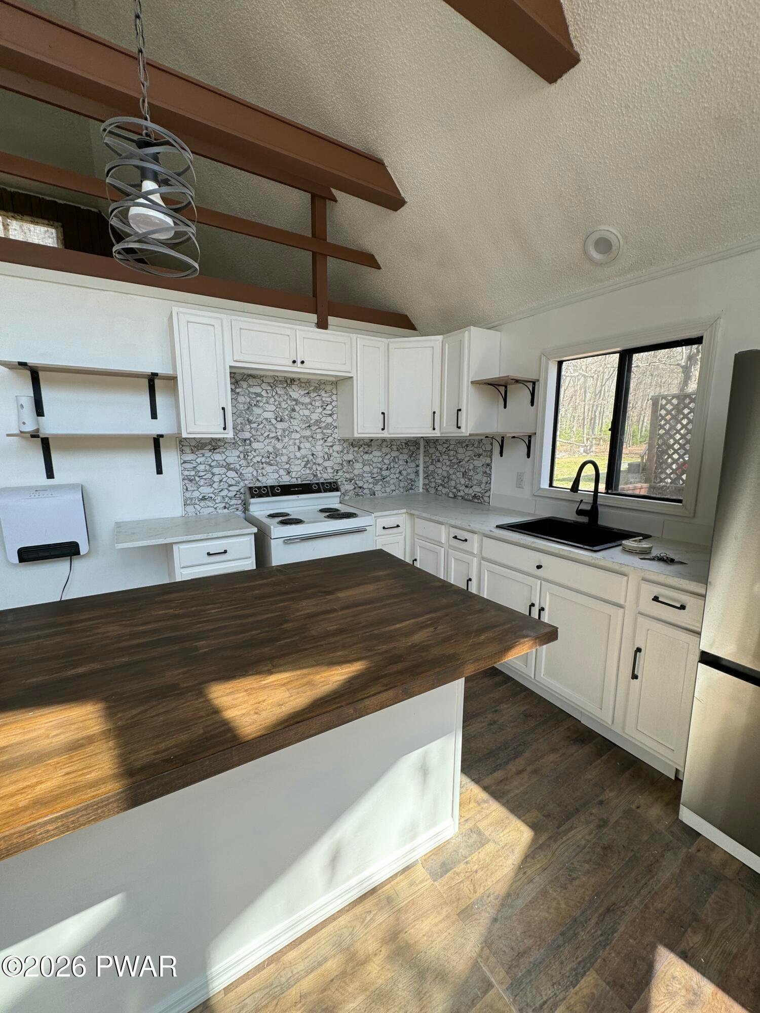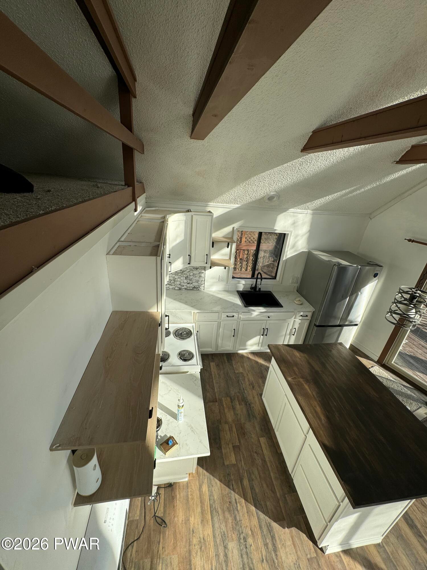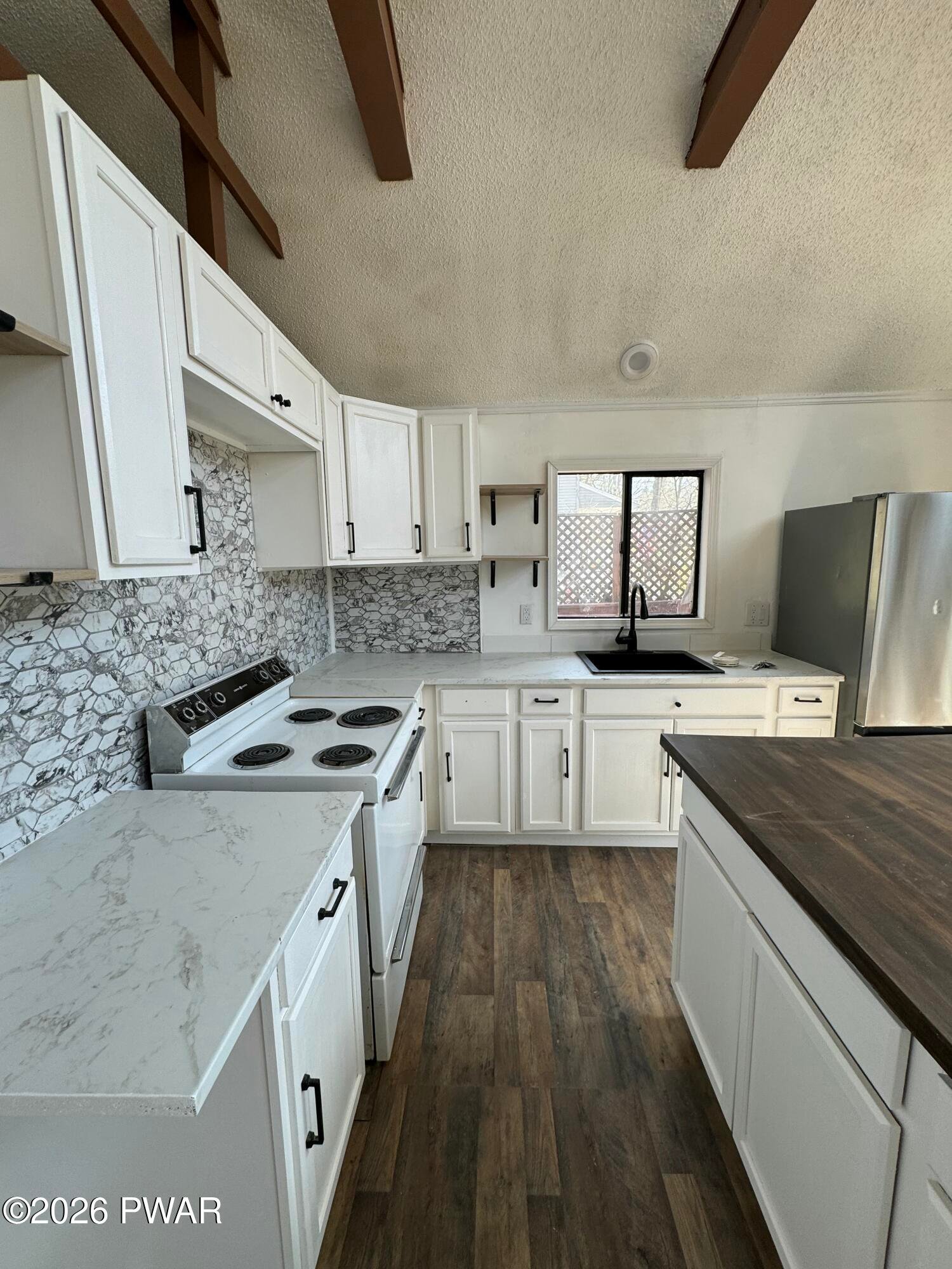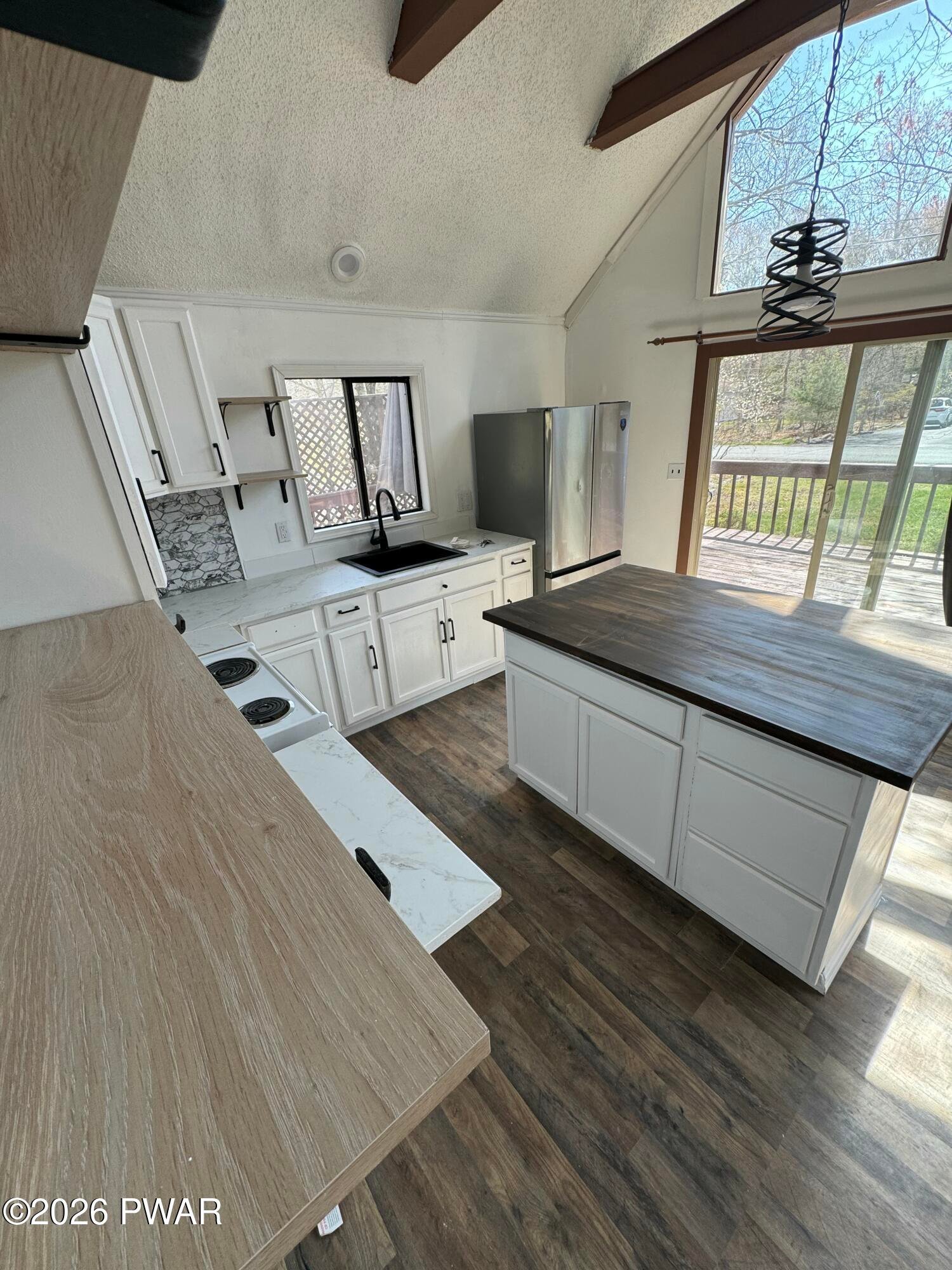 NEW PLUMBING, NEW KITCHEN, NEW INTERIOR!!Modern A-Frame RetreatDiscover iconic design meets modern comfort in this stunning, sun-drenched A-frame. Interior: Soaring ceilings, floor-to-ceiling windows, updated flooring, and a reimagined kitchen with butcher-block countertops. Exterior: Expansive wraparound deck surrounded by lush woods. Amenities: Full access to the community clubhouse, pool, and private lakes.Modern, stylish, and move-in ready. Schedule your tour today!