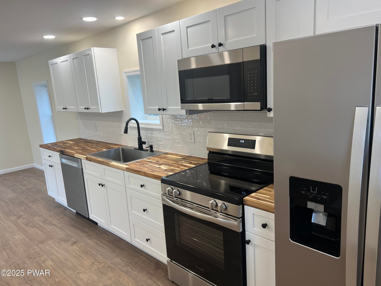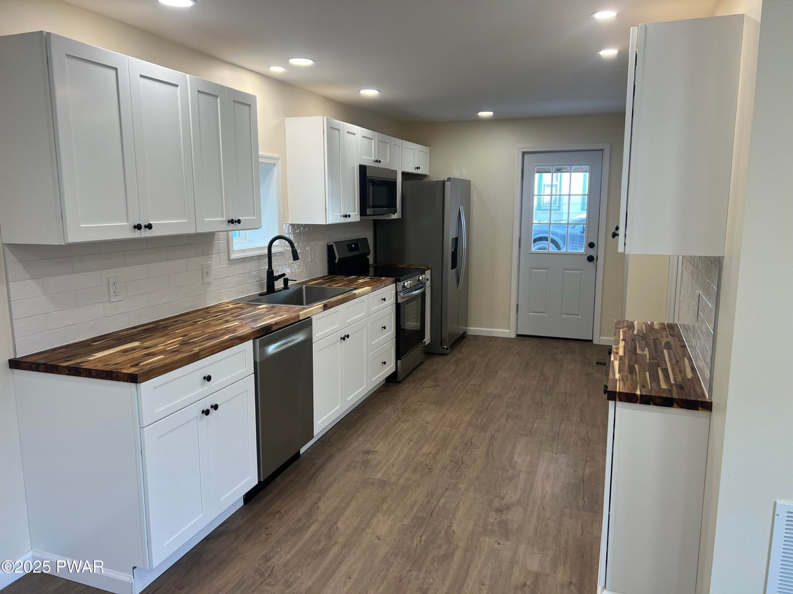 Welcome to this beautifully updated 3-bedroom 2.5 bath two story home in the heart of Honesdale - offering 1,340 sq. ft. of comfortable living space in a great town location. Inside you'll find a modern renovation with brand new wiring, plumbing, and sheetrock walls throughout. The home features luxury vinyl flooring, a stylish updated kitchen equipped with stainless steel appliances, and a layout designed for convenience: living room, dining room, kitchen, laundry room, and a half bath on the first floor. Upstairs are three cozy bedrooms and two full baths, master bedroom bath and walk-in closet combining comfort and practicality. Also included is a 1 car garage.
