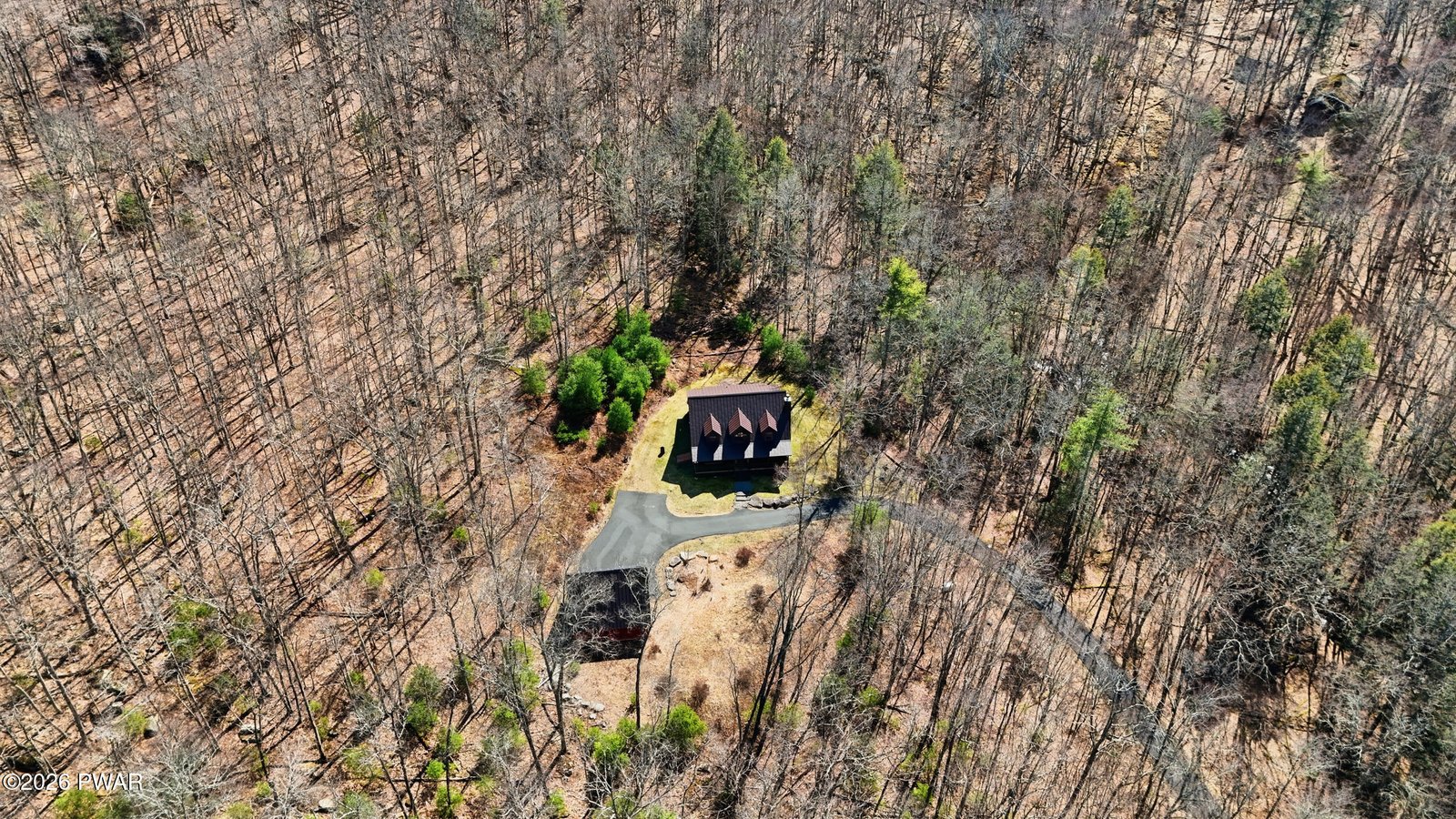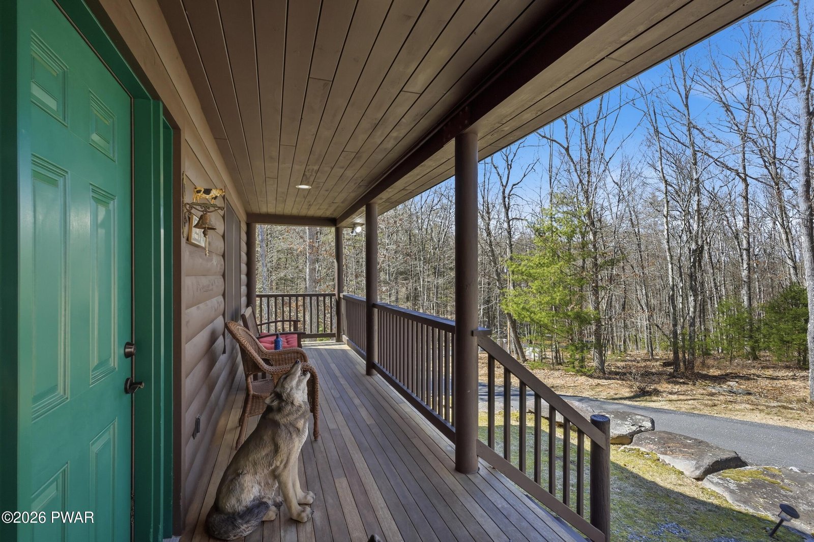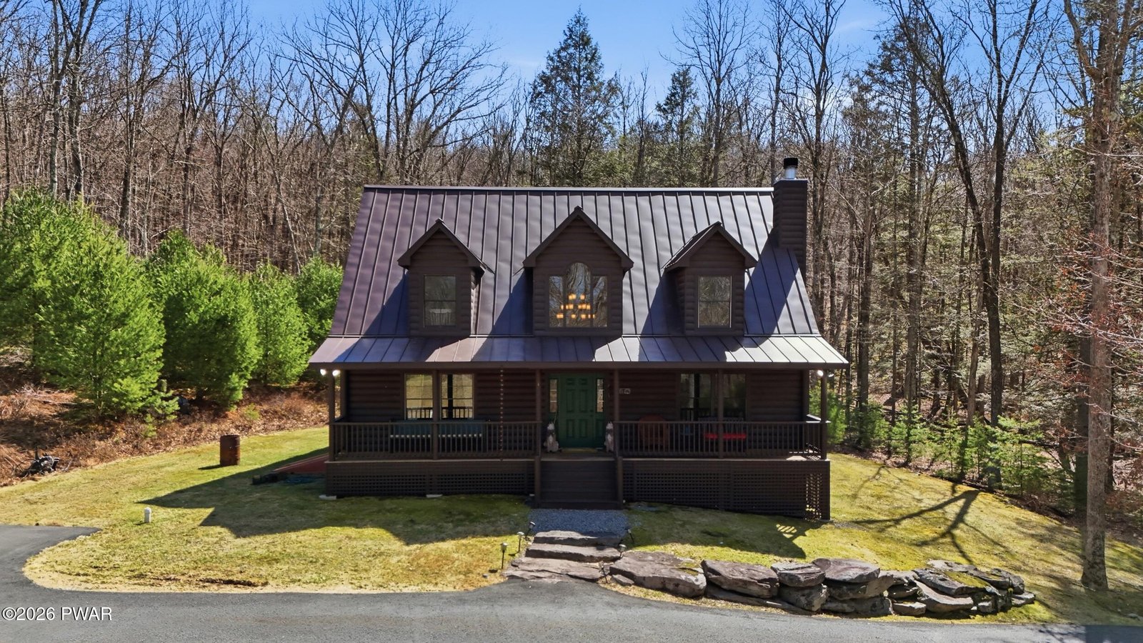 Escape to your private sanctuary in Greeley, PA! This stunning 62-acre property is in a serene woodland setting with a meandering paved driveway leading to your secluded residence. Built in 2009, the home features log siding, a metal roof, and inviting covered porch perfect for relaxation.Inside, enjoy:- Vaulted ceilings and natural light pouring in- Woodburning fireplace and beautiful wood floors- Spacious kitchen with walk-in pantry- 3 beds, 2.5 baths, including a large primary suite- Finished basement recreation room and utility area- Spacious garage with ample storageGreen Energy perks:- Generator ensures uninterrupted power- Geothermal heating and cooling for efficiency and comfort-Solar panels on garage roofUnwind on your private 62.5 acres, with a stream running through and endless opportunities for outdoor adventures. High-speed internet ensures you stay connected to the outside world, while you escape to the forest. Call today for your private tour.