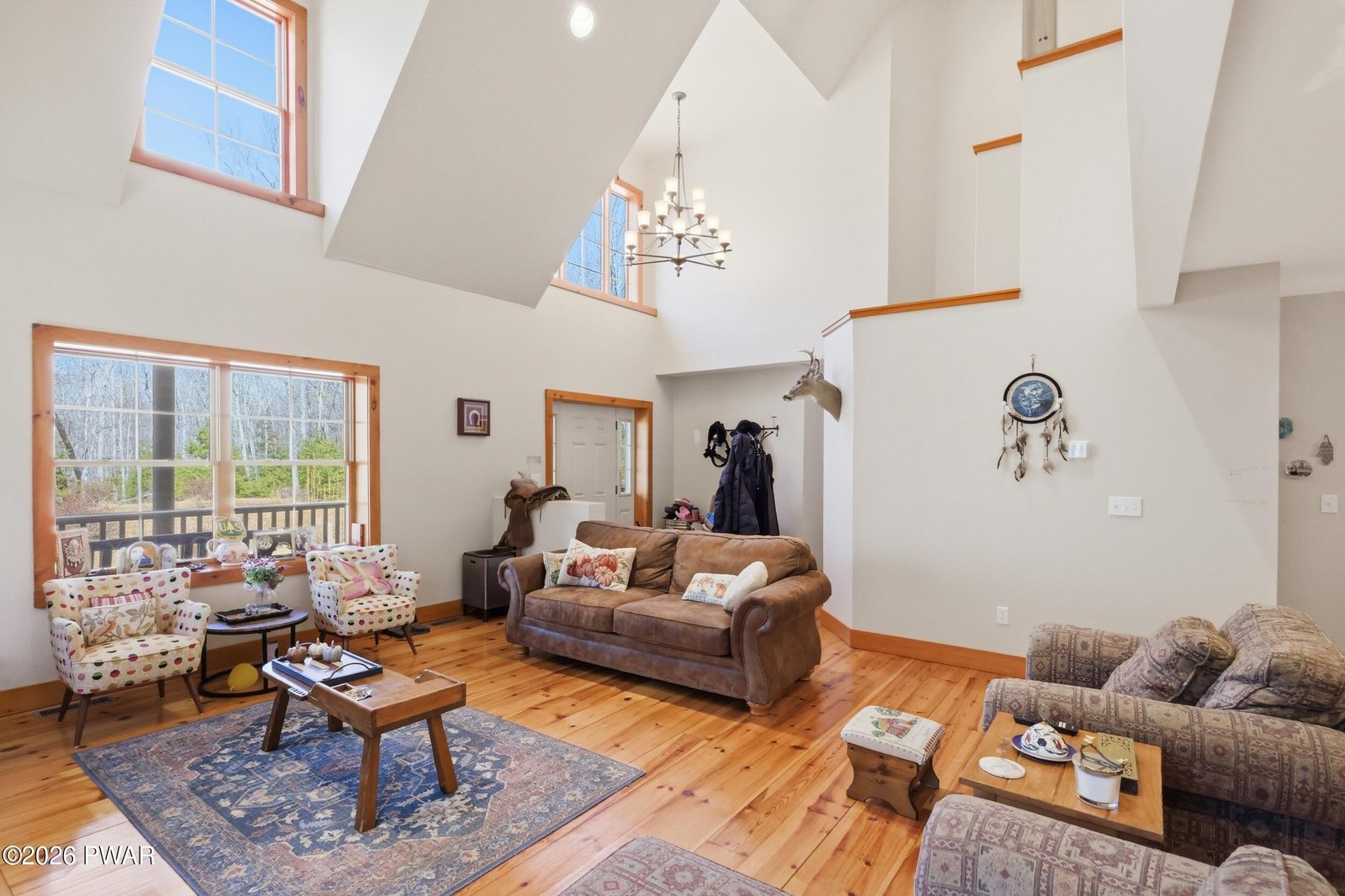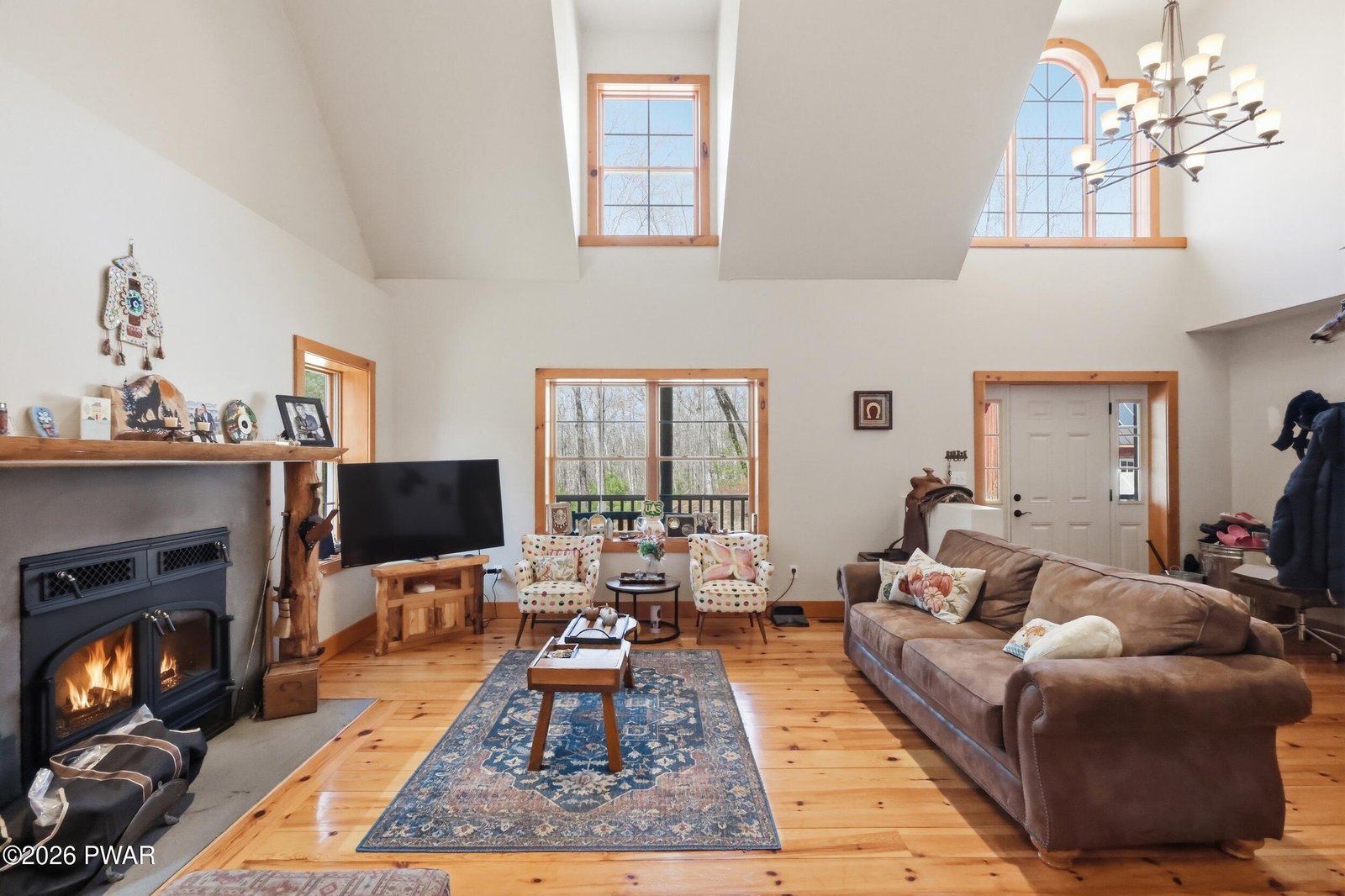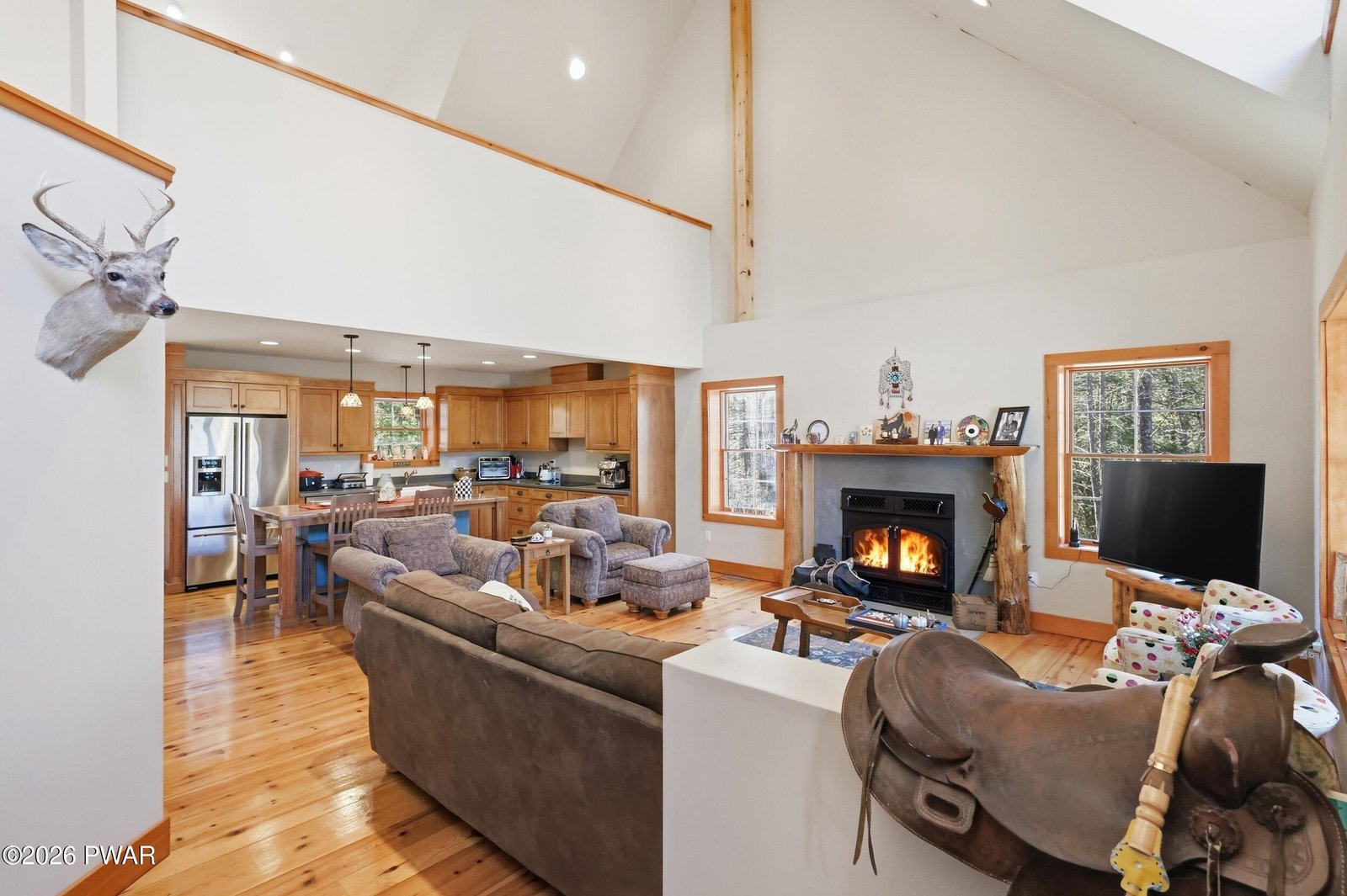 Escape to your private sanctuary in Greeley, PA! This stunning 62-acre property is in a serene woodland setting with a meandering paved driveway leading to your secluded residence. Built in 2009, the home features log siding, a metal roof, and inviting covered porch perfect for relaxation.Inside, enjoy:- Vaulted ceilings and natural light pouring in- Woodburning fireplace and beautiful wood floors- Spacious kitchen with walk-in pantry- 3 beds, 2.5 baths, including a large primary suite- Finished basement recreation room and utility area- Spacious garage with ample storageGreen Energy perks:- Generator ensures uninterrupted power- Geothermal heating and cooling for efficiency and comfort-Solar panels on garage roofUnwind on your private 62.5 acres, with a stream running through and endless opportunities for outdoor adventures. High-speed internet ensures you stay connected to the outside world, while you escape to the forest. Call today for your private tour.