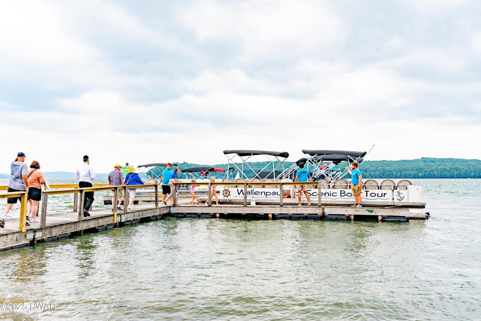 Iconic property for sale on Historic Route 6 with 400+ ft of lake frontage! Boutique 12-unit STR motel, 7-unit commercial rental building, 2,500 SF luxury apartment, tour boat, charter & boat rental operation (pontoons, kayaks & stand-up paddle boards), gift shop, 44 boat slips, undeveloped mountain with amazing lake views, and directly bordering 2,000 acres of state game land. Building 1 - Gresham's Landing: passive income with the 10,000 SF multi-use building that includes 7 units, 41 parking spots, and a 2,500 SF luxury apartment rental - building is fully occupied. Building 2 - East Shore Lodging: 12-unit boutique motel set up as a STR with contactless check-in and keyless entry. The building also includes a gift shop and booking center for the water operation. The waterfront operation is located across the street on 2 boat docks and includes 2 tour boats, 1 charter, 8 pontoon rentals, 14 kayaks, 10 stand-up paddle boards, and 2 kayak racks. Infrastructure includes a highway occupancy permit, state-permitted crosswalk, wireless camera system, solar panels that power the office, 2 wells, and 2 newly topped septic beds (July/August 2025). Sale includes 2 buildings, shed, watercraft & equipment, docks, Kubota, room furniture (list can be provided). Property is located across from the Observation Dike, Lake Wallenpaupack Nature Trail, and the Visitors Center - centrally located for Wally Lake Fest, Hawley Winterfest, and the 4th of July Fireworks!