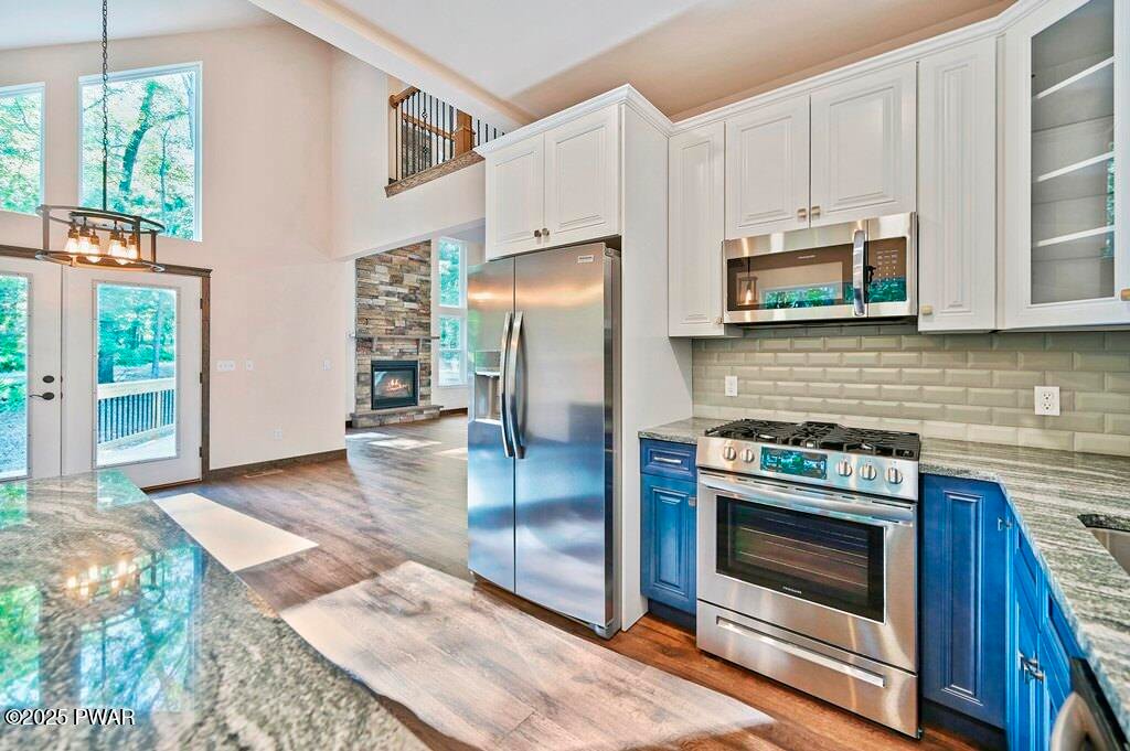 UNDER CONSTRUCTION Brand new beautiful lakeview model on Greenbelt, built by areas PREMIER BUILDER. Builder is including the following upgrade in list price: U shape kitchen, exterior fieldstone chimney (deck up), vinyl basement living room floor, tile kitchen back splash, black soffit/facia and gutters w/ gutter guards. Exterior vinyl siding color is Sagebrook. Home offers 3 floors finished, turn key package, custom built home featuring 4BD (including 2 suites) 3.5BA, open floor plan, cathedral ceilings, finished basement, multiple living areas, front and rear deck, rear deck over looks greenbelt, wood grade trim package, premium roofing, siding and light package, interior fieldstone from floor to ceiling in living room, propane gas fireplace, hardwood floors, tile baths, SS appliances (white washer & dryer), granite kitchen and bathroom vanities, cac and heat throughout. Photos are from completed model that is SOLD. Masthope amenities include skiing, lodge w/scramble/ restaurant/arcade/bar, 2 outdoor pools (w/ Tiki Bar in summer), multiple playgrounds, tennis/basketball/pickleball courts, horseback riding, fitness center, ATV trails/cross country ski trails, white sandy beach on motor boating lake w/ swimming/fishing docks, and Deware River access with park for picnicking/BBQing, so many activities for the family to enjoy.