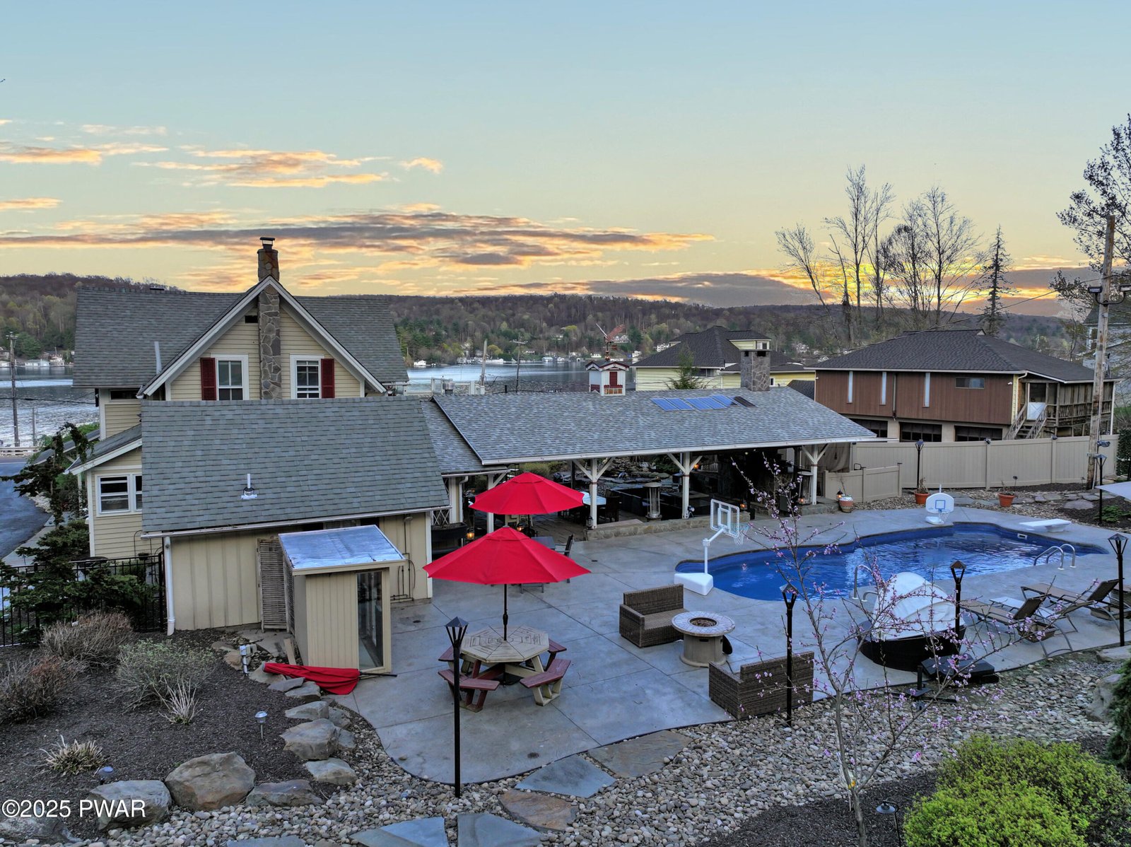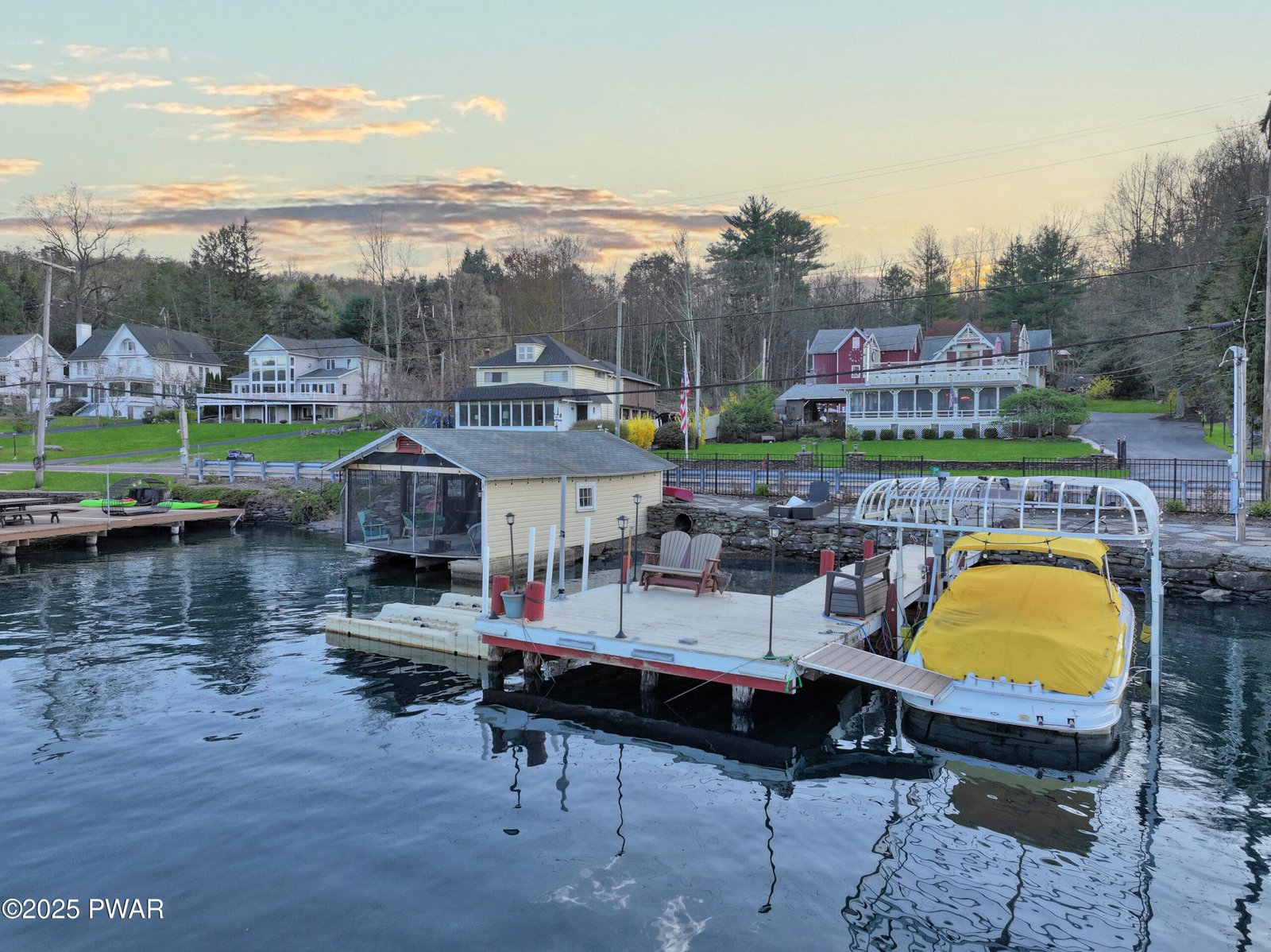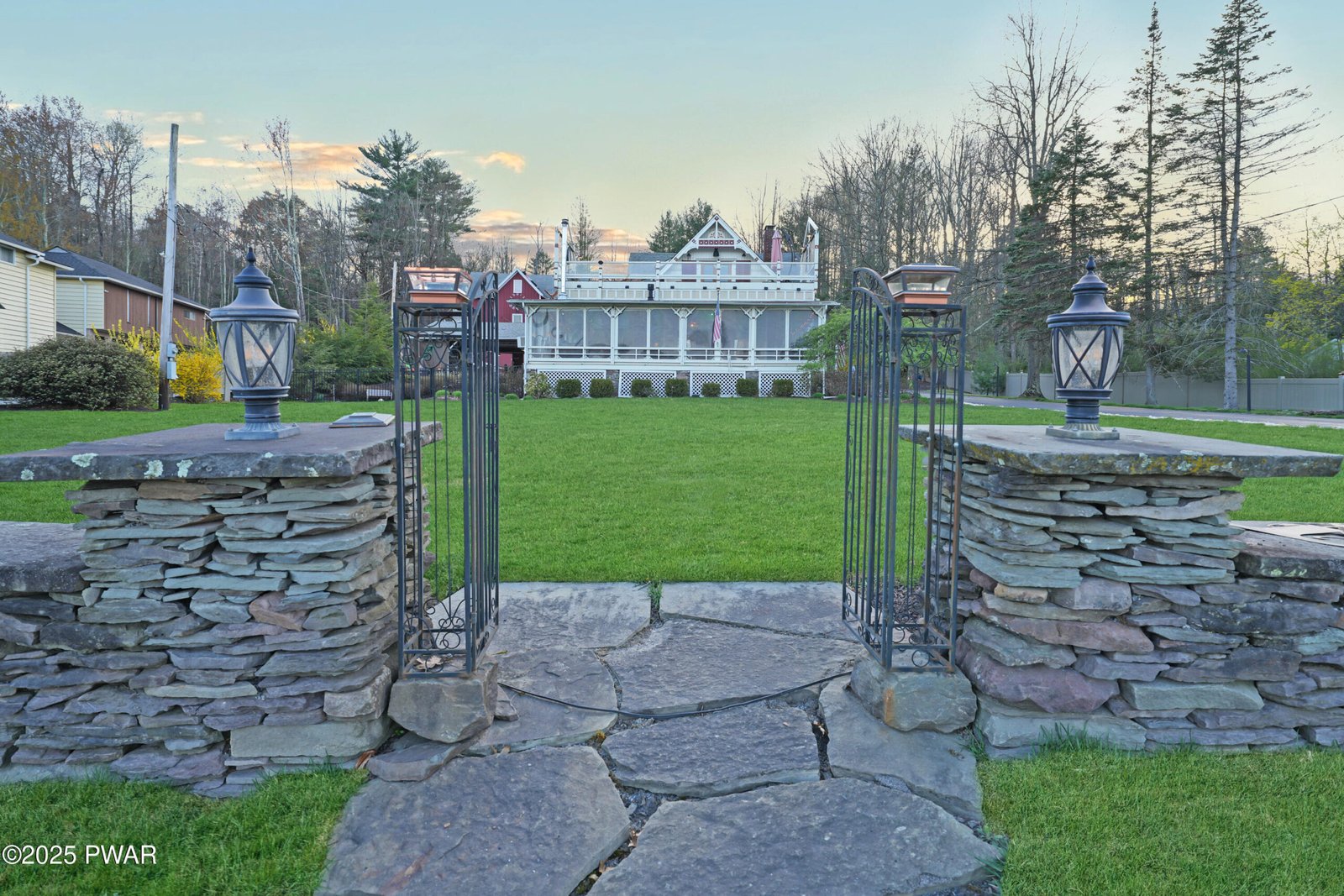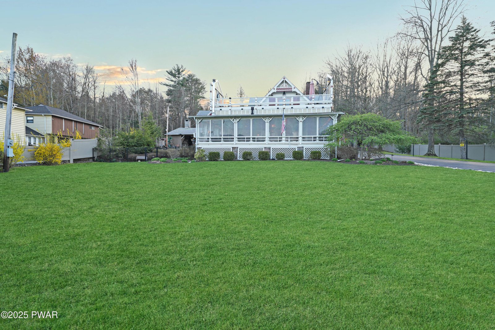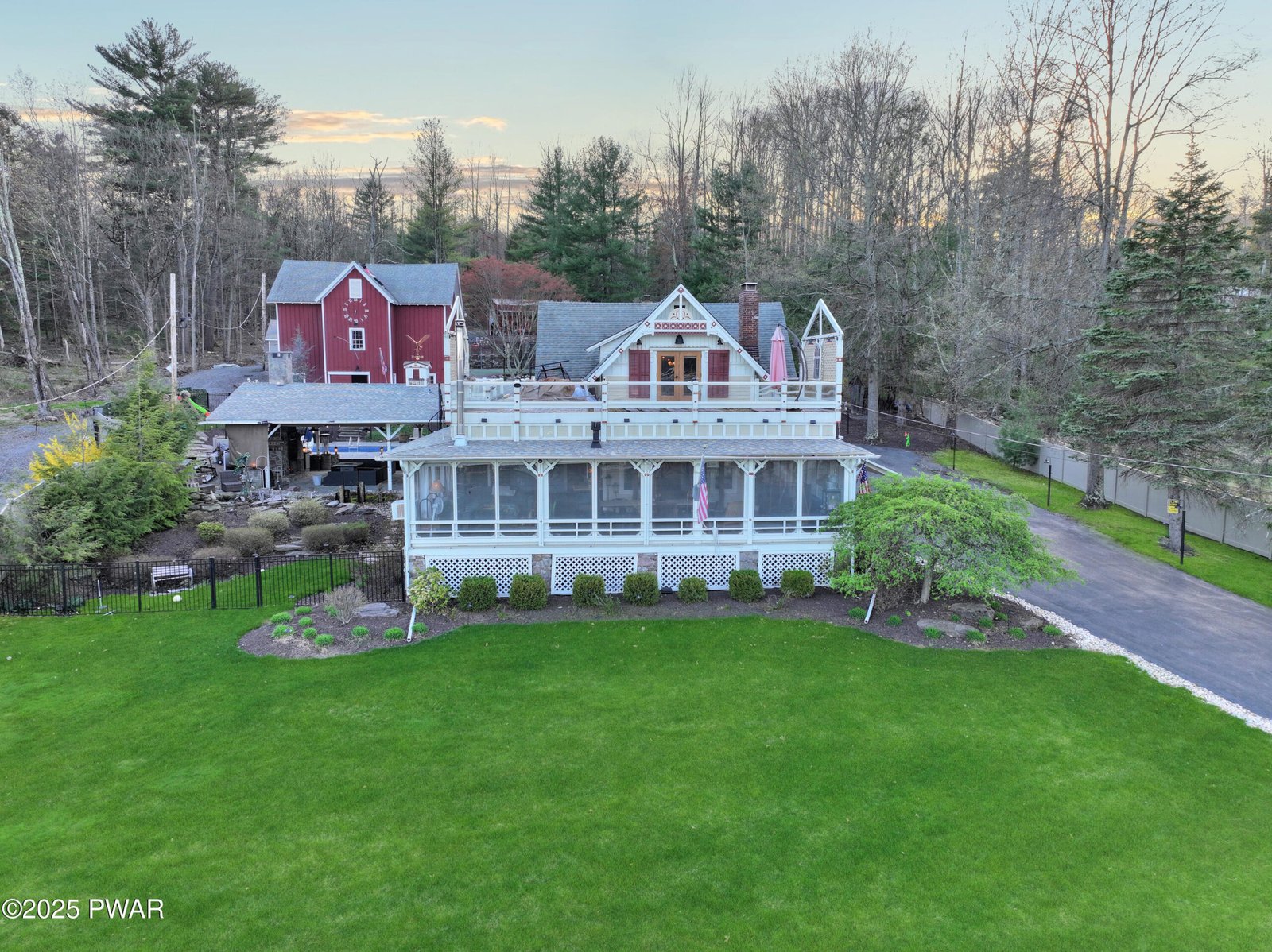 FULLY RESTORED TURNEY HISTORIC LAKEFRONT ESTATE ON 13+ ACRES, AND 145' OF WATERFRONT. A rare and iconic historic lakefront estate dating back to 1863. This grand property is one of the original lakefront homes in Harveys Lake. The main residence features 4 bedrooms and 3 bathrooms, including a spacious primary suite with a fireplace and private rooftop terrace. A chef's kitchen offers custom cabinetry, premium appliances, and a wood-burning stove, while the sunroom and heated/cooled porch provide stunning lake views year-round. The home also includes a private office with an attached full bath, original hardwood floors, mahogany doors, hand-laid slate and marble finishes, radiant heated floors, updated electrical and plumbing, Restoration Hardware vanities, and Tiffany lighting throughout. Outdoor amenities include a heated saltwater fiberglass pool with lighting, a spa-quality hot tub, a tranquil koi pond, and an outdoor kitchen beneath a custom pergola and slate patio, complete with a stone wood-burning fireplace. The grounds feature landscaped gardens, open lawns, walking trails, a basketball court, and several historic outbuildings including an 1892 stone barn, a 2-car garage/workshop with wood stove, an RV building, a restored well house, and multiple storage sheds. A fully fenced pool area and stone perimeter walls ensure both privacy and charm. Lakefront features include a private dock, a 3-slip boathouse, and a permit-ready site for future lakefront development, supported by a completed aquatic study. Modern infrastructure upgrades include new windows set in original frames, closed-cell foam insulation, a 3-phase electric system, a newer septic system, water filtration, sprinkler systems, a gravity-fed well, multiple fireplaces, a sauna, and a walkable attic with storage. Zoned Agricultural-Residential with no HOA, the property offers exceptional flexibility. A rare legacy estate where historic craftsmanship meets modern luxury at the water's edge!!