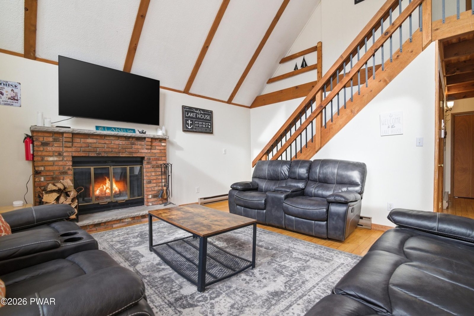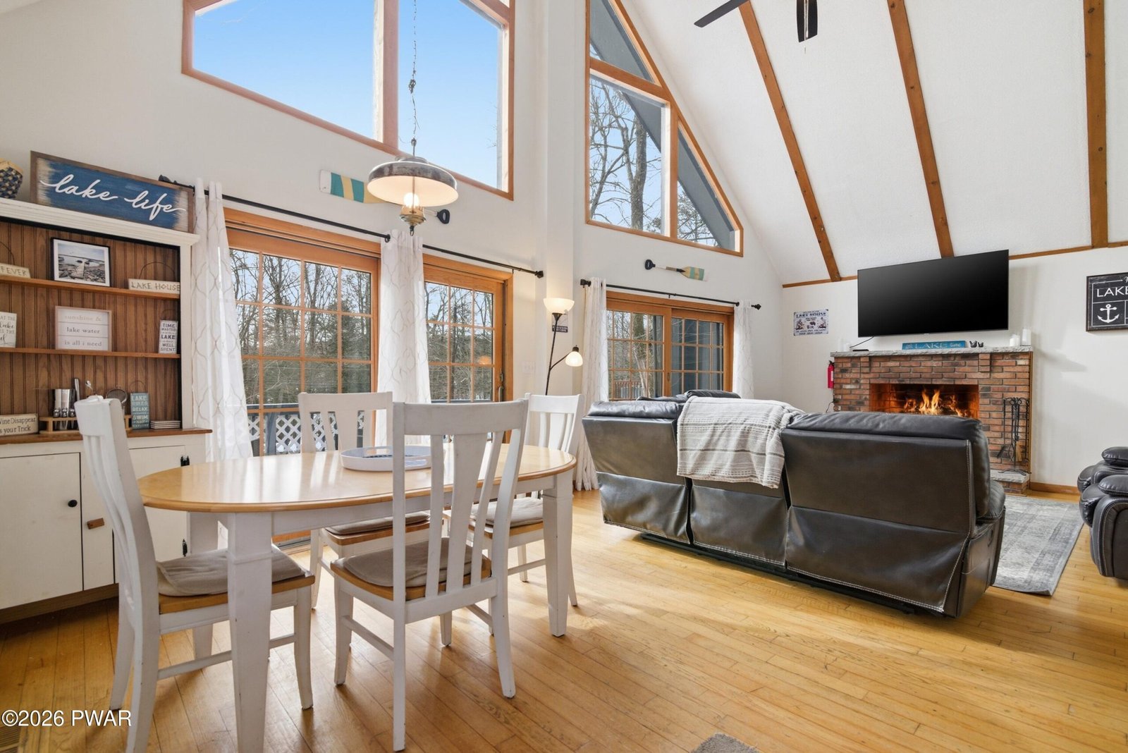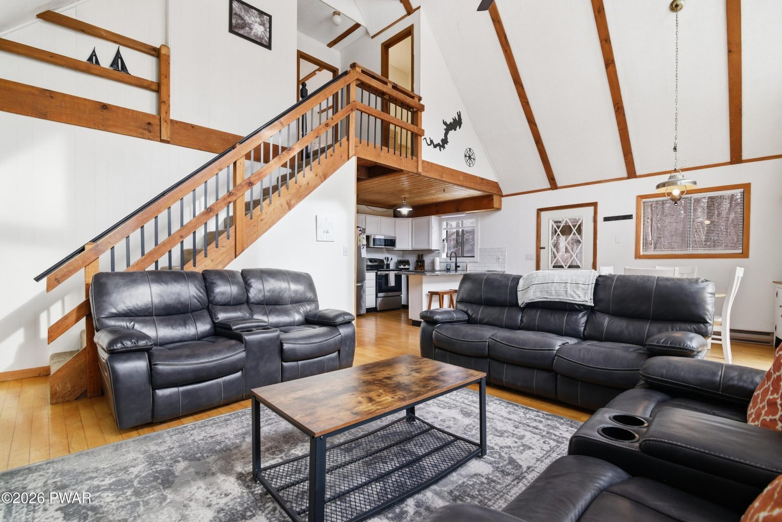 Welcome to this charming 4-bedroom, 2-bath chalet in The Hideout, an amenity-filled, four-season community in the Pocono Mountains. Ideally located in the sought-after ''Triangle,'' the home is less than a five-minute walk to the pool, lake, beach, pickleball courts, and ski area. Inside, the open floor plan features cathedral ceilings, hardwood floors, a tongue-and-groove ceiling accent, and a wood-burning fireplace as the focal point of the main living area, creating a warm space for year-round living, an investment property or a weekend escape. The remodeled kitchen features new countertops, backsplash, and stainless steel appliances. The lower level provides a rec room with new flooring, a new sliding door, and a pellet stove, offering an additional cozy gathering space. Enjoy a spacious deck overlooking the flat lot, plus a paved driveway with plenty of parking and a storage shed. Recent updates include a new roof and gutters (2022) and fresh paint. The Hideout offers endless amenities with multiple lakes and beaches, pools, golf course, indoor and outdoor sports complexes, tennis and basketball courts, restaurants, a tiki bar, ski hill, and a full calendar of community events, making it easy to enjoy every season--from summer boating to colorful fall days and winter fun.