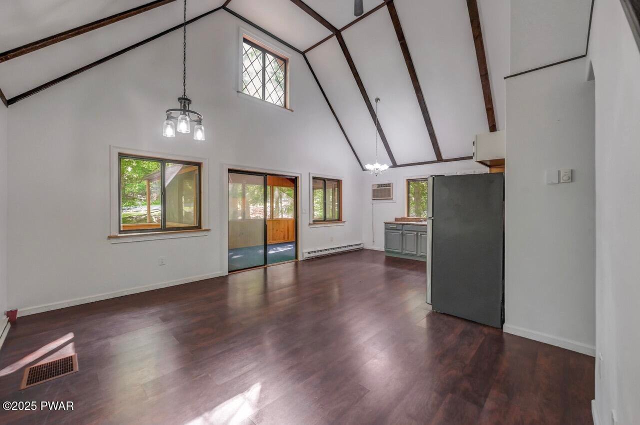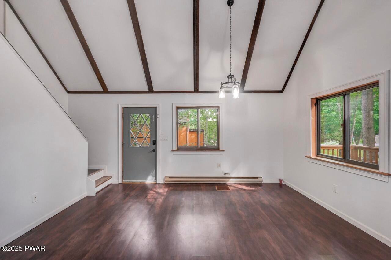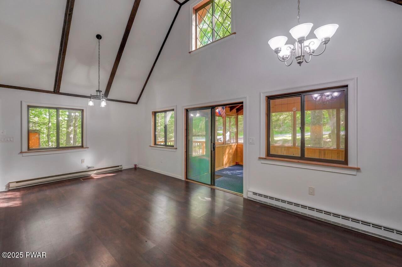 Chalet in the woods in the Northern Poconos, just over two hours from the NYC and Philadelphia areas. Located in an amenity-filled community called The Hideout, this beautiful home adjoins a 28-acre greenbelt for added privacy and a peaceful wooded backdrop. Enjoy the outdoors from the screened-in porch or the open deck overlooking the trees. Inside, the main living area features high ceilings, laminate flooring, and an updated kitchen with plenty of cabinet space. Two bedrooms and a full bath are conveniently located on the main level. Head upstairs to discover a private bedroom area. The beautifully finished lower level offers a spacious family room, an additional bedroom, another full bathroom, and more space to relax or entertain. All this in a premier four-season community with lakes, pools, beaches, golf, skiing, and more!