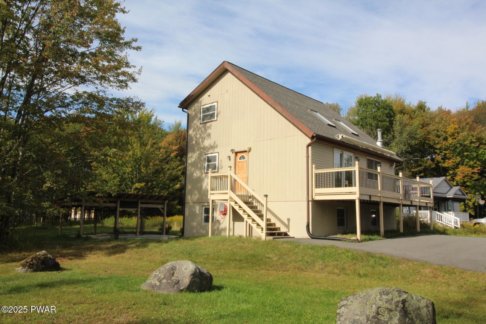 Contemporary Retreat with In-Law Suite & Premier Amenities in the Hideout- NE PA's premiere resort community. 3-bedroom, 3-bathroom contemporary home, ideally situated less than a mile from The Hideout's North Recreation area, you'll have access to the private pool, tennis and volleyball courts, as well as the 9-hole golf course, the Clubhouse, and the Indoor Sports Center.The main living area captivates with soaring cathedral ceilings and an open-concept design, anchored by a cozy, freestanding LP stove. The fully finished lower level offers exceptional versatility, featuring a second kitchen, a full bathroom, and its own LP fireplace--creating an ideal in-law suite, guest apartment, or entertainment hub.Step outside to your private oasis. The level, manicured backyard is an entertainer's dream, complete with an oversized gazebo for gatherings and a custom shed for storage. Bathed in full sun, it's a perfect canvas for any gardening enthusiast. Enjoy peaceful views of the neighboring farm from the front deck, which is graced by a retractable sun-setter awning.With ample paved parking and a prime location in the Northern Poconos--just two hours from both New York City and Philadelphia--this home is the ultimate four-season getaway.