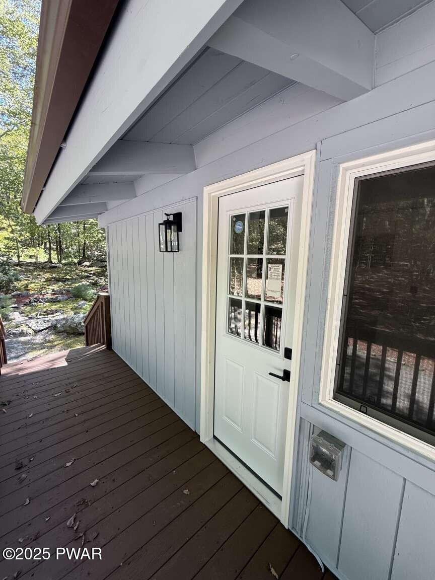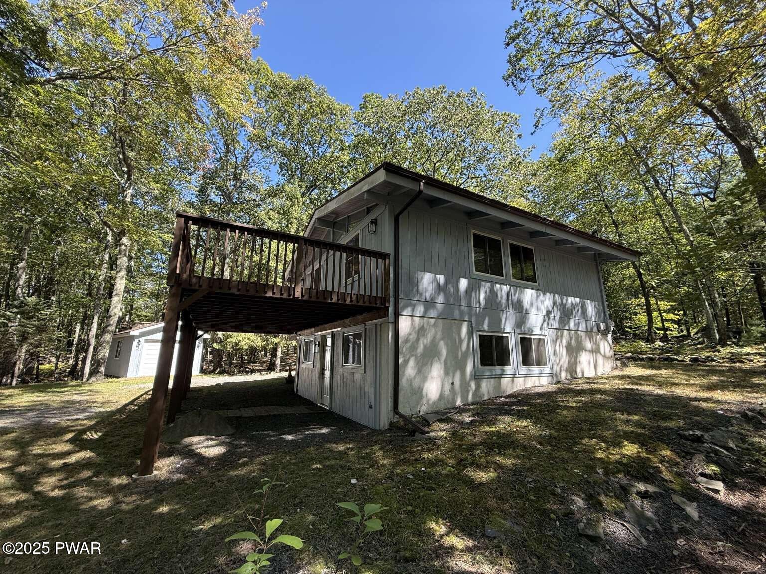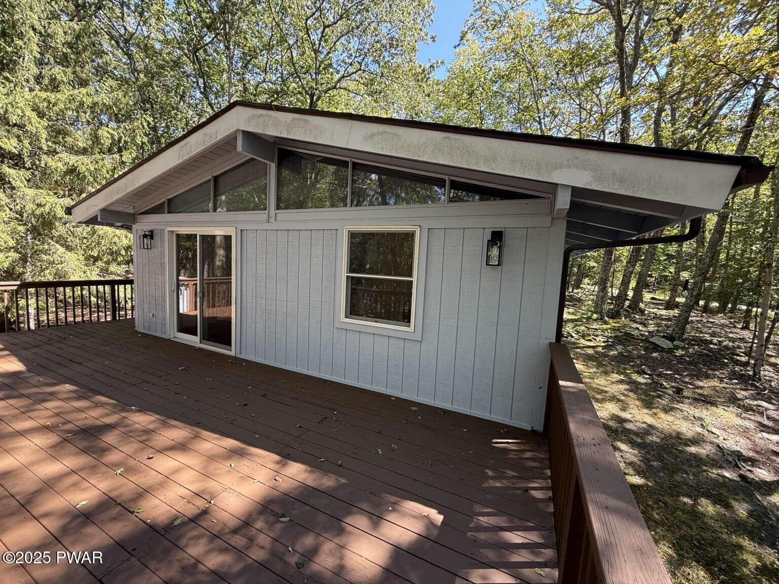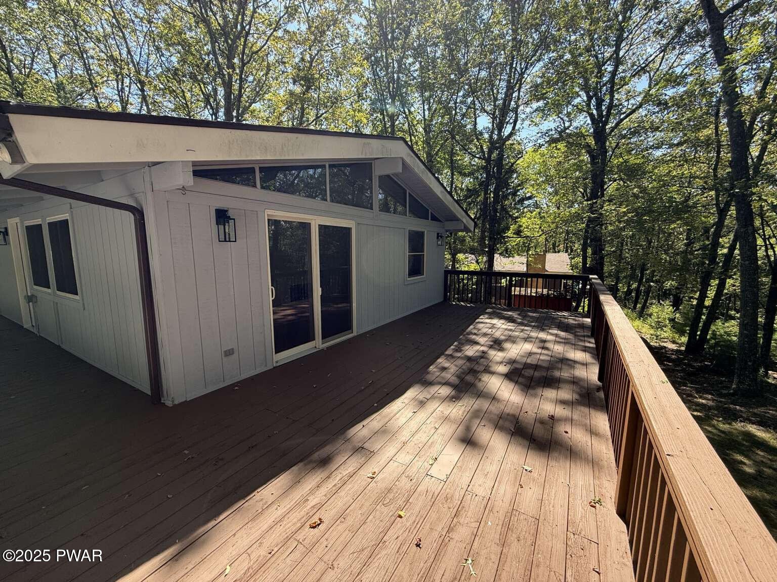 Your Poconos cabin awaits! Tastefully updated raised ranch located in amenity filled Hemlock Farms. Large lot, expansive deck and quiet setting make this a must see. Open, airy rooms with vaulted ceilings make the second level feel spacious yet cozy. Primary with half bath upstairs for convenience and two more beds and full bath on the first level. Clean, cute and affordable! Recent updates include: kitchen, bathrooms, flooring, lighting, fresh paint throughout, entry doors, AC/heat mini splits on each level, newer windows, one year old roof and more! Come make this classic charmer yours for the Fall/Winter seasons and many years to come.