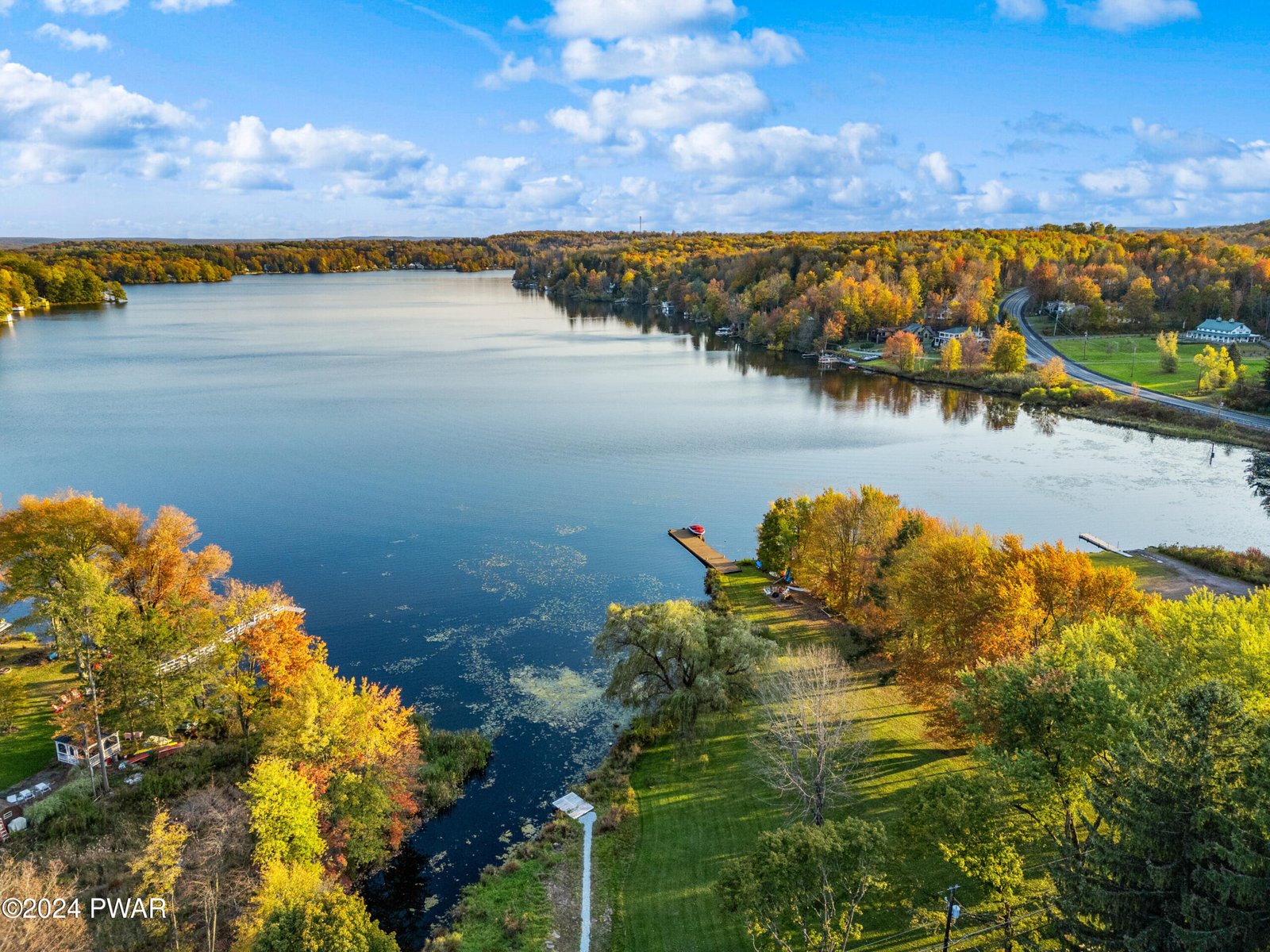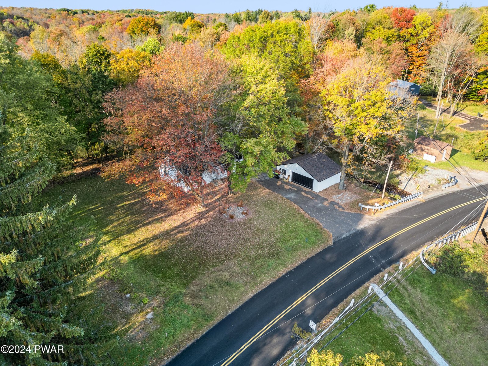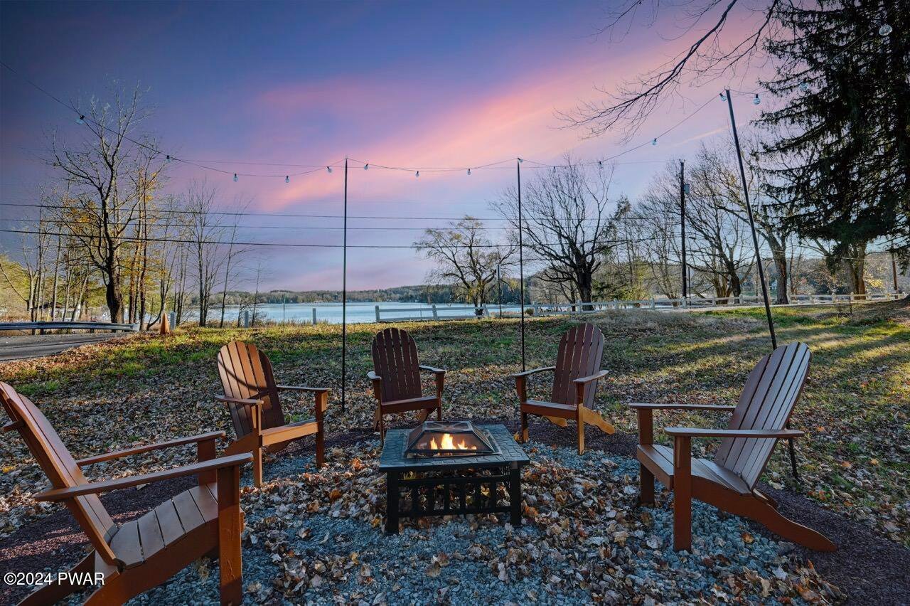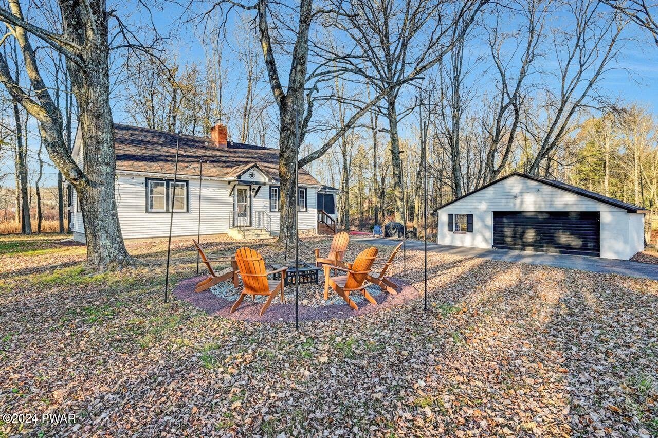 LAKE ARIEL LAKEFRONT with a private dock! Enjoy the charm and tranquility of life on beautiful and highly sought-after Lake Ariel, a natural powerboating lake known for its scenic setting and recreation. Set on a level lot of over an acre surrounded by mature evergreens, this updated property offers direct lake access and peaceful views. While powerboats cannot be launched directly from the dock, there is convenient nearby access just a stone's throw away for launching. Roof installed in 2023. STR friendly and approved.This turn-key home is offered fully furnished with tasteful dA(c)cor and a well-equipped kitchen, ready for immediate enjoyment or rental potential. The spacious detached garage doubles as a fantastic game and recreation space with a pool table, foosball table, dartboard, and projector for movie nights. Outdoors, enjoy corn hole, croquet, badminton, and a firepit for relaxing evenings by the lake.Inside, the home features a unique layout with modern updates and classic lake-house character. The living room showcases knotty pine walls, hardwood flooring, and a beautiful stone fireplace. Two bedrooms are located on the main level, while the upper level provides additional sleeping space with a classic retreat feel.A newly finished sunroom off the kitchen creates a bright second living area, perfect for relaxing and enjoying lake views year-round.With roots dating back to the late 1800s, Lake Ariel has long been a cherished escape. This well-maintained lakefront property offers a rare opportunity to enjoy it for years to come.