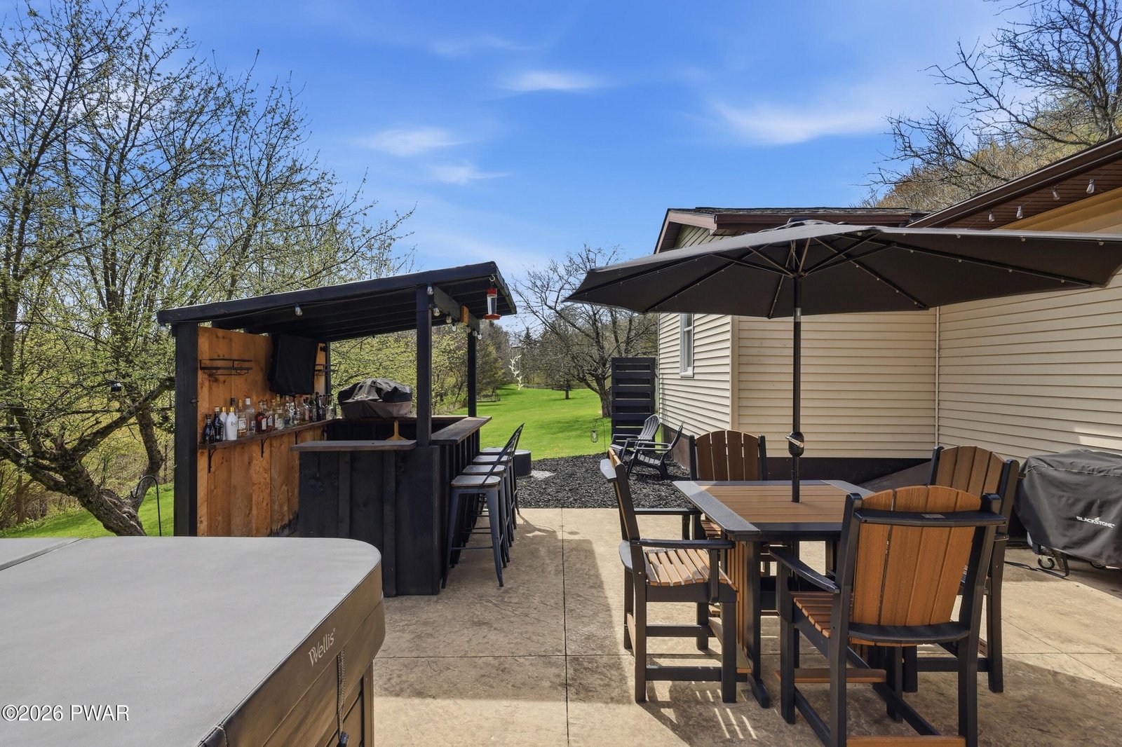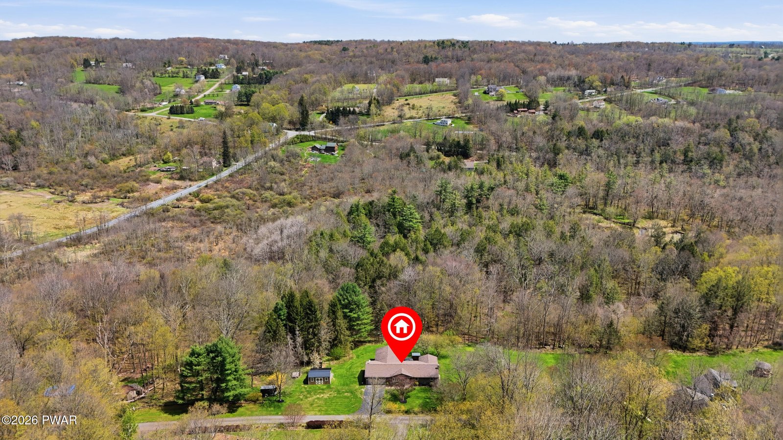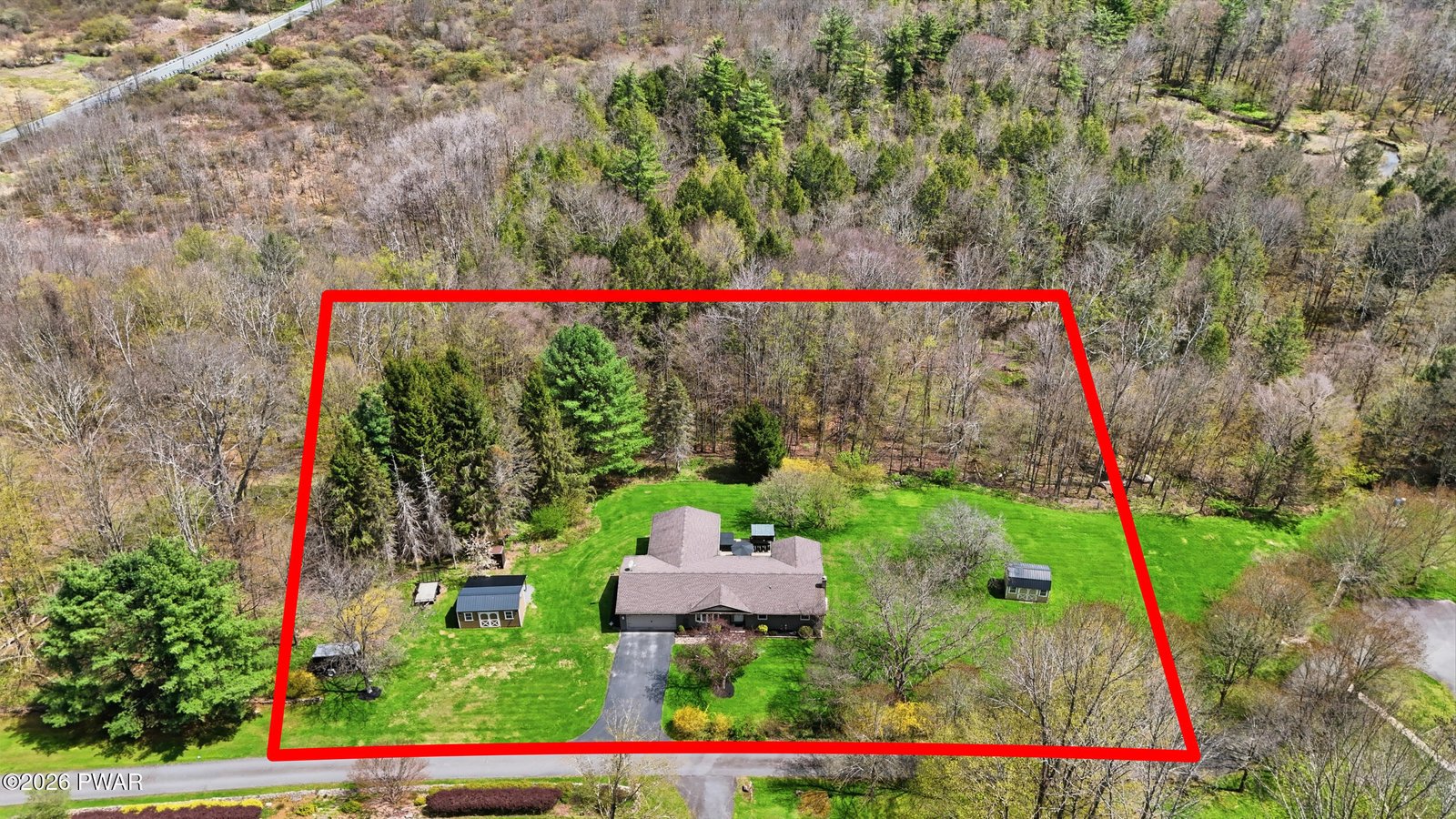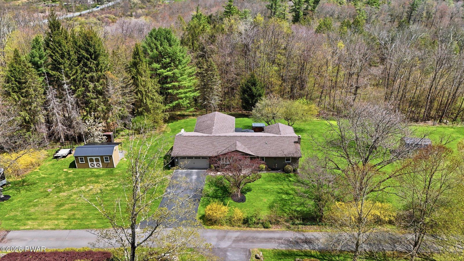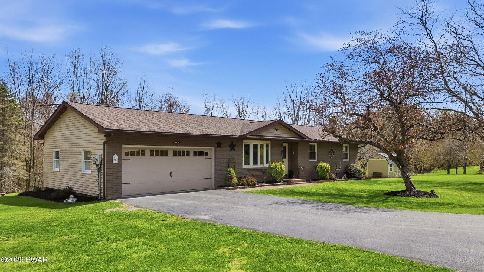 Step into a home that feels virtually brand new, showcasing immaculate condition, refined design, and high-end finishes throughout. This beautifully appointed brick ranch offers true single-level living on over an acre in desirable Cherry Ridge Township, highlighted by a stunning primary suite with a spa-inspired walk-in tiled double shower. Located just 4 miles to Honesdale's Main Street and 3 miles to the Wayne Highlands School District, with easy access to Owego Turnpike and Lake Wallenpaupack, this property blends privacy with convenience. The thoughtfully designed layout features hardwood flooring through the main living areas and a seamless, open flow. The updated granite kitchen with bar seating connects directly to the patio, creating an easy indoor-outdoor lifestyle. The expansive family room is a true focal point, featuring soaring vaulted ceilings and an incredible floor-to-ceiling stone propane fireplace, offering a warm yet impressive space large enough for everyone to gather, with double doors leading to the oversized stamped concrete patio complete with built-in bar, hot tub, and fire pit for private outdoor entertaining. The finished lower level provides additional living space, a bedroom area, and abundant storage, adding flexibility. A heated workshop, separate storage shed, and oversized attached two-car garage complete this move-in ready property offering comfort, style, and functionality in a prime location. This is an impressive home in the perfect location! Don't miss it!