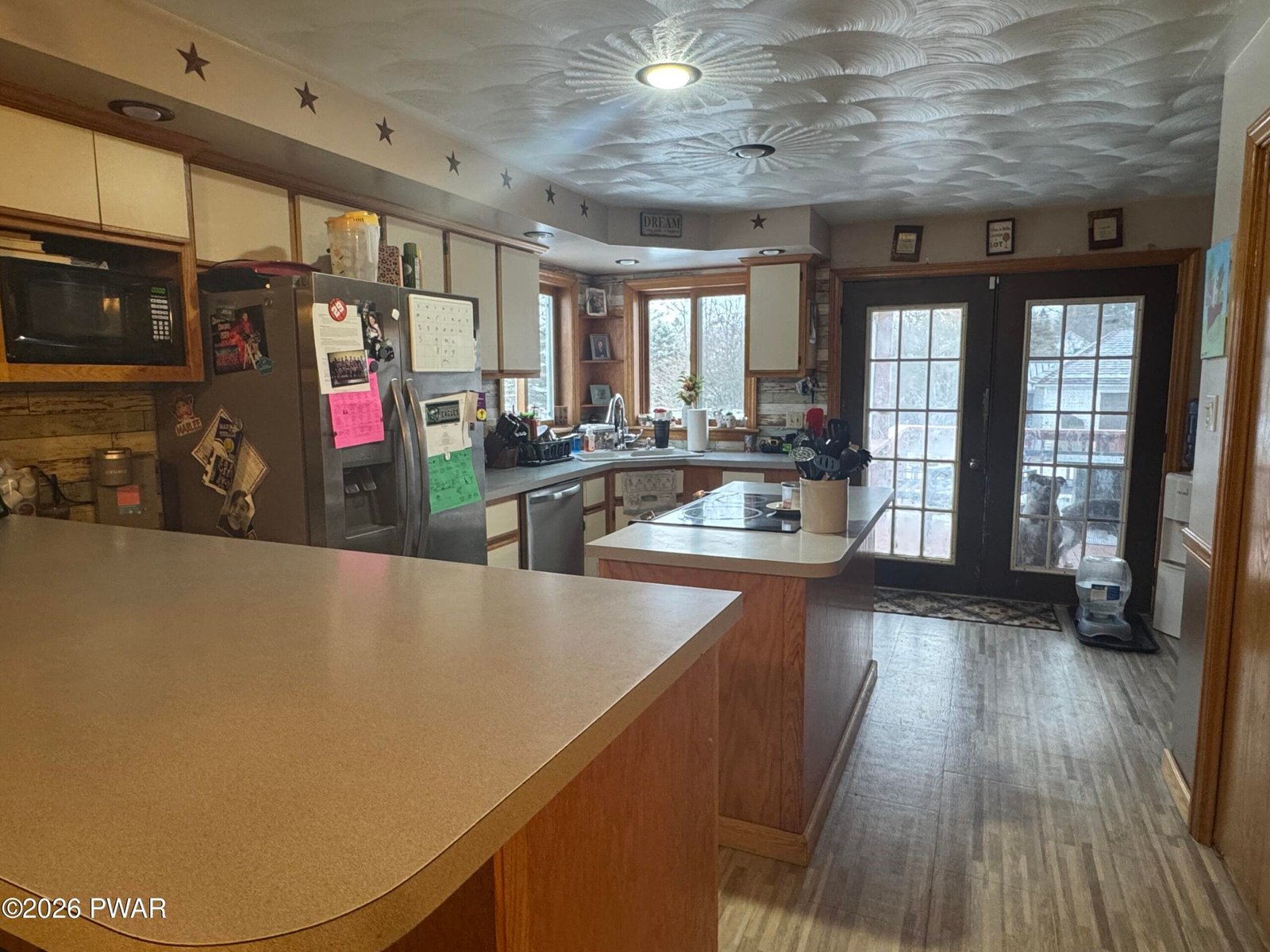 This contemporary 4-bedroom, 2-bath home blends clean modern design with everyday functionality and room to grow.Step inside to an open-concept layout with natural light, neutral tones, and thoughtfully designed living spaces perfect for both relaxing and entertaining. The spacious kitchen flows seamlessly into the dining and living areas, offering ample cabinetry, modern fixtures, and generous counter space ideal for gatherings.The second level provides a large master bedroom with double closets, a well-appointed full bath, while three additional bedrooms offer flexibility for guests, a home office, or growing needs. A second full bathroom is centrally located on the main level for convenience.Out back, you'll find a standout outdoor living space; a large rear deck that is partially covered, allowing you to enjoy shade on sunny days and shelter during light rain. The deck overlooks a stamped concrete pad, perfect for a fire pit area, outdoor dining, or additional seating. Whether hosting summer barbecues or enjoying a quiet evening outdoors, this backyard setup offers versatility and style. Back yard is fully fenced in and ready for the kids, pets or a pool!Additional features include paved off-street parking for convenience and peace of mind, plus a full basement with excellent potential for finishing. With the right vision, the lower level could easily become an office, home gym, media space, or in-law suite; adding both livable square footage and long-term value.Updated design, outdoor functionality, and expansion potential make this home a smart and stylish choice.