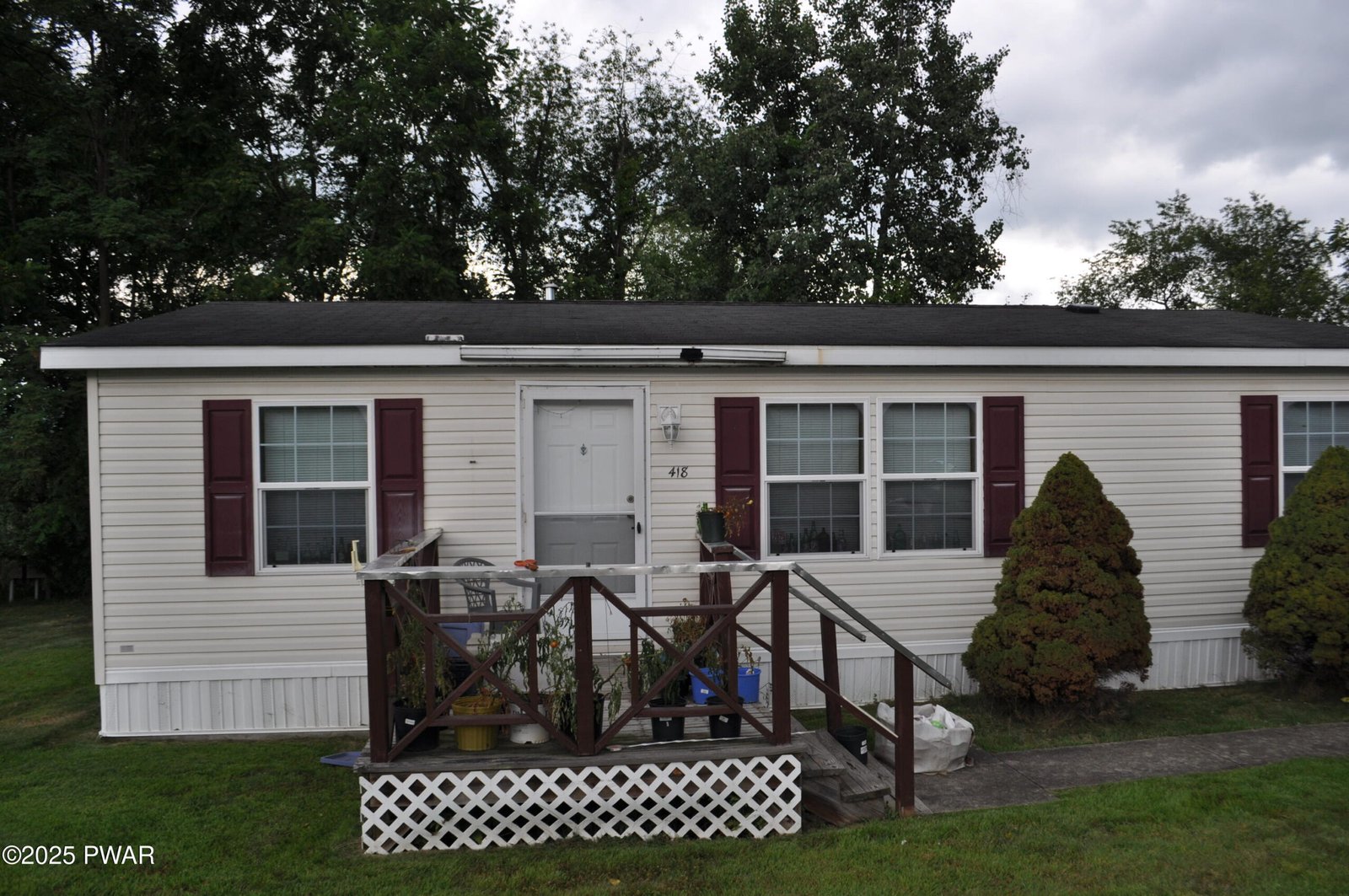Welcome to 418 Upper West Drive, Inkerman, PA. This well-kept 2004 double-wide offers 3 bedrooms, 2 bathrooms, and 1,380 sq. ft. of living space. The home features central air, a master bedroom with private bath, a semi-modern kitchen, and an open layout with plenty of natural light.Located in the Heather Highlands community, this property is situated on leased land, providing affordable living with convenient access to schools, shopping, and major roadways. Included with the home are a washer, dryer, and dishwasher.Lot is rented at $611/mo.