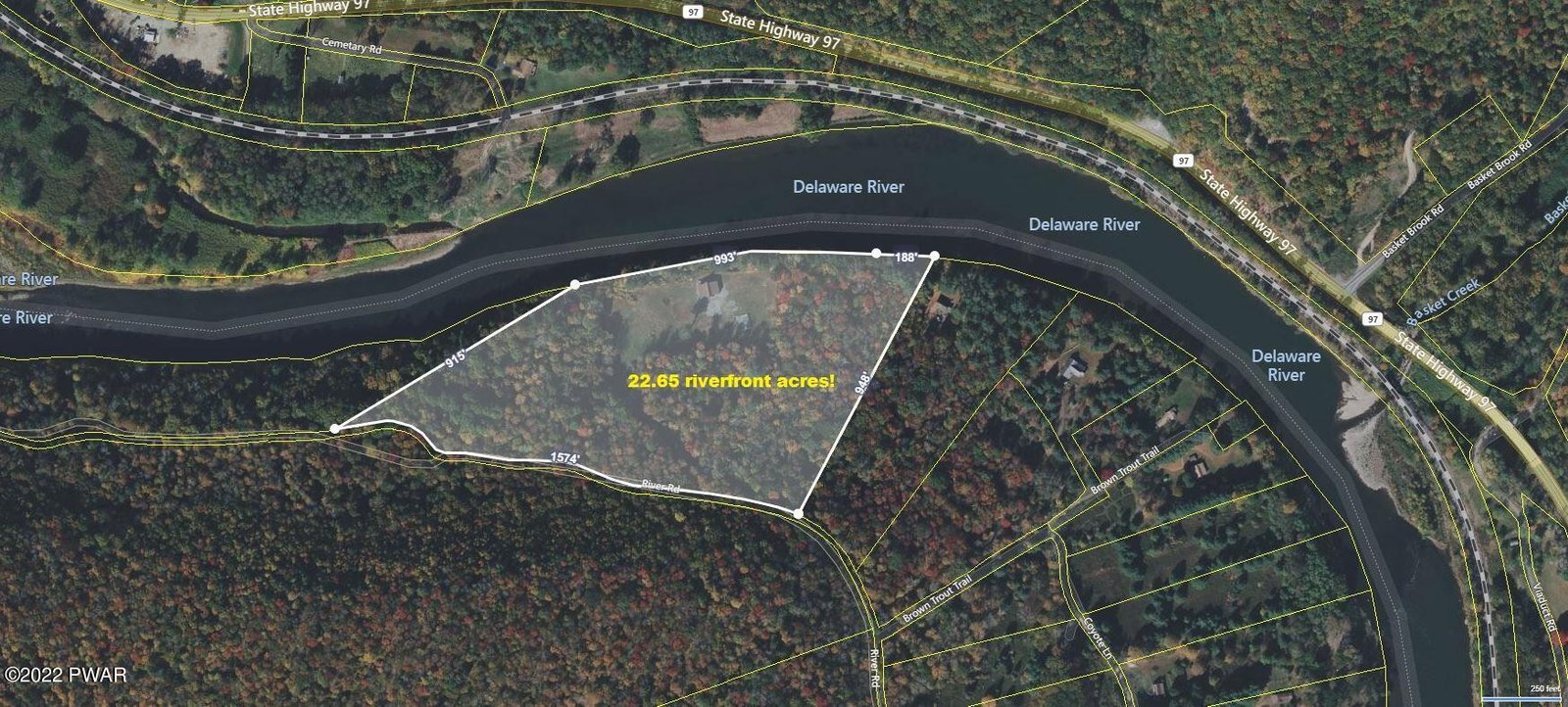 MODERN RIVERFRONT CHALET ON 22+ ACRES ALONG PENNSYLVANIA'S ''RIVER OF THE YEAR''!Experience a setting like no other! This stunning Beaver Mountain home sits high above the Wild & Scenic Upper Delaware River on 22.65 acres, boasting over 1,100 feet of pristine, private river frontage. Recently honored as Pennsylvania's River of the Year, the Delaware offers unmatched beauty, recreation, and wildlife right outside your door. Designed for both comfort and grandeur, the home features soaring 26' cathedral ceilings, in-floor heat, 3-4 bedrooms plus a loft, and 3 baths. Originally started around 2015, the structure is nearly complete -- it just awaits your personal touches - systems are in and functioning, drywall is primed, and it's ready for you to add the final finishes to match your style. Whether you envision a modern riverfront retreat, a year-round escape, or an outdoor lover's paradise, this property delivers it all. Kayak, fish, or simply soak in the incredible views from your own private stretch of river.