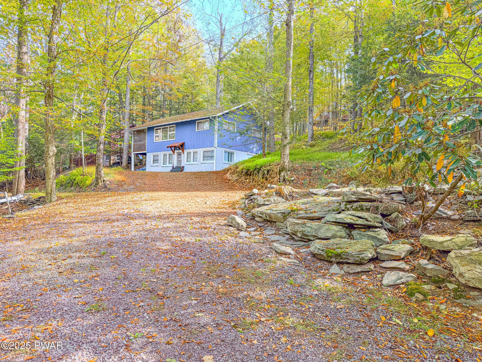 LAKEFRONT LIVING IN MARTINS COVE - CUSTOM 3-BEDROOM RETREAT ON LAKE WALLENPAUPACK...Discover the perfect blend of rustic charm and modern comfort in this beautifully crafted, custom-built lakefront home located in one of the most desirable coves on Lake Wallenpaupack! Offering 80 feet of prime lake frontage with panoramic views at the water's edge, and a very easy walk to the water. Sweetly nestled on a quiet, private road, this 3-bedroom, 3-bathroom home is ideal for peaceful year-round lake-life living or as the perfect vacation destination.Step inside to the open floor plan featuring kitchen w/ breakfast bar, open dining area, living room, main level lake view bedroom, main level bath. Gorgeous, soaring cedar T&G cathedral ceilings bring warmth and character, while the stunning floor to ceiling stone, wood-burning fireplace anchors the main living area - a perfect space for cozy evenings after a day on the lake.You can enjoy the views from two expansive lakefront decks, ideal for relaxing or entertaining. The home spans three finished levels, including a bath on each floor, providing ample space for family and guests, and includes central air for year-round comfort. With its peaceful setting, easy lake access, and timeless craftsmanship, this special lakefront gem offers the ultimate in lakeside living! Close to all local Poconos activities including snow & water skiing, hiking, rivers, trails, dining, shopping, & sight-seeing.