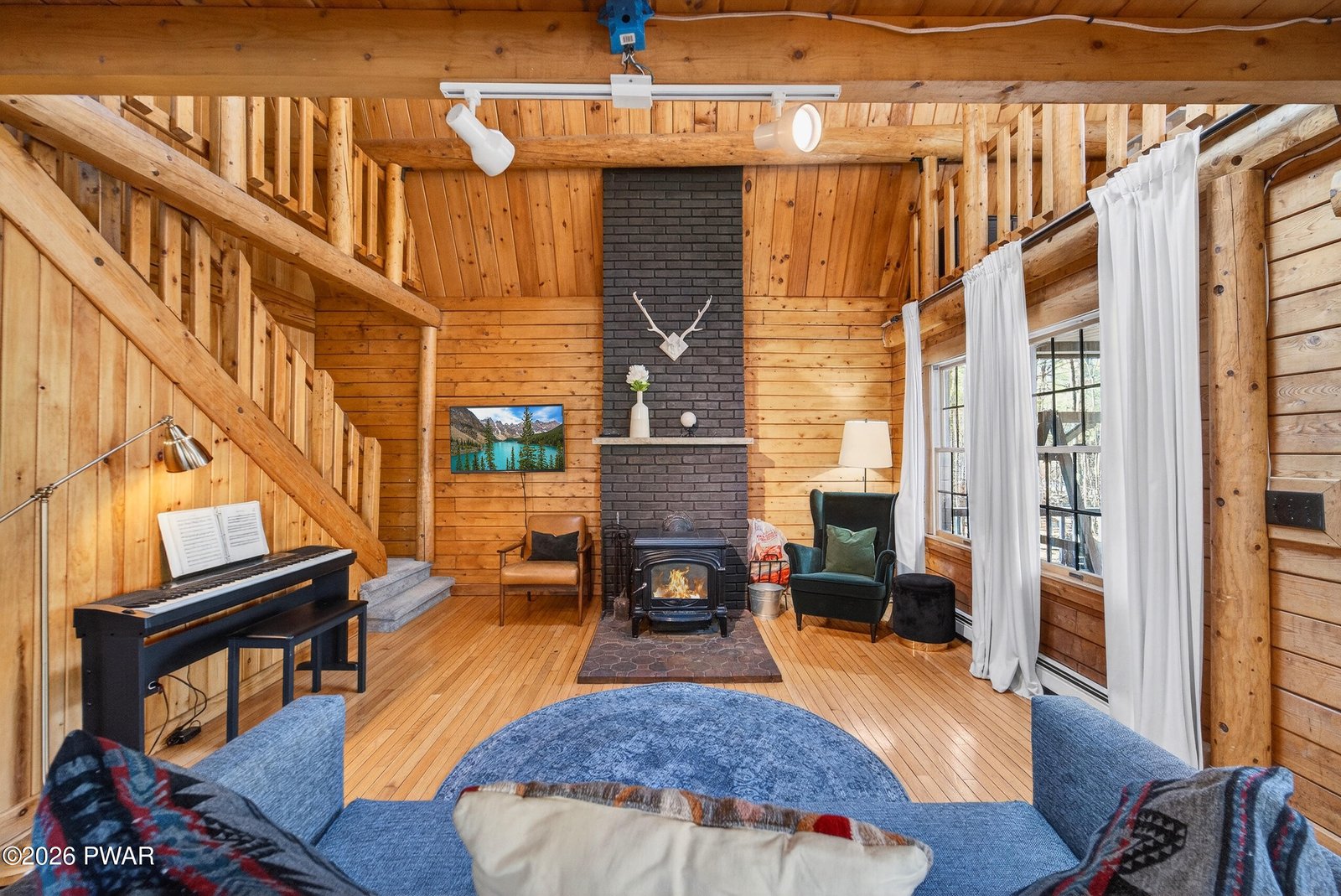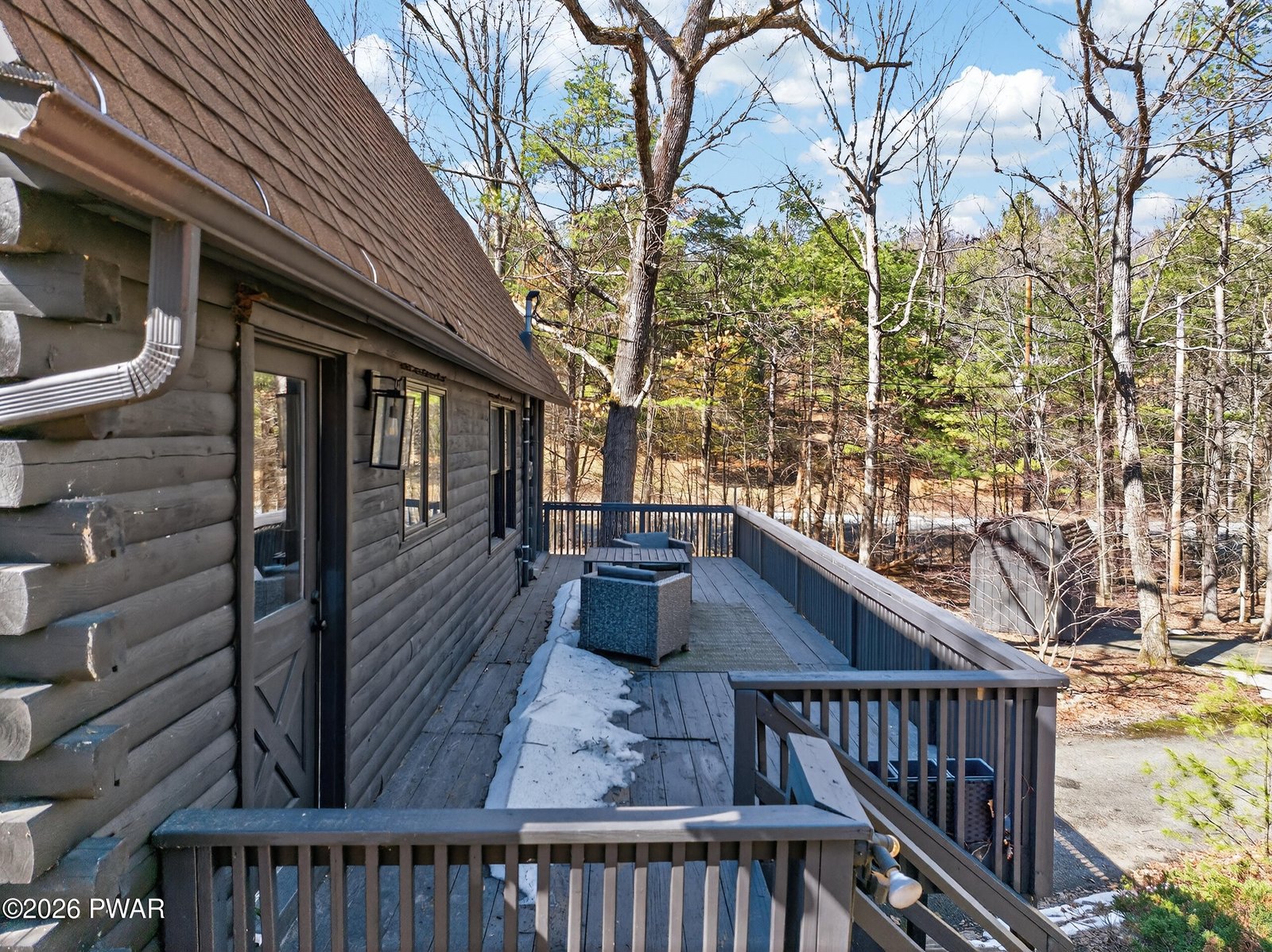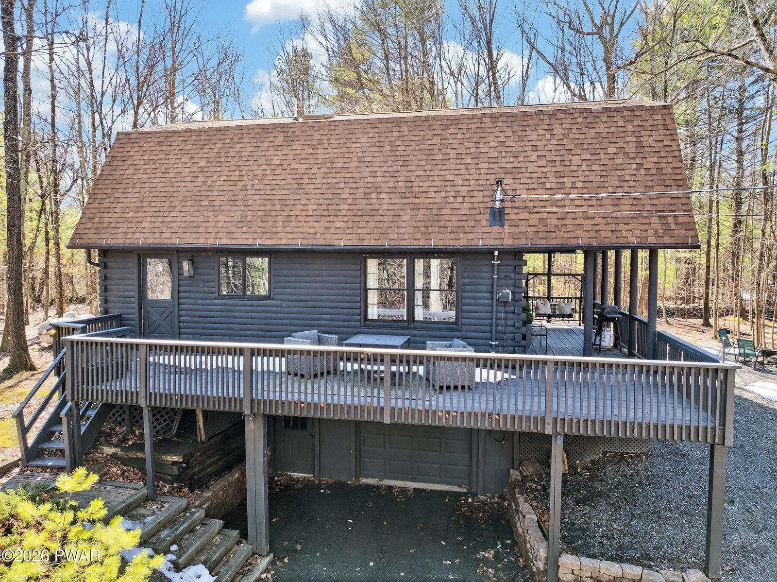 NEW LISTING!! OPEN HOUSE, SATURDAY 12-2PM!!!A RARE POCONO RETREAT! Striking Contemporary Log Home on a Private Acre Just Minutes from Milford! Nestled on a peaceful 1-acre lot with no HOA, this gorgeous contemporary true log home blends rustic character with modern comfort just minutes from downtown Milford. Offering 3 bedrooms, 2 full baths, and just under 2,000 heated square feet above grade, the home showcases soaring cathedral ceilings, dramatic log exposure, and warm natural wood throughout. The inviting living space is anchored by a charming wood-burning stove that adds both ambiance and additional heat, while newer carpet installed last summer and a newer dishwasher provide modern updates. The main level features a convenient bedroom and full bath, while upstairs you'll find two beautiful bedrooms with stunning wood ceilings connected by an eye-catching catwalk overlooking the great room below. The catwalk leads to a versatile loft sanctuary with views of the lower level--perfect for guest sleeping space, a home office, reading nook, or workout area. Outdoor living is equally inviting with a large deck ideal for grilling and entertaining, a classic covered front porch perfect for rocking chairs and fresh country air, and a beautiful backyard surrounded by nature. Additional highlights include a one-car garage, unfinished basement offering excellent storage or future expansion, a shed, and low taxes under $4,600. Located minutes from Milford's charming shops, restaurants, and vibrant arts scene, with easy access to hiking, waterfalls, and outdoor recreation in the nearby Delaware Water Gap. Enjoy the best of Pocono living just 90 minutes from New York City.