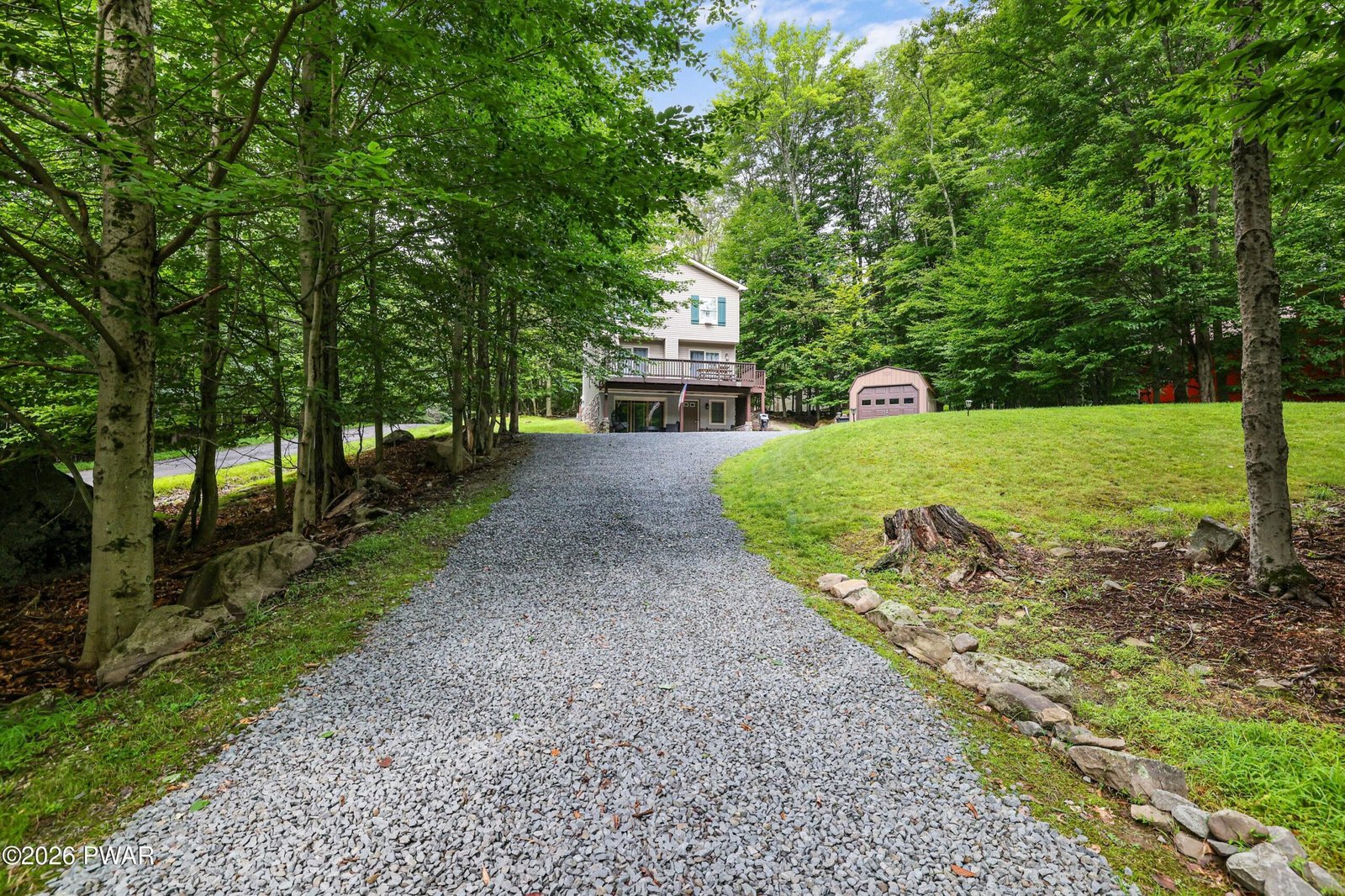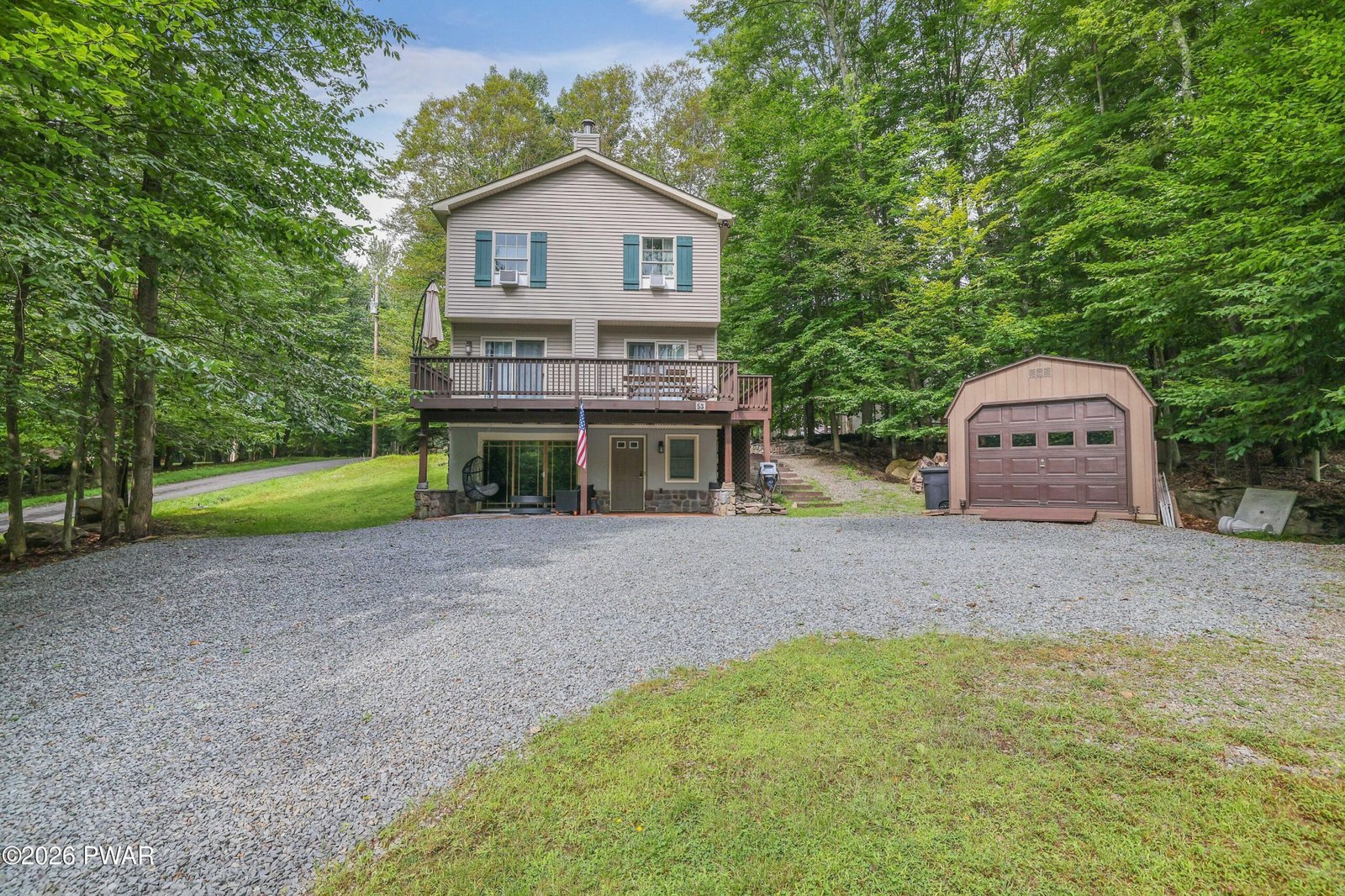 Indian Rocks Community at Lake Wallenpaupack! Charming Chalet completely updated and move in ready! Featuring an open concept floor plan with all the upgrades including a spacious kitchen with breakfast bar, Dining area and a living area with an efficient Tulikivi soapstone whole home radiant heat wood fireplace as the focal point of the open concept floor plan. The second level has 3 bedrooms including a Primary Suite with a private balcony and luxurious primary bath featuring double sinks and over sized shower with glass doors. The additional two (2) guest rooms and main bath complete the second level. The fun begins in the lower-level family Room with a bar, built in cubby for the little ones, 1/2 bath and a patio featuring a sitting area with fire pit. There is spacious decking and several outdoor patio areas featuring fire pits and at the rear of the property a hot tub for relaxing after a day at the beach or a day boating on Lake Wallenpaupack. This is a must-see property for those looking to have a weekend getaway at the lake or a full time home where you can enjoy all the amenities this property has to offer!Shed for storage
