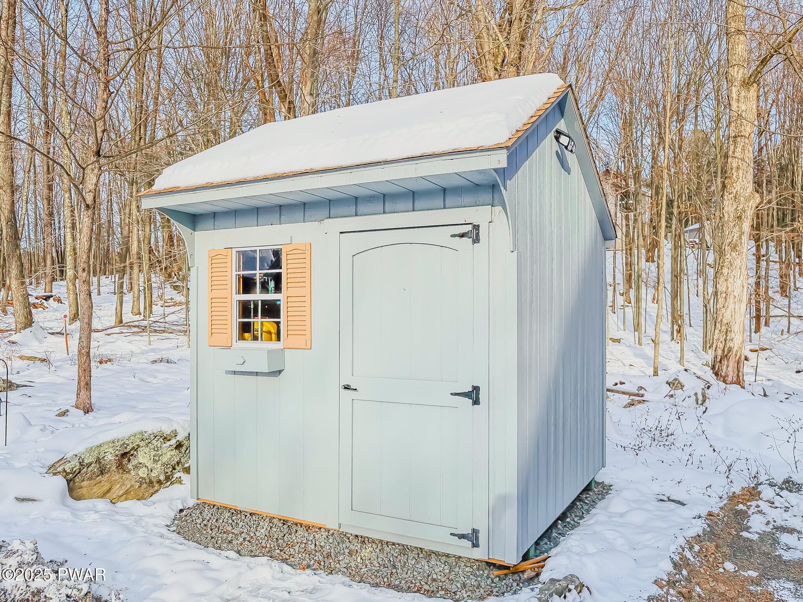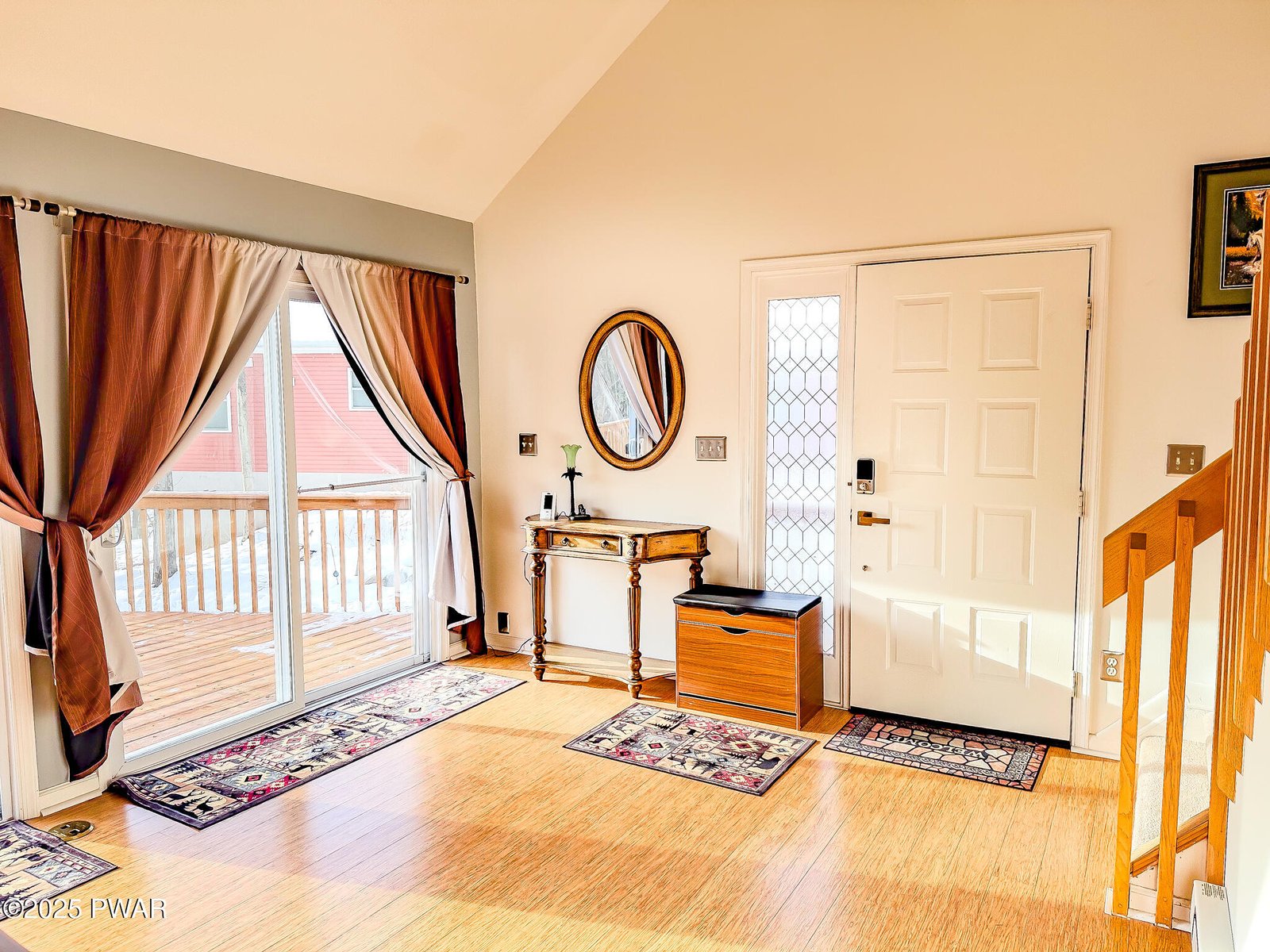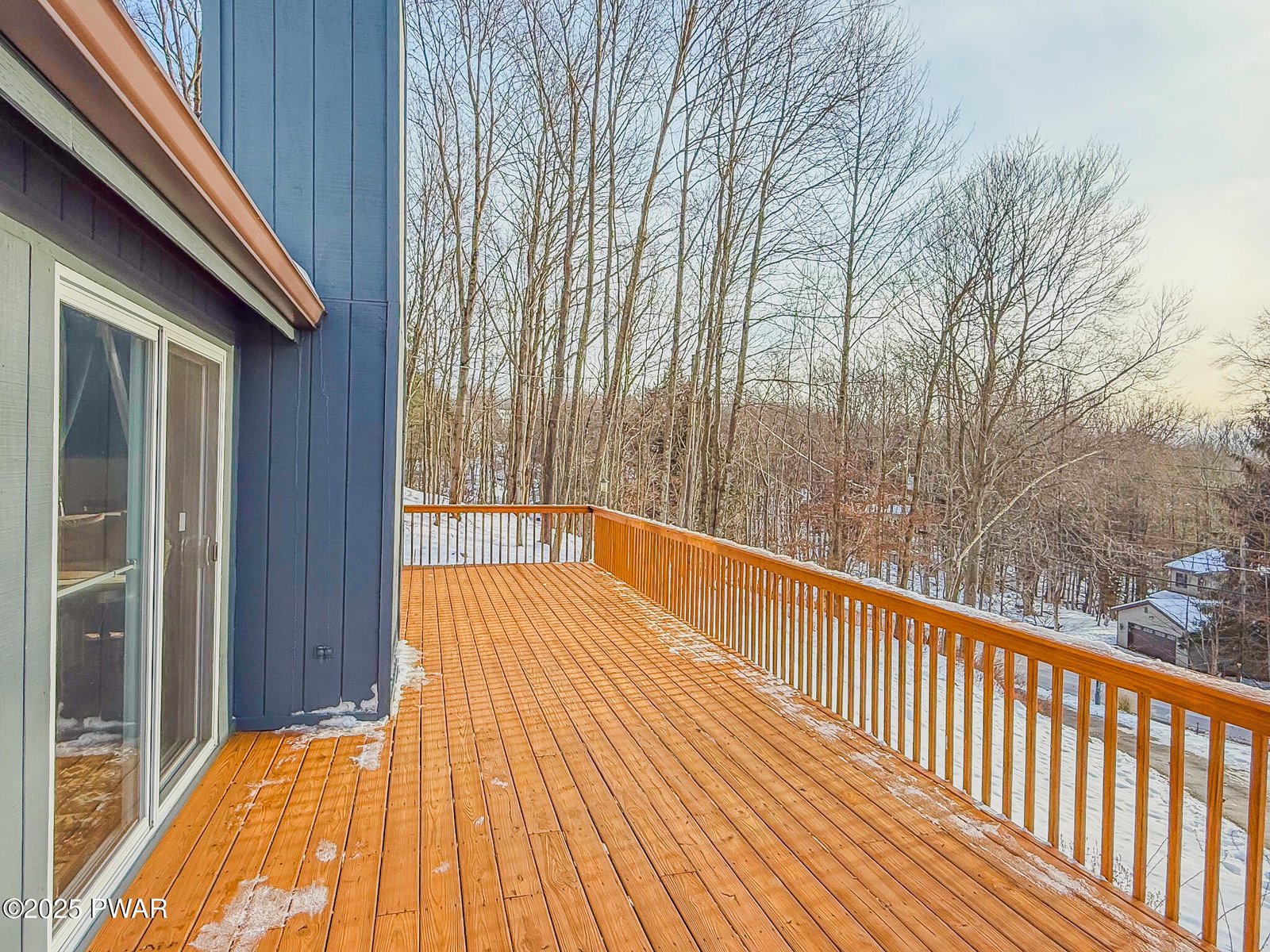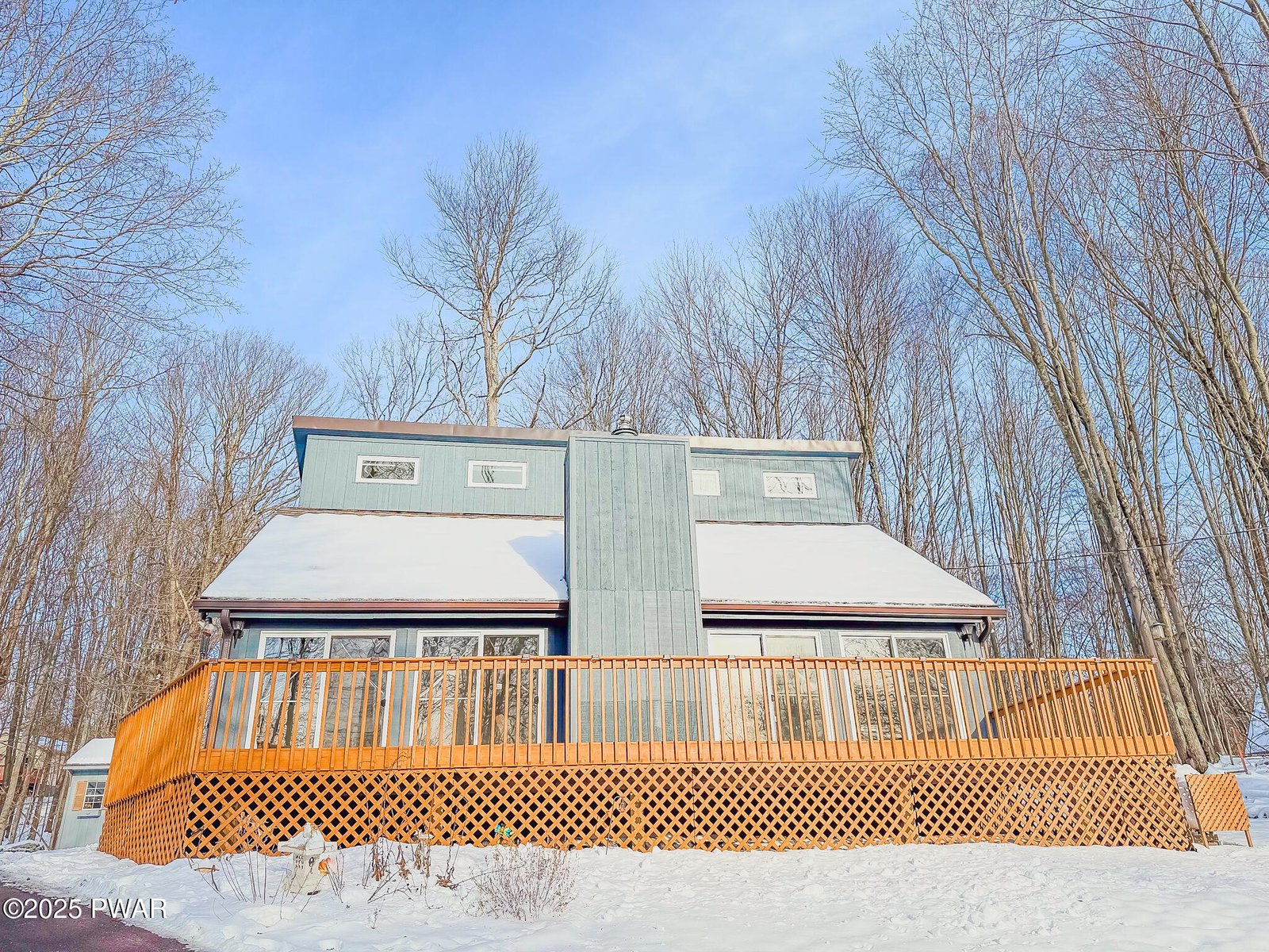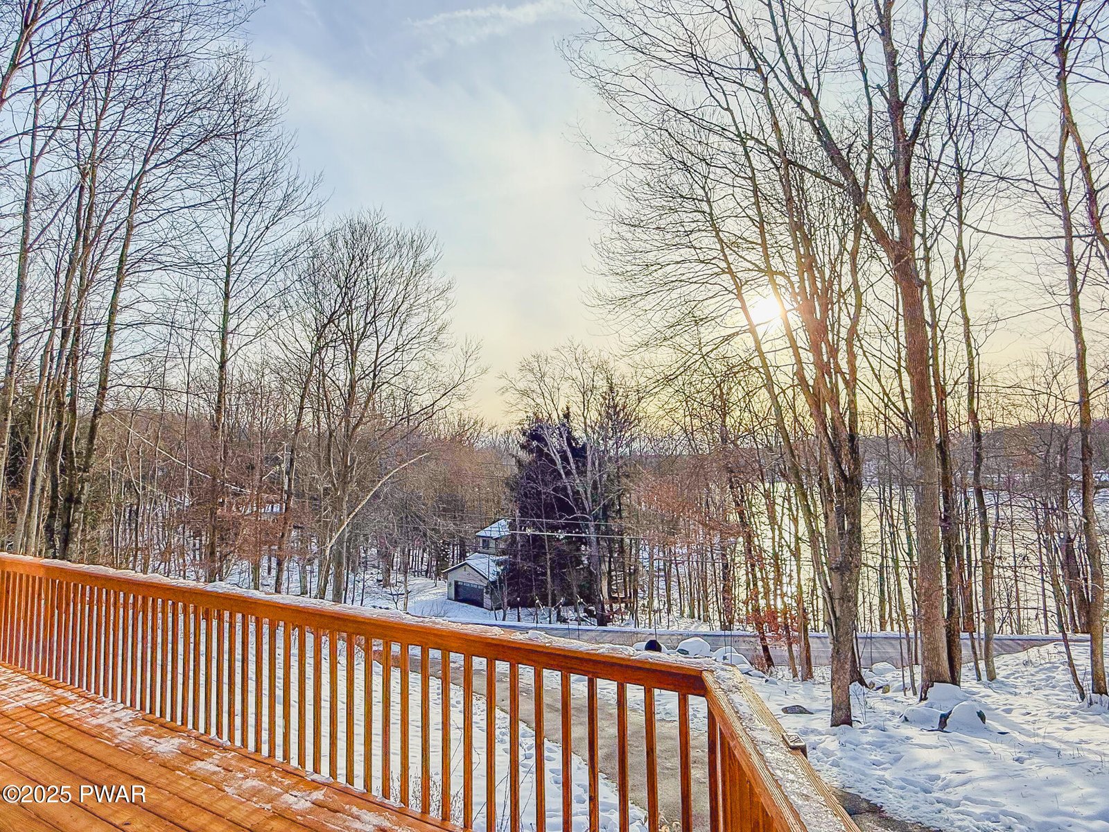 Contemporary Lake View Home in The Hideout - Poconos Private CommunityExperience lake view living in this lovely contemporary-style home overlooking the serene Roamingwood Lake, nestled in the prestigious Hideout community of the Poconos. Situated within a private, gated community, this property offers access to full four-season amenities, ensuring there's something for everyone to enjoy year-round.Key Features: Spacious Open Concept: Featuring an open floor plan w/ soaring cathedral vaulted ceilings, this home blends cozy elegance w/ a relaxed, airy atmosphere. The great room w/ a propane fireplace provides a warm, welcoming space for family gatherings or quiet nights in. Breathtaking Lake Views: The extra-large, wall-to-wall deck offers beautiful views of the water, perfect for watching spectacular sunsets over Roamingwood Lake. Whether you're sipping morning coffee or enjoying evening cocktails, the scenery is sure to impress. Kitchen & Dining: The eat-in kitchen is designed w/ convenience in mind, offering a breakfast bar for casual dining & ample counter space for all your culinary needs. Oversized Bedrooms: True retreat style rooms, featuring vaulted ceilings & new custom SOLAR POWER shades adding an element of modern sophistication. Closets are equipped w/ built-in organizers for ultimate convenience & storage. Flexible Living Space: The attached, heated garage offers direct entry from the living room & could easily be converted into an addt'l room for extra living space, a home office, or guest suite. Year-Round Recreation: The community offers an impressive array of amenities incl. skiing, boating, swimming, golfing, hiking, fitness center, tennis & basketball courts, beaches, & more. Whether looking to live, play or relax, you'll find plenty to keep you engaged. If you're seeking a vacation home, full-time residence, or investment opportunity, this exceptional home is sure to meet all your needs. Make this lake view gem yours today!