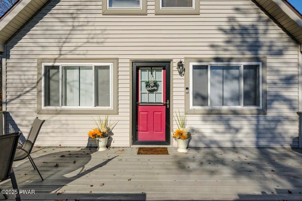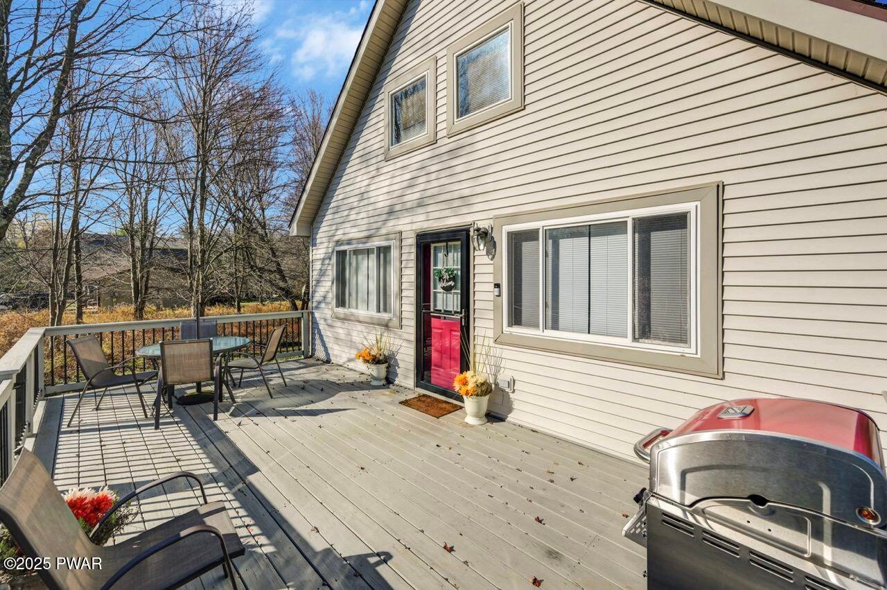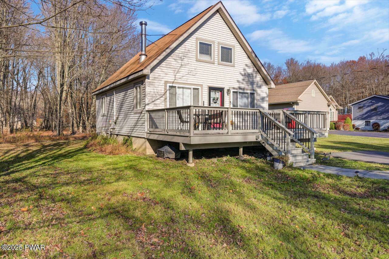 Escape to this charming chalet located in the Hideout a desirable gated four-seasons, amenity-rich community in the Northen Poconos-Just a few hours from NYC and Philly. This cozy retreat features vaulted ceilings and an open concept layout with a loft currently used as a third bedroom. The beautifully updated kitchen showcases granite countertops and stainless-steel appliances, while the refreshed bathroom adds a modern touch. A brand-new washer and dryer are also included for your convenience. Furnishings come with the home, making this property truly move in ready! Enjoy the outdoors on the deck or take advantage of the oversized flat lot with plenty of space for outdoor activities. A handy shed provides storage for all your gardening needs. The newer paved driveway and stone walkway add both curb appeal and functionality. Stay comfortable year-round with efficient mini-split heating and cooling. Whether you're looking for a low maintenance full time residence or relaxing weekend getaway, this scenic hideaway has everything for you to start enjoying Pocono living right away. The Hideout offers year-round fun and convenience with access to lakes and beaches, a golf course, fitness center, clubhouse with restaurant and bar, ski hill, pools, and 24-hour gated security.